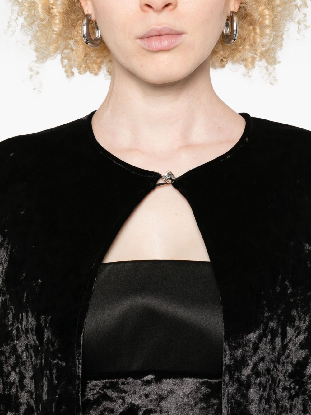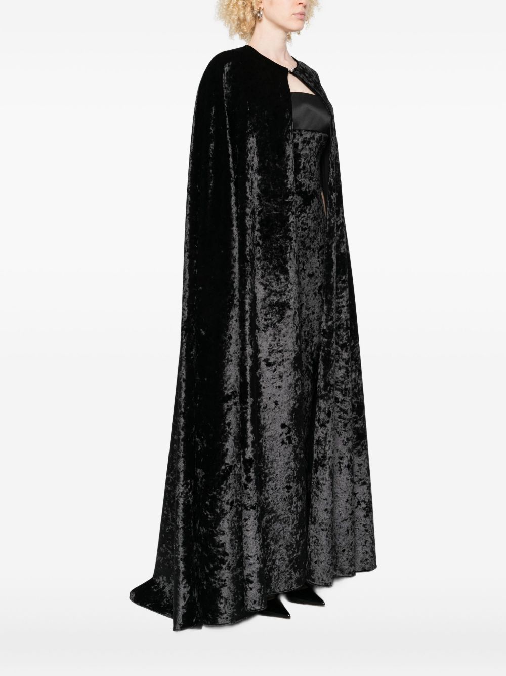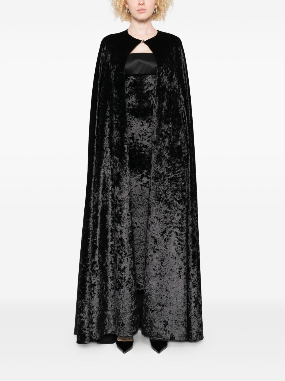 long cloak, velvet, jewel button closure