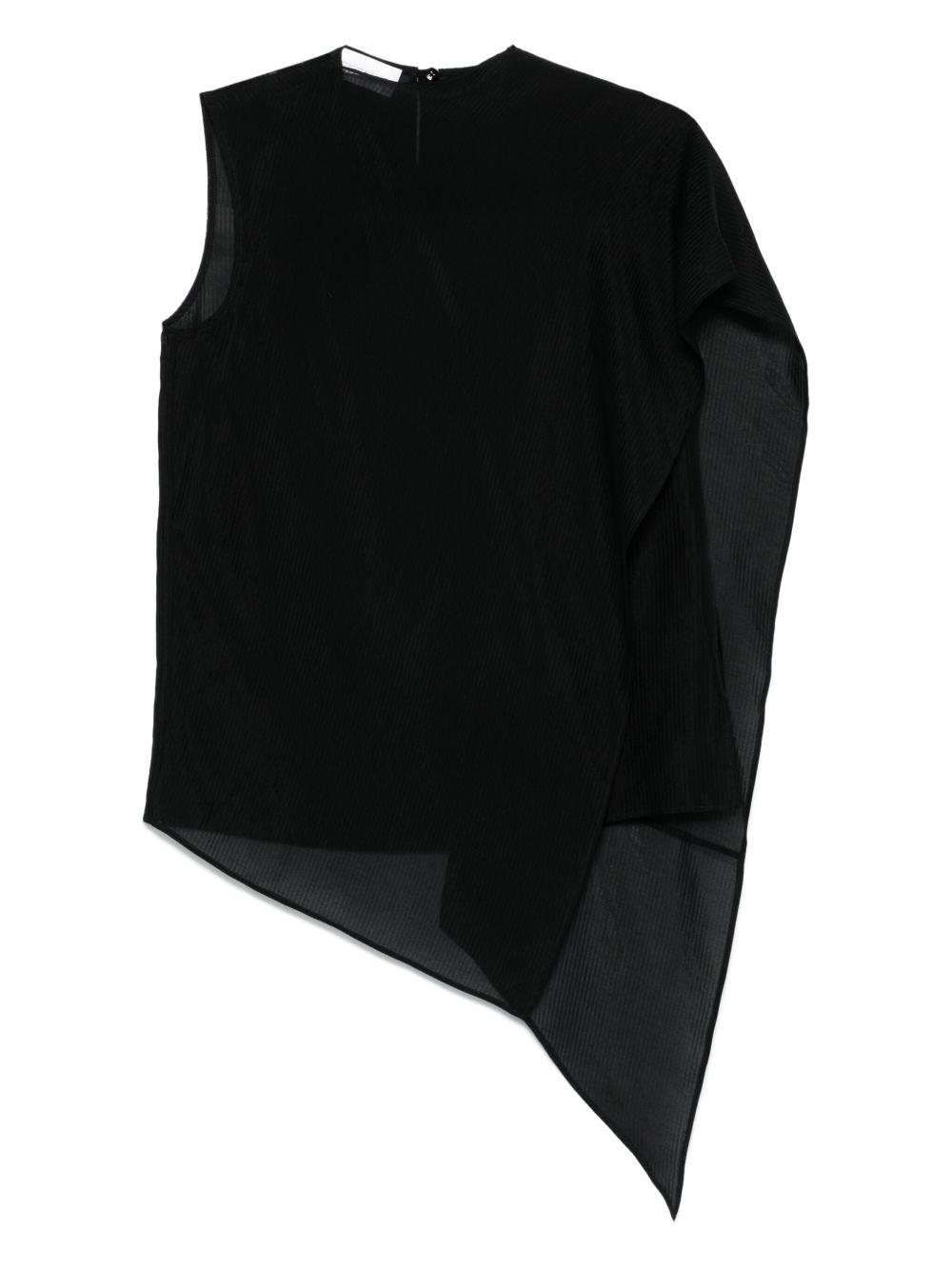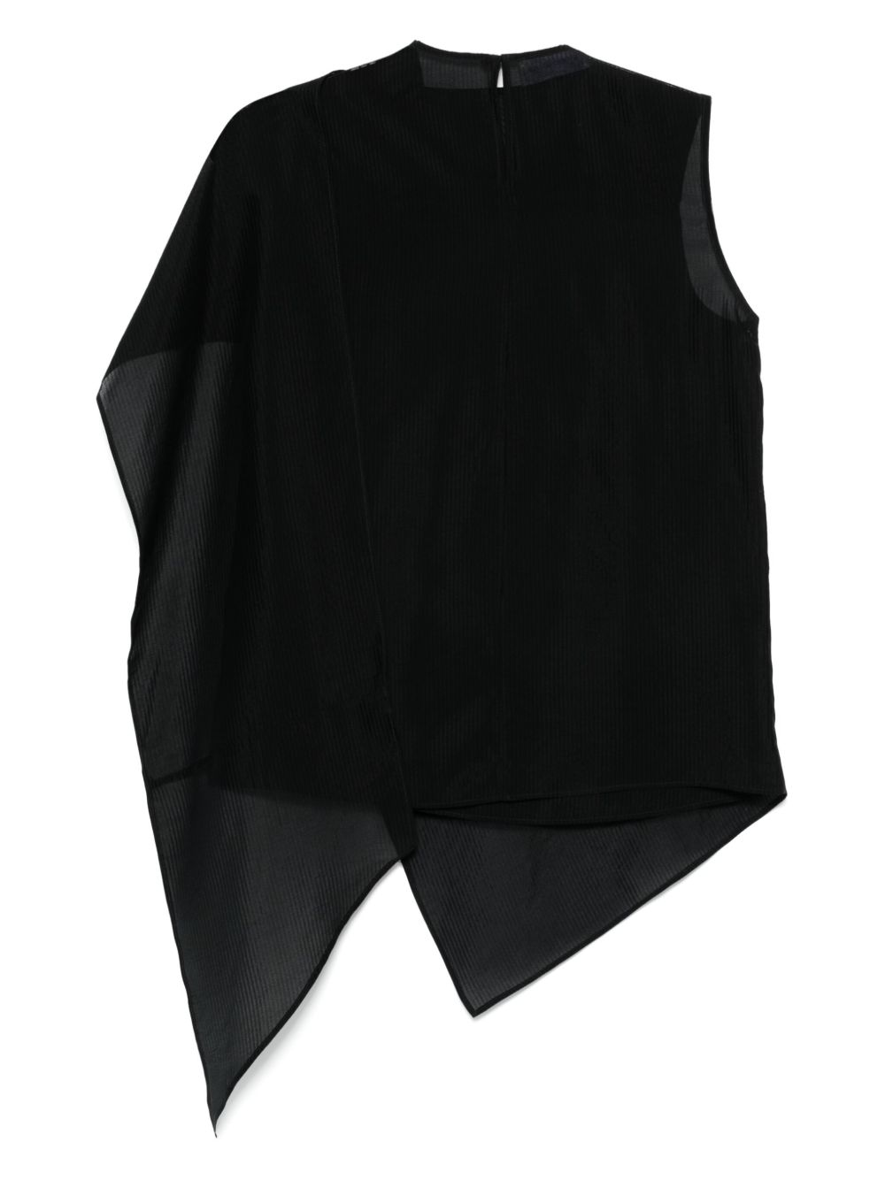 top, sleeveless, crew neck, back button closure, side slits, non-detachable stole, semi-transparent pinstripe fabricComposition: 86% acetate, 14% silkWashing instructions: dry clean