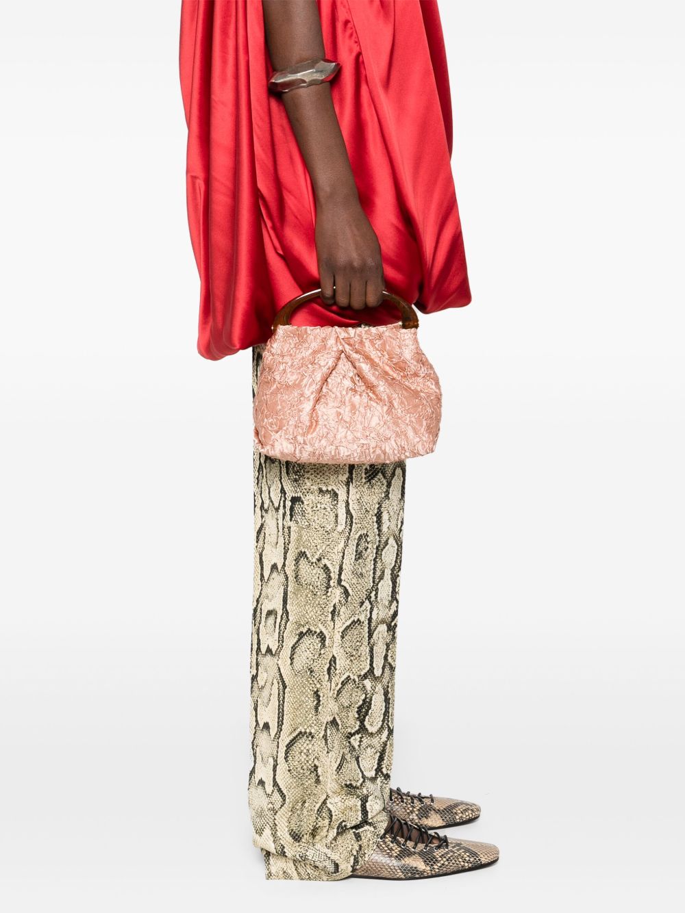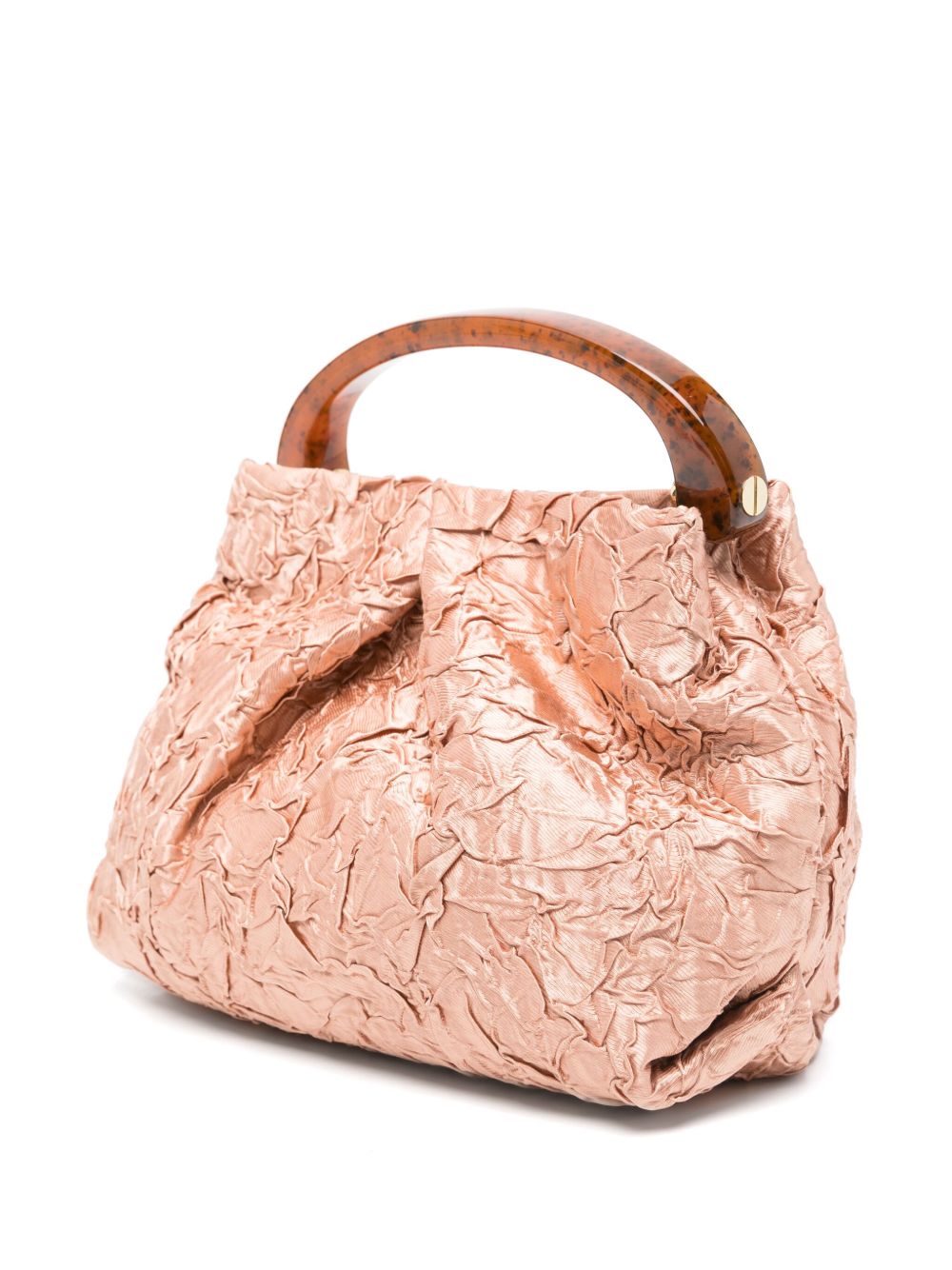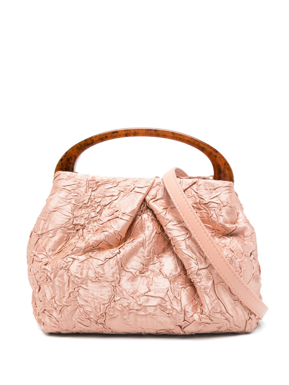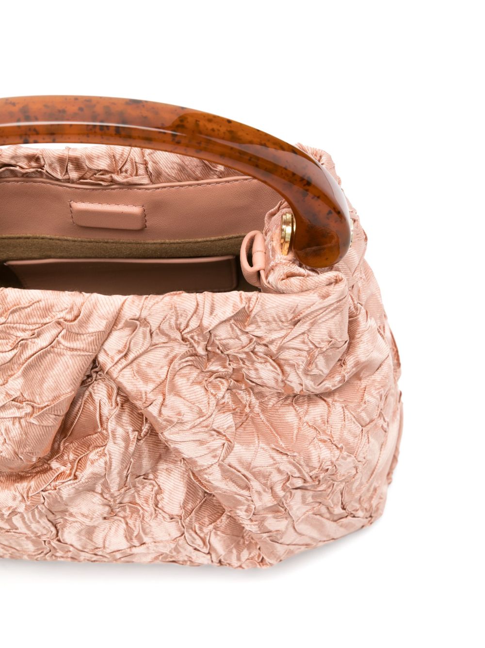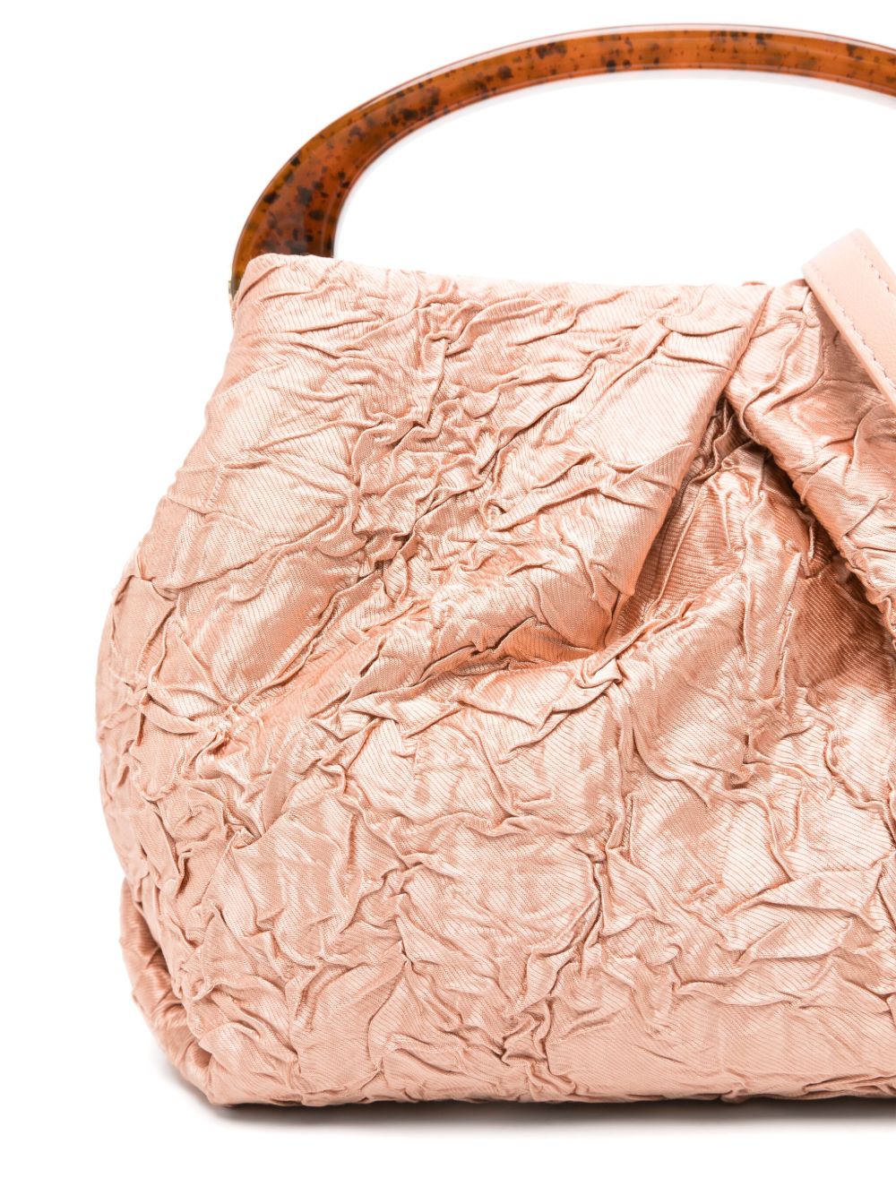 bag, detachable shoulder strap, crumpled effect fabric, magnetic closure, internal pocket, lined, contrasting rigid handle
