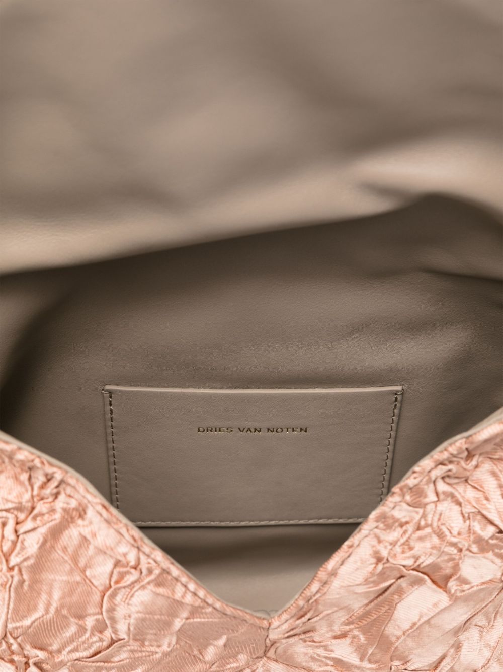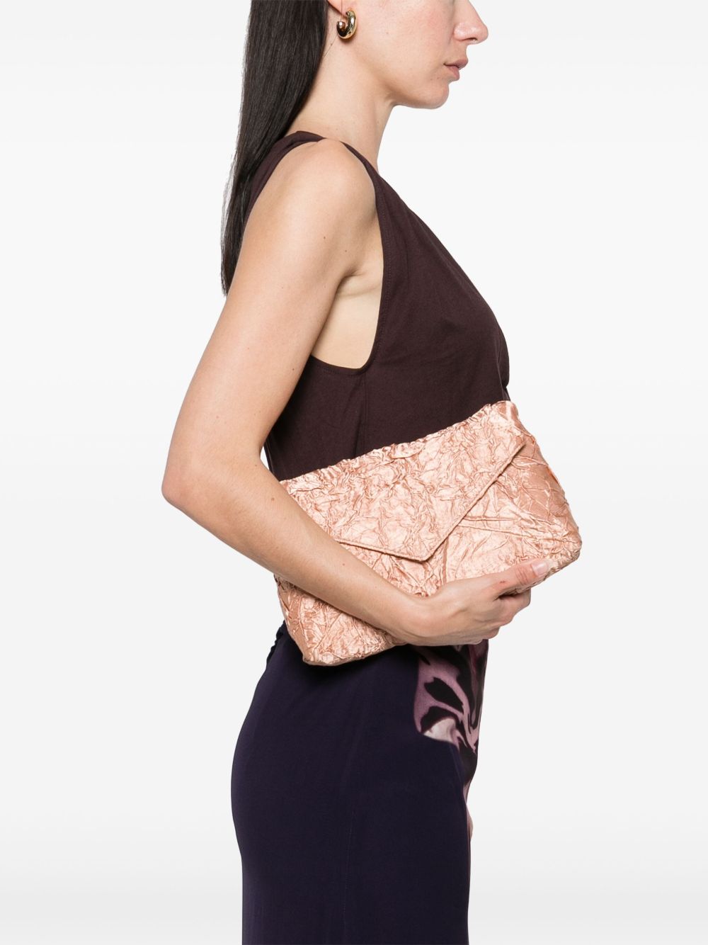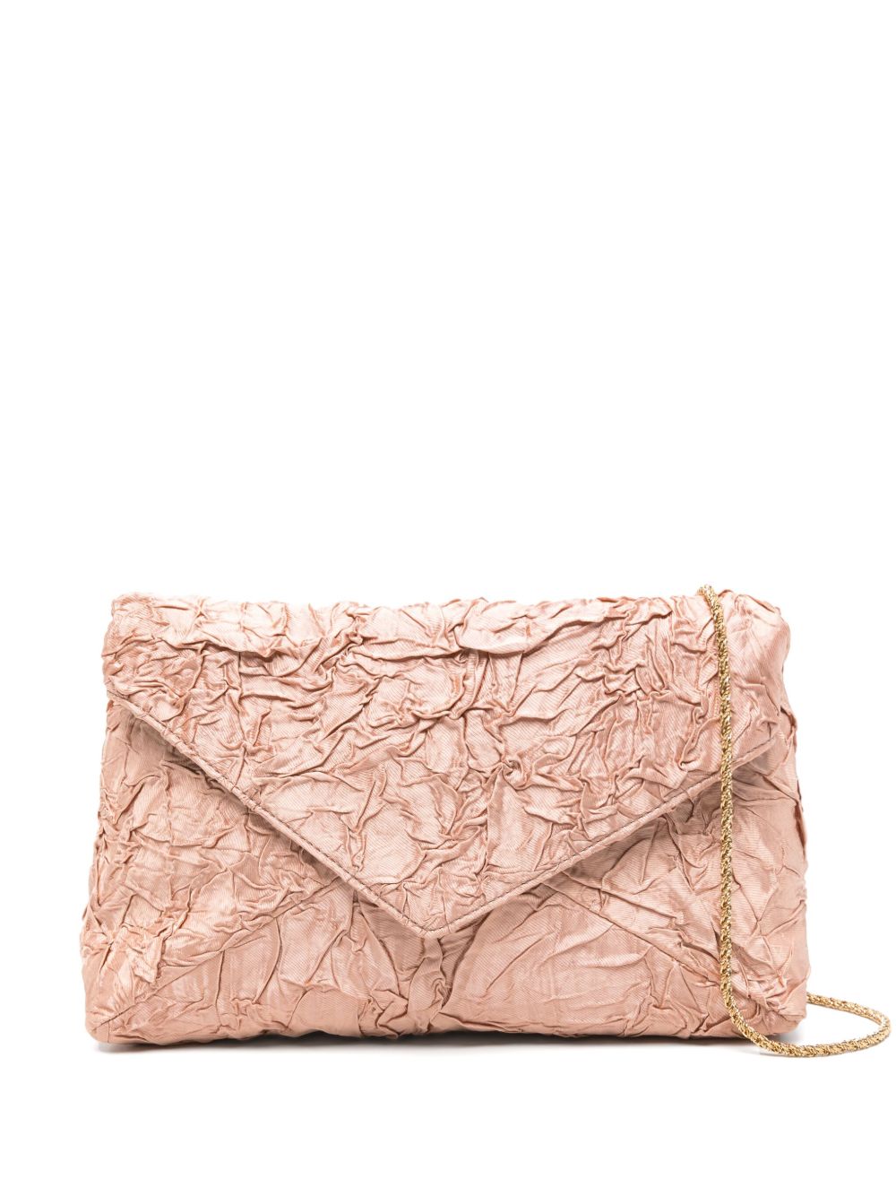 envelope bag, detachable metal shoulder strap, wrinkled fabric, inside pocketComposition: textile fibers, leather
