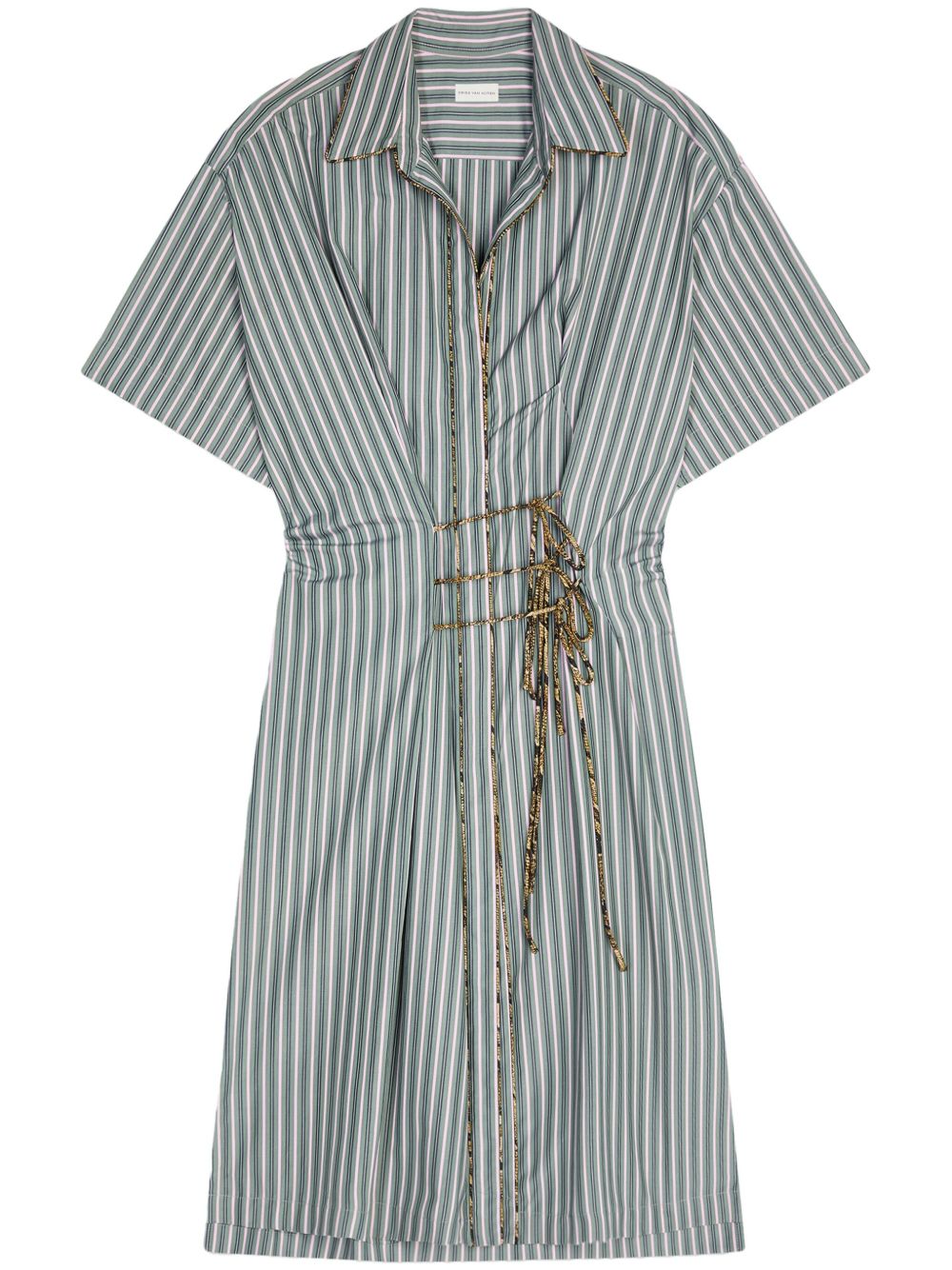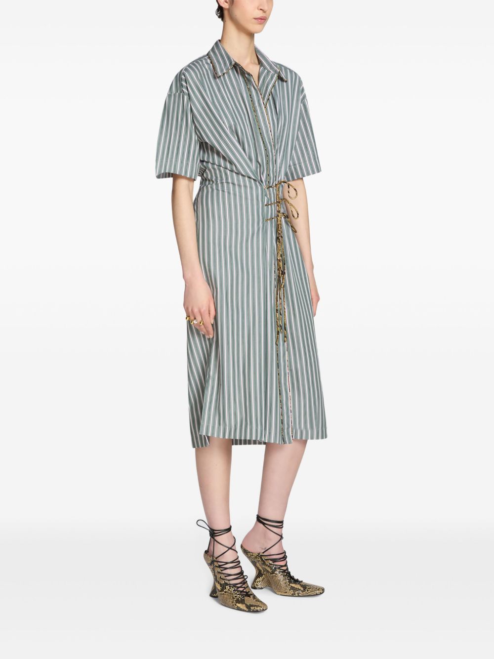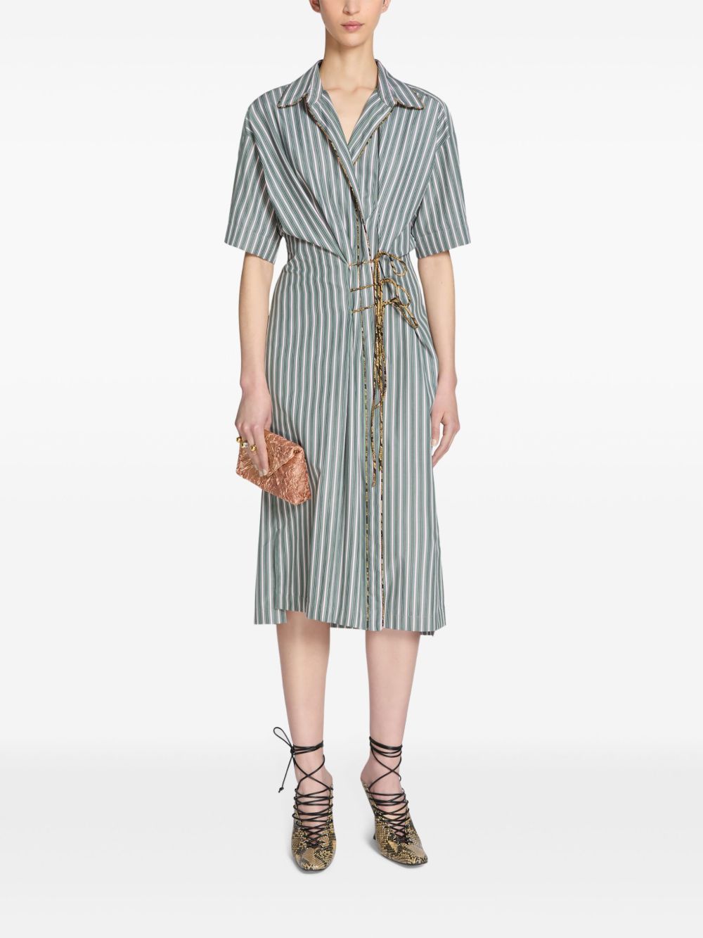 shirt dress, collar, striped poplin, short sleeves, wrap closure with laces, piping in animalier fabric Composition: 100% cottonWashing Instructions: Machine wash