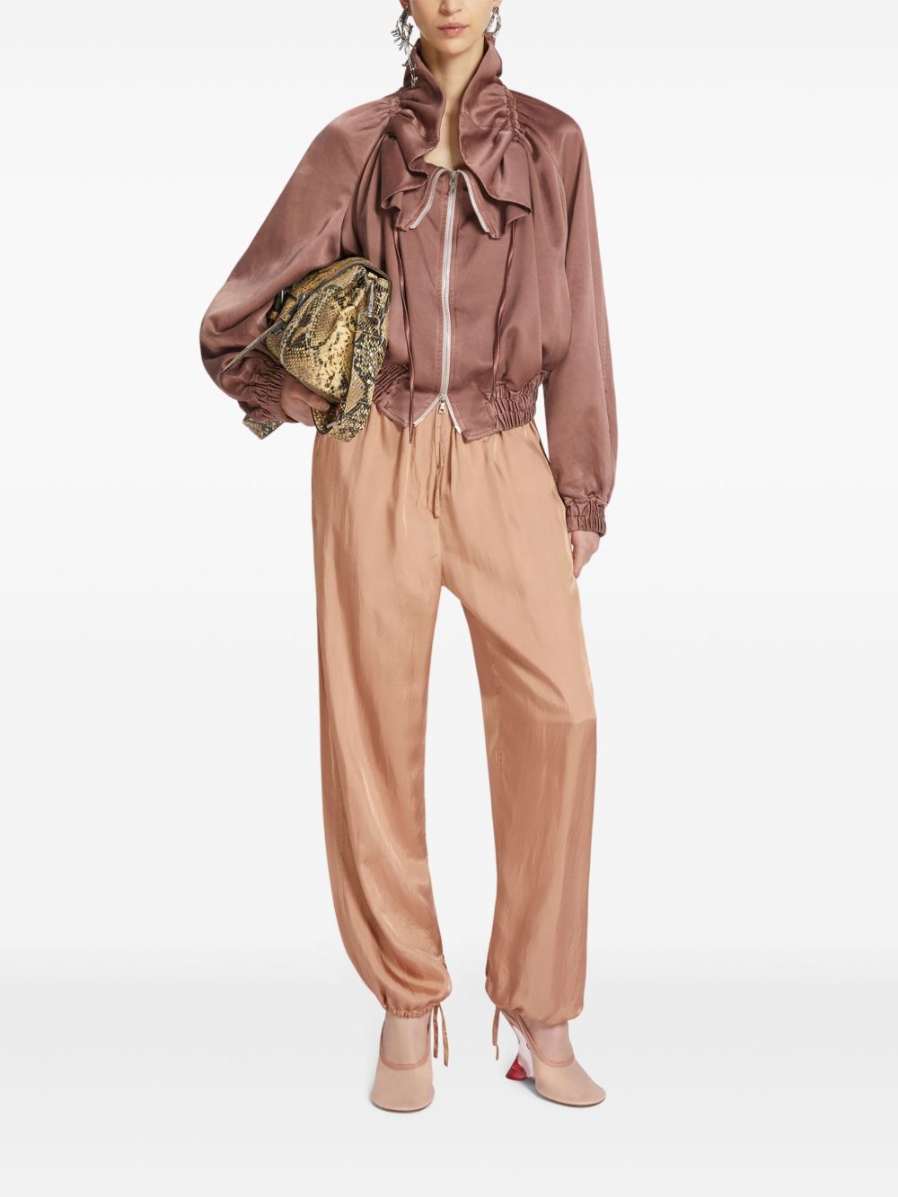 jacket, zip closure, gathered collar with two drawstrings, raglan shoulder, long sleeve, elasticated edges, side pockets, linedComposition: 60% cupro, 40% cottonWashing instructions: dry clean