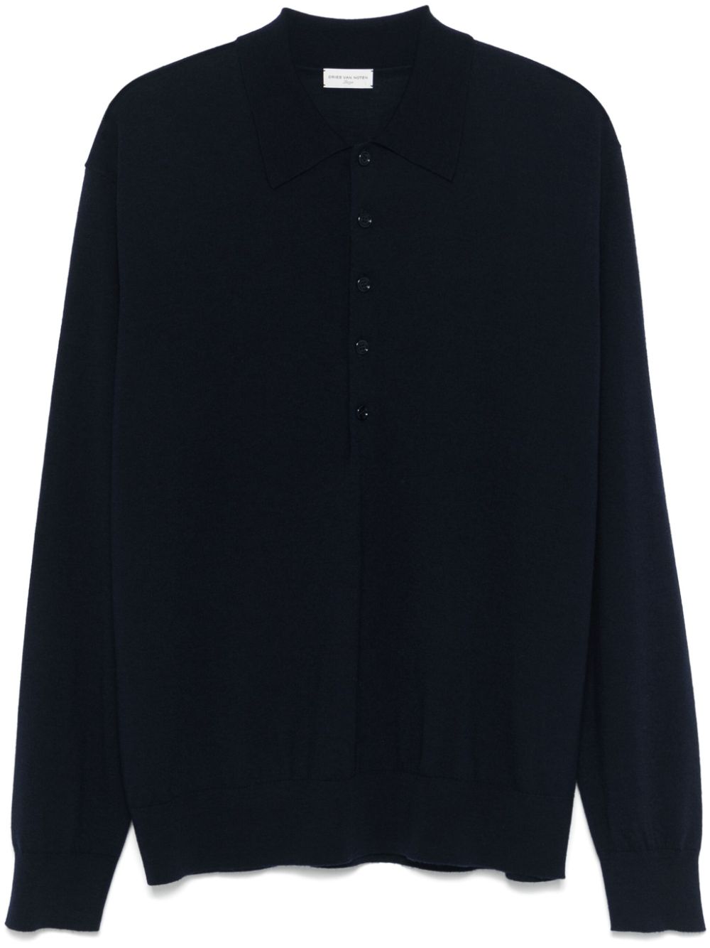 polo shirt, collar, button closure, long sleeveComposition: 100% merino woolWashing instructions: hand wash