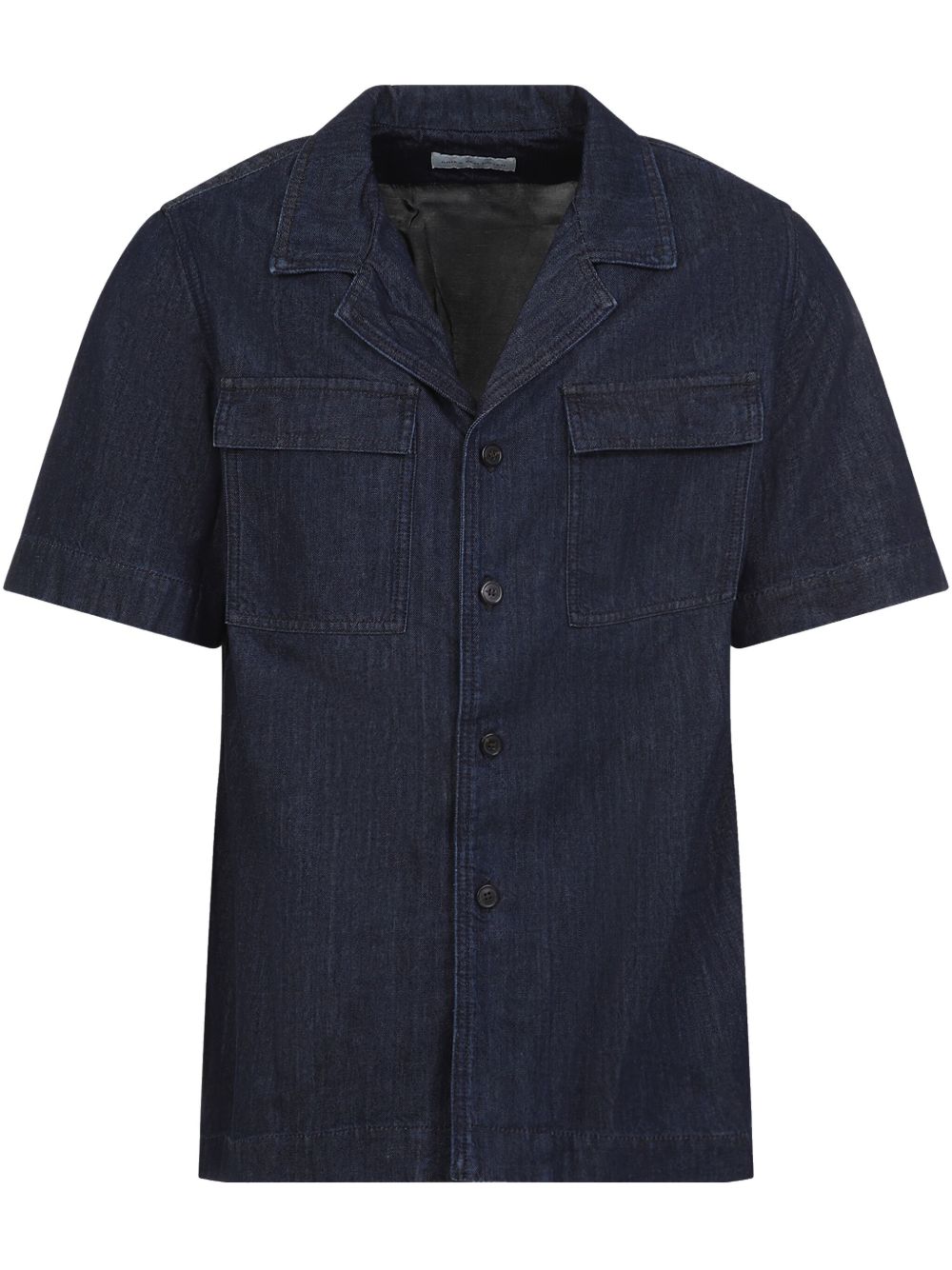 shirt, denim, short sleeves, open collar, v-neck, button closure, side slits, regular fit, large front pockets with flaps, back side in viscoseComposition: 80% cotton 20% viscose Washing Instructions: Machine wash