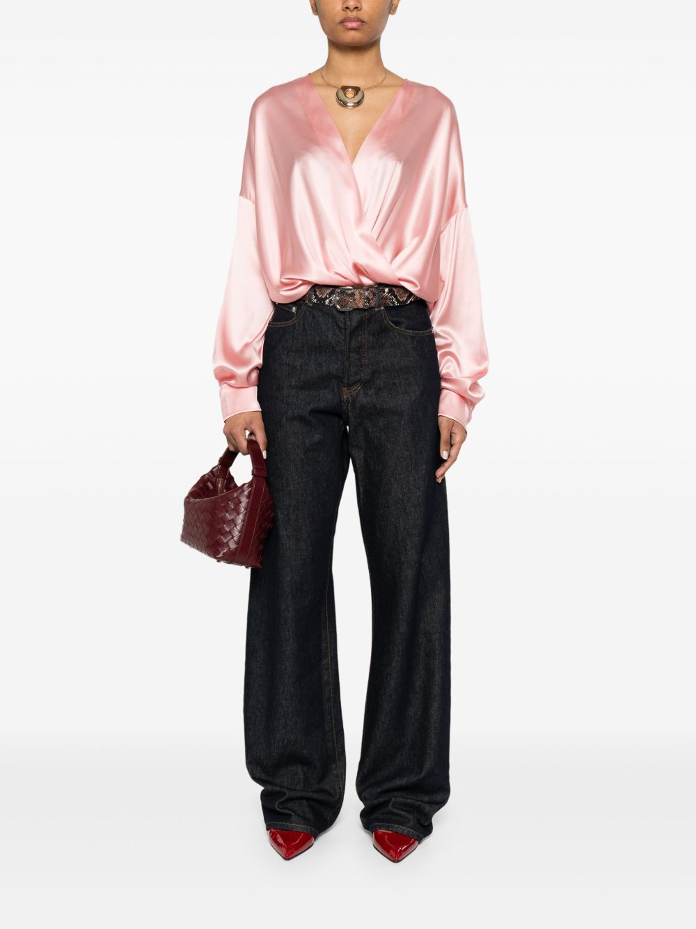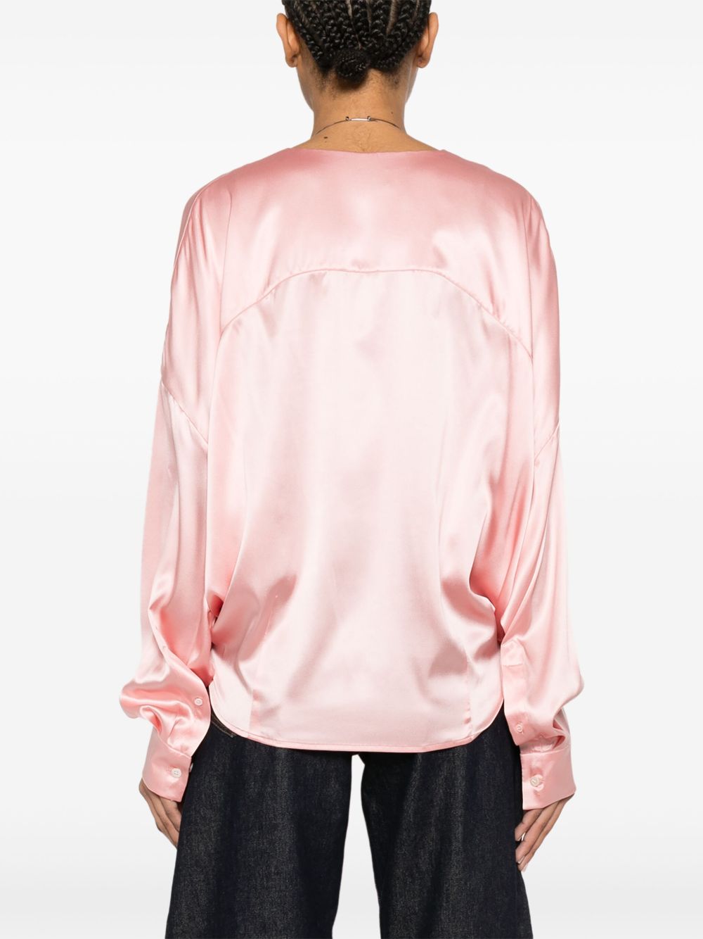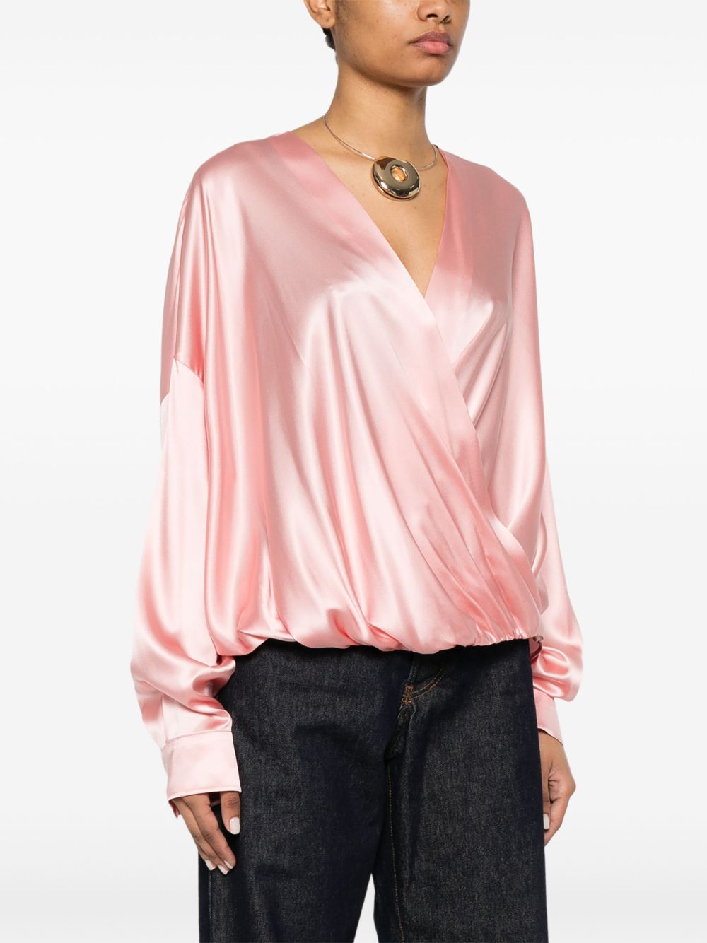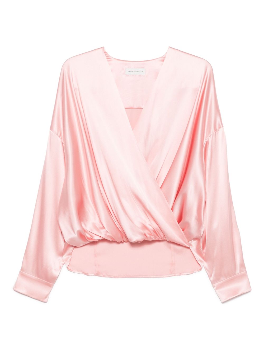 shirt, v-neck, crossover design, drape, long sleeve, buttoned cuffs, loose fit, side slits