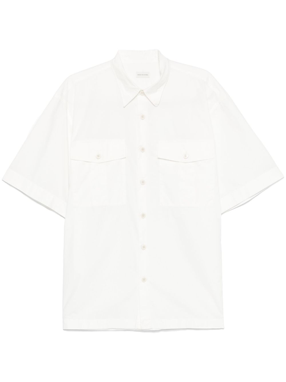 shirt, short sleeves, pointed collar, button closure, side vents, loose fit, large front pockets with buttonsComposition: 100% cotton Washing Instructions: Machine wash