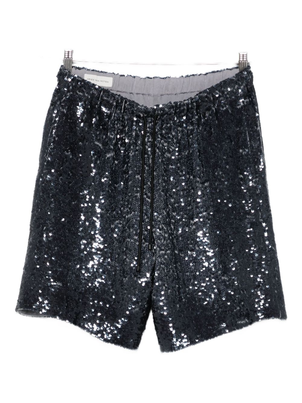 shorts, elasticated waist with drawstring, side pockets, back patch pocket, wide leg, lined, sequinsComposition: 100% viscoseCare instructions: dry clean
