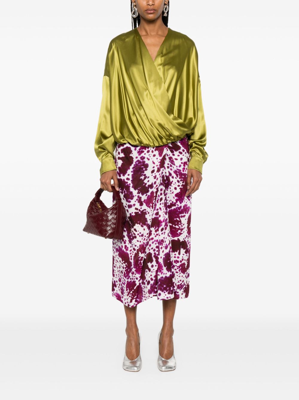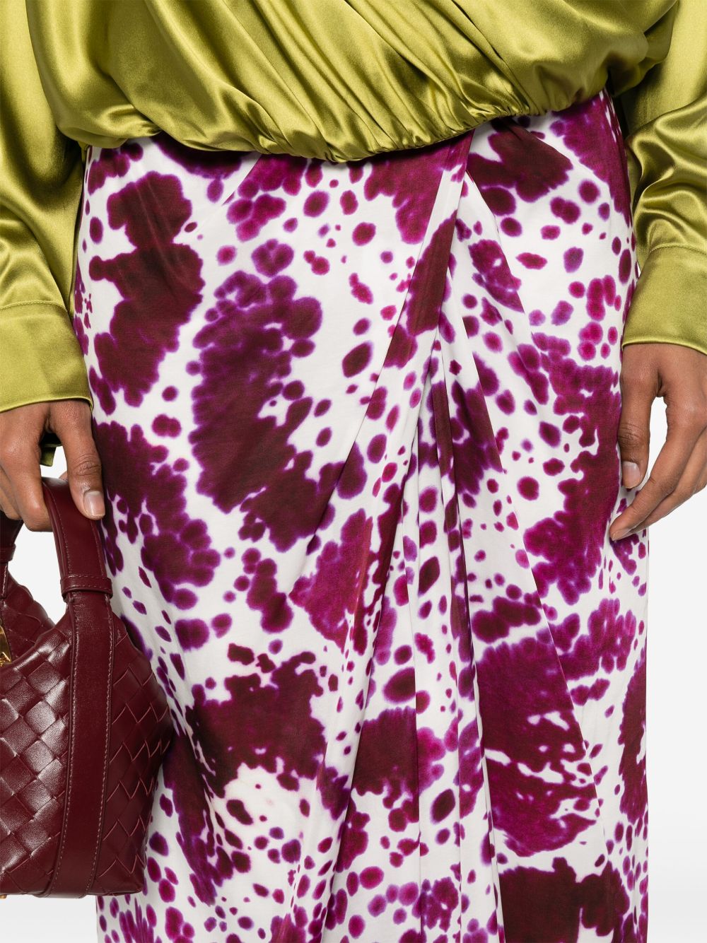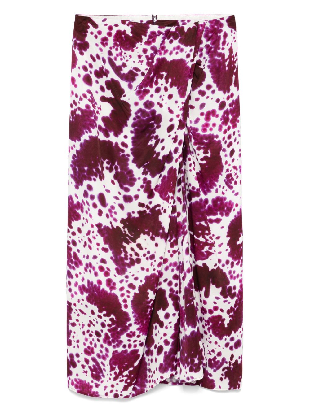midi skirt, all-over pattern, front drape, back zip fastening, linedComposition: 100% viscose, lining 100% silkWashing instructions: dry clean