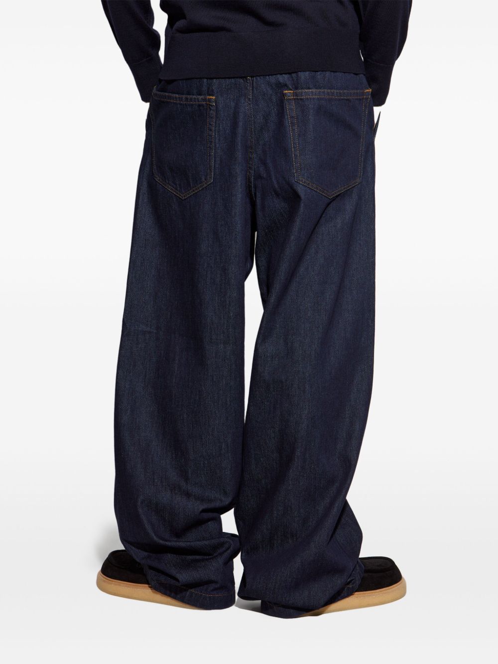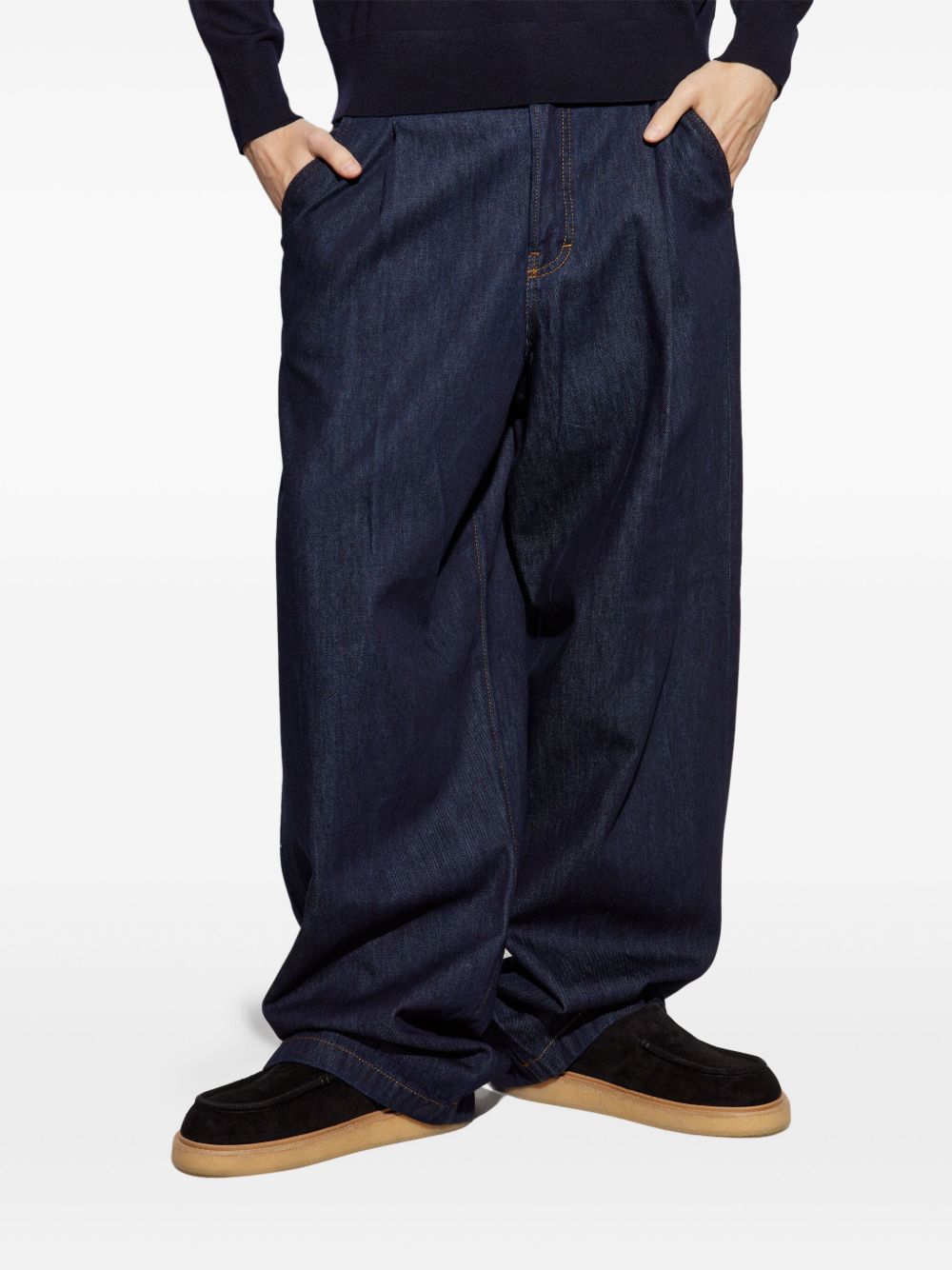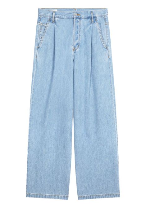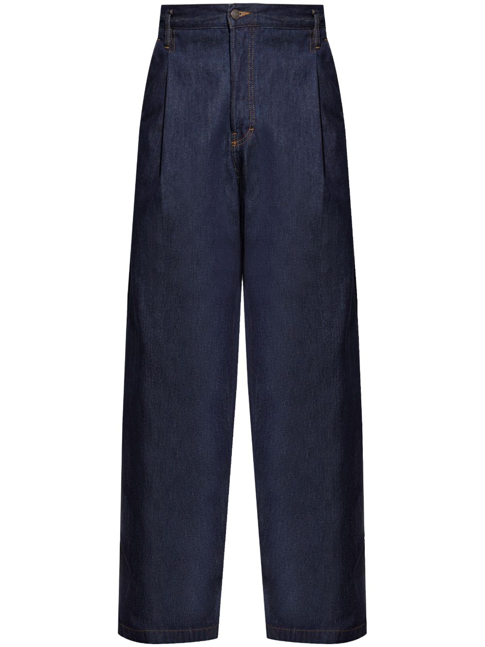 trousers, denim, belt loops, leather logo plate, pleats, side pockets, back patch pockets, wide leg, button closureComposition: 100% cotton Washing Instructions: Machine wash