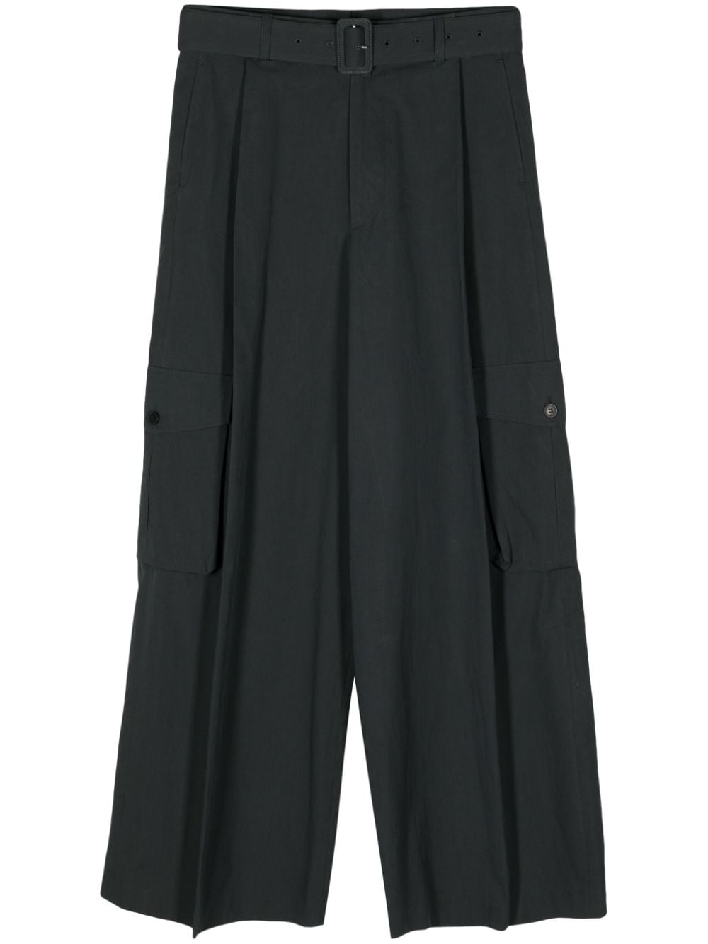trousers, removable belt, belt loops, pleats, side pockets, back pockets, zip and hook closure, very wide leg, color anthracite Composition: 100% cotton Washing instructions: dry clean