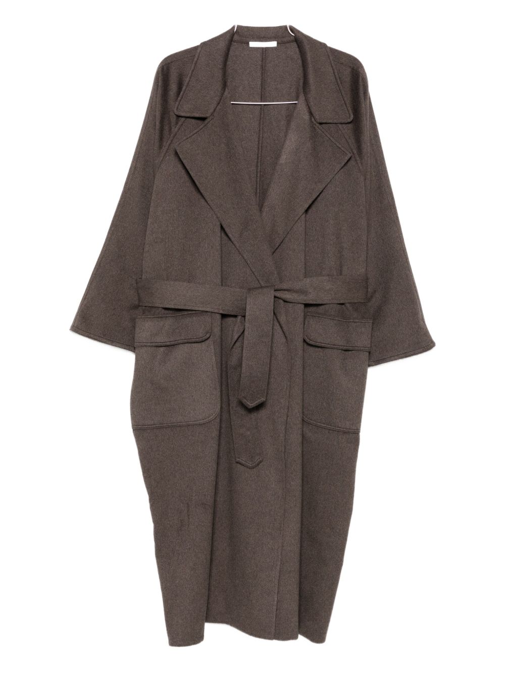 Oversized trench coat, wide lapels, removable belt, belt loops, ragla sleeves, long sleeves, side patch pockets with flaps, back vent, double-knit fabric