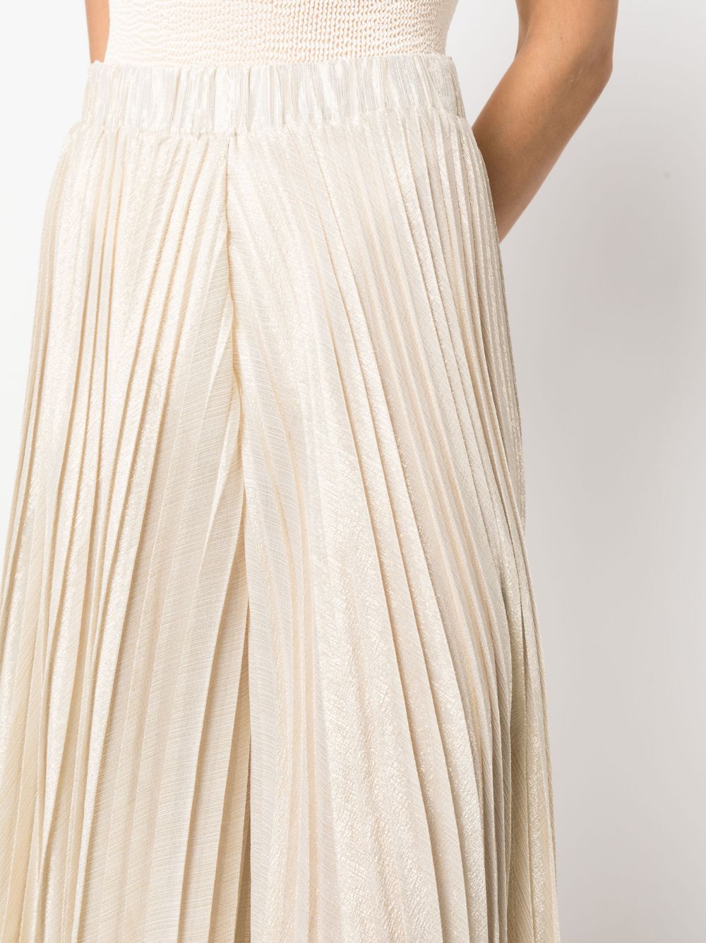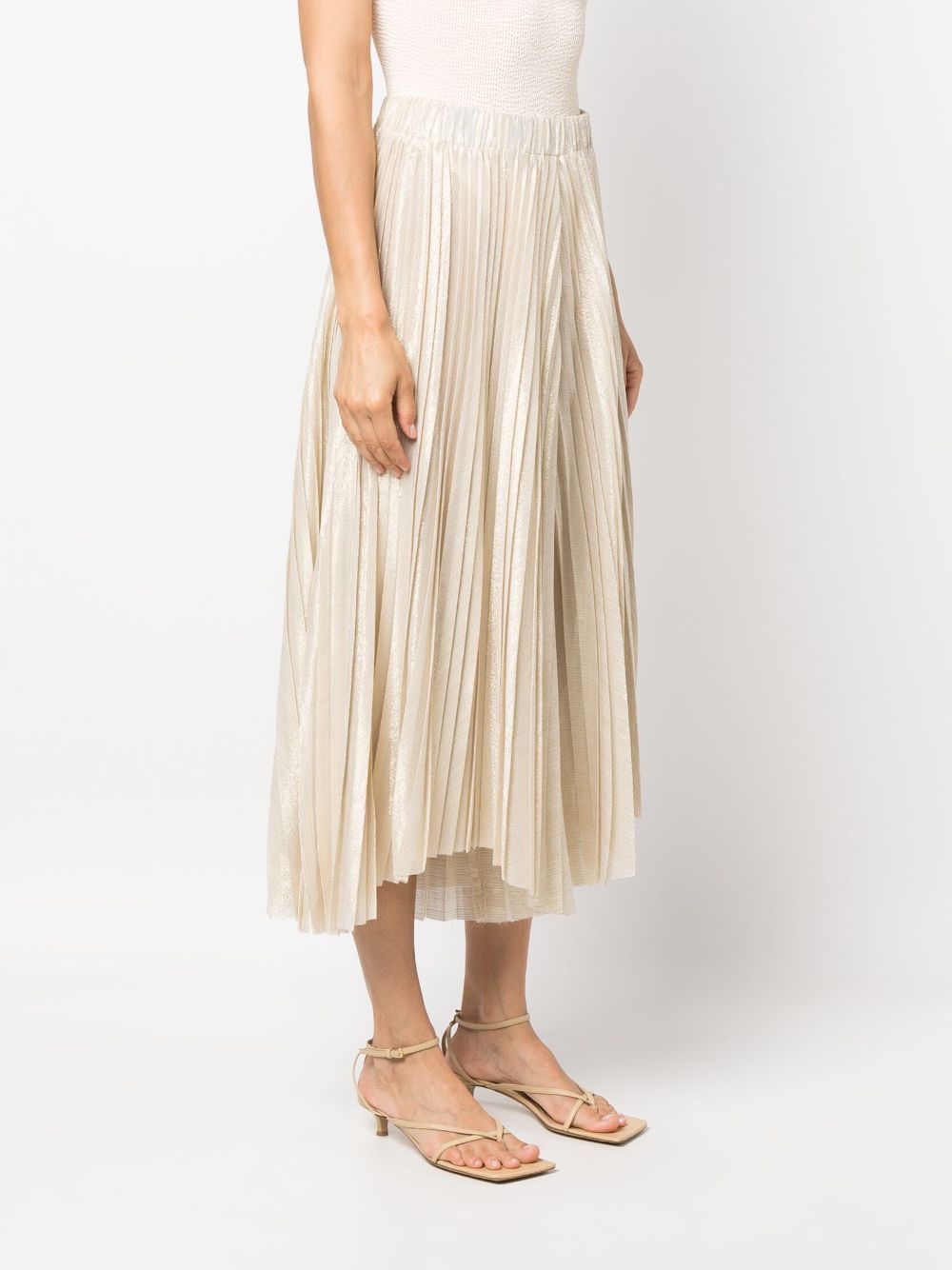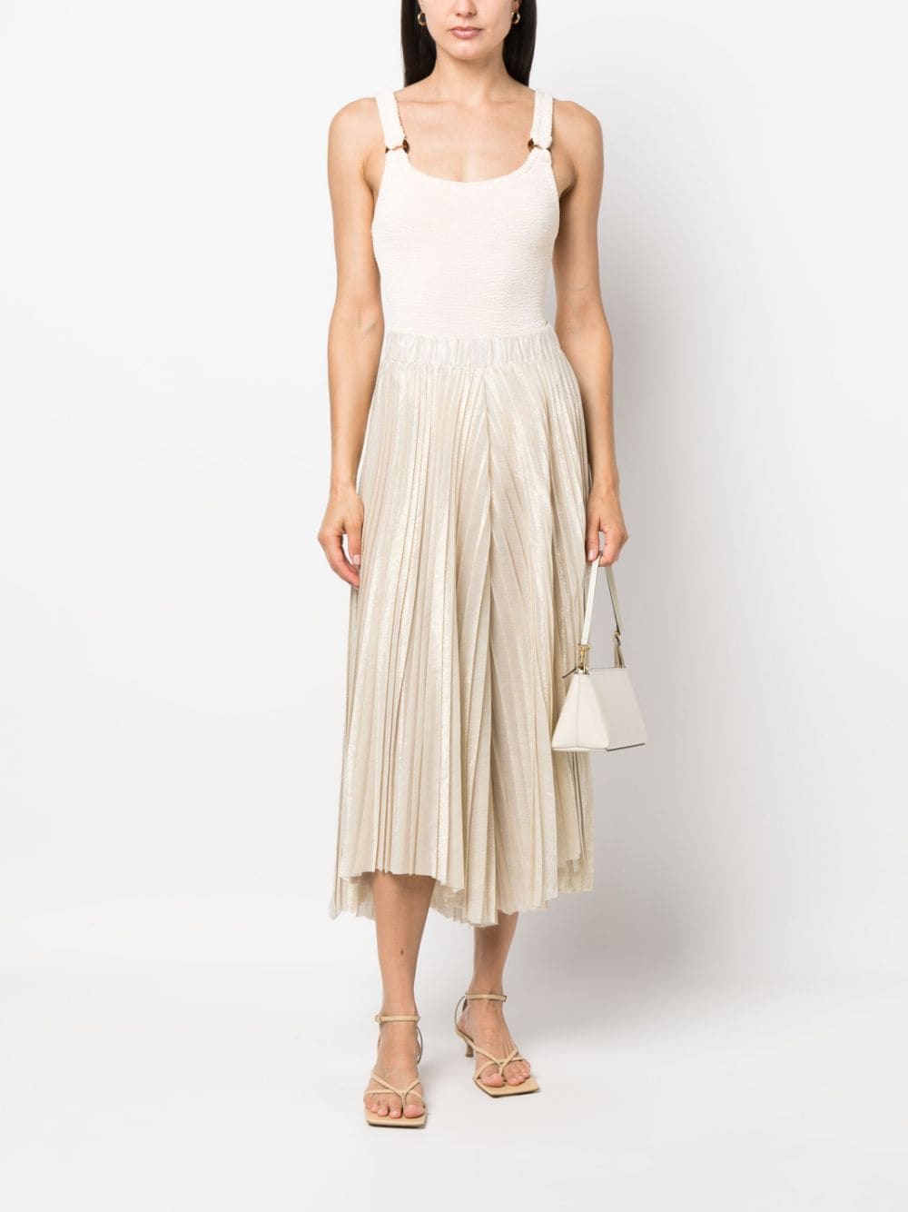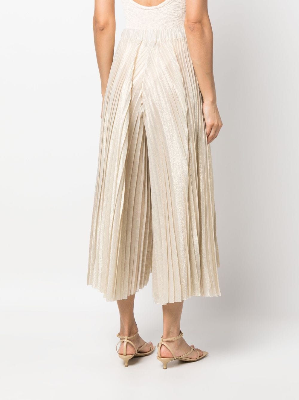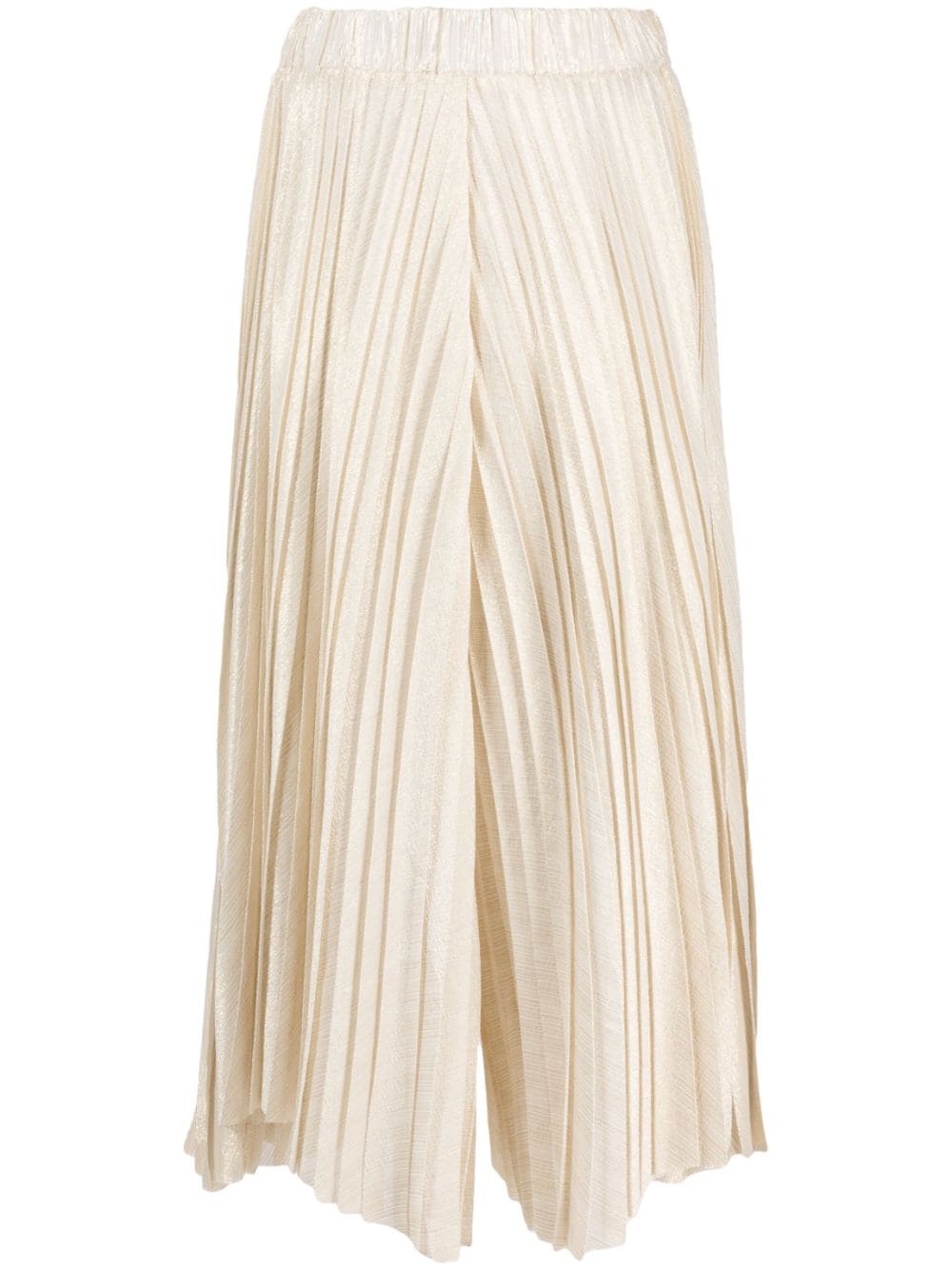 trousers, elastic waistband, laminated pleated fabricComposition: 80% silk 20% metalWashing instructions: dry clean