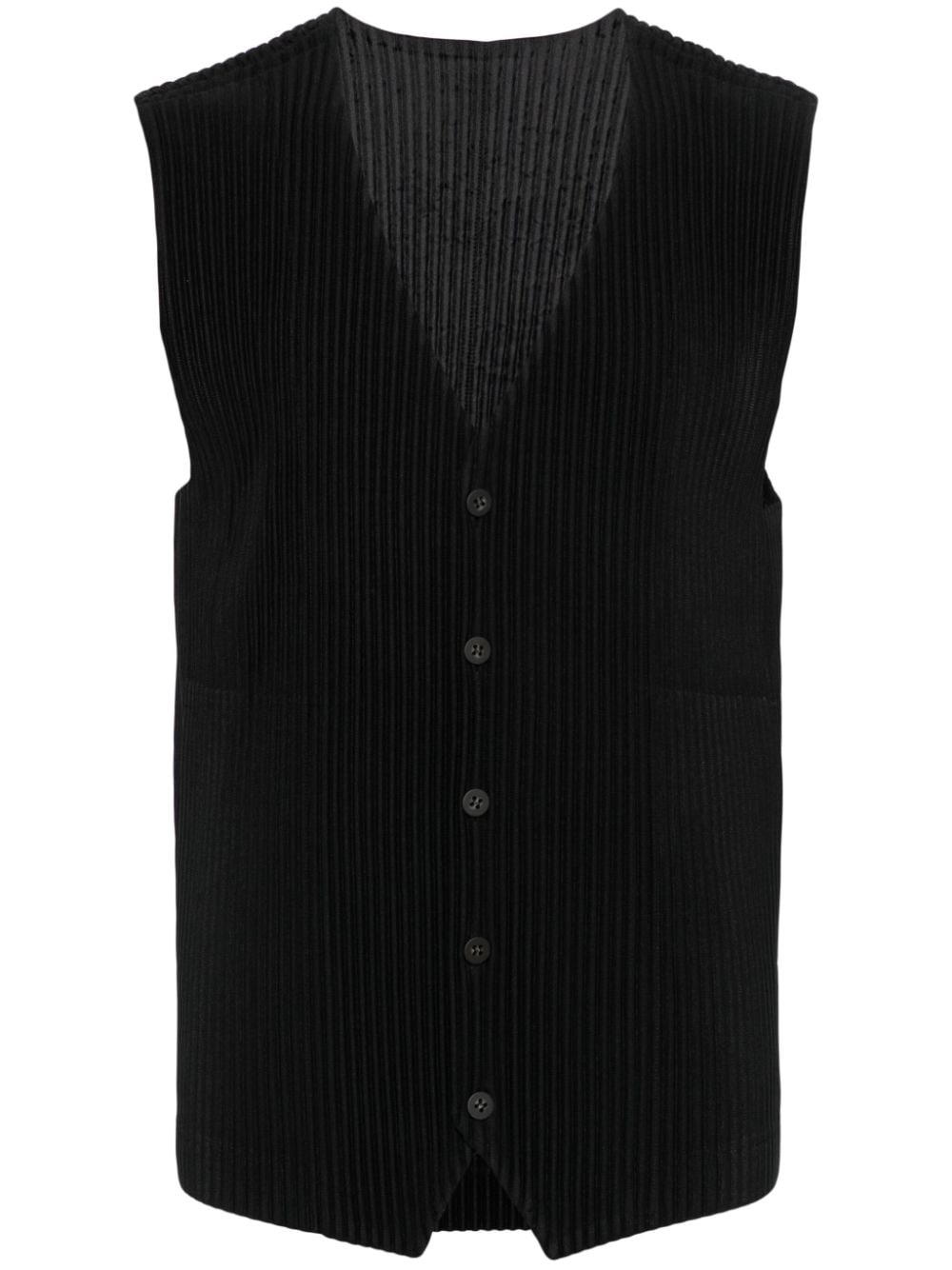 vest, v-neck, sleeveless, pleated fabric, button closureComposition: 100% polyesterWashing instructions: machine wash