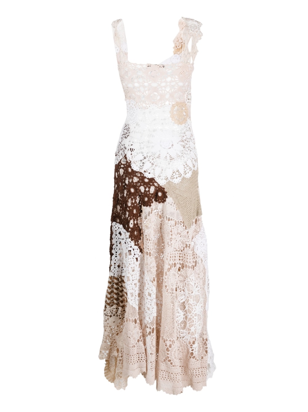 long dress, handmade crochet, braces, square neckline, unlined, asymmetrical hem, each size can have different shades and workmanshipComposition: 70% cotton 25% linen 5% polyamideWashing instructions: hand wash