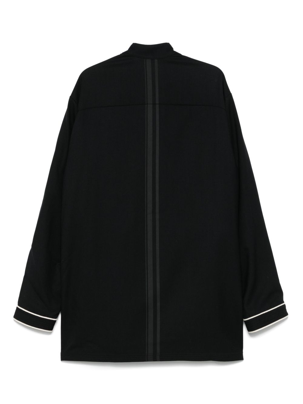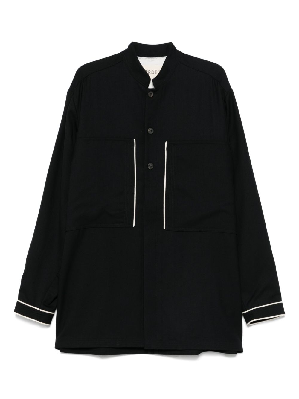 shirt jacket, oriental collar, long sleeve, button closure, lined, vertical front pockets, contrasting piping, tone-on-tone back stripe, side slitsComposition: 100% woolWashing instructions: dry clean