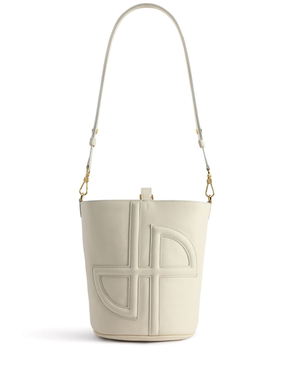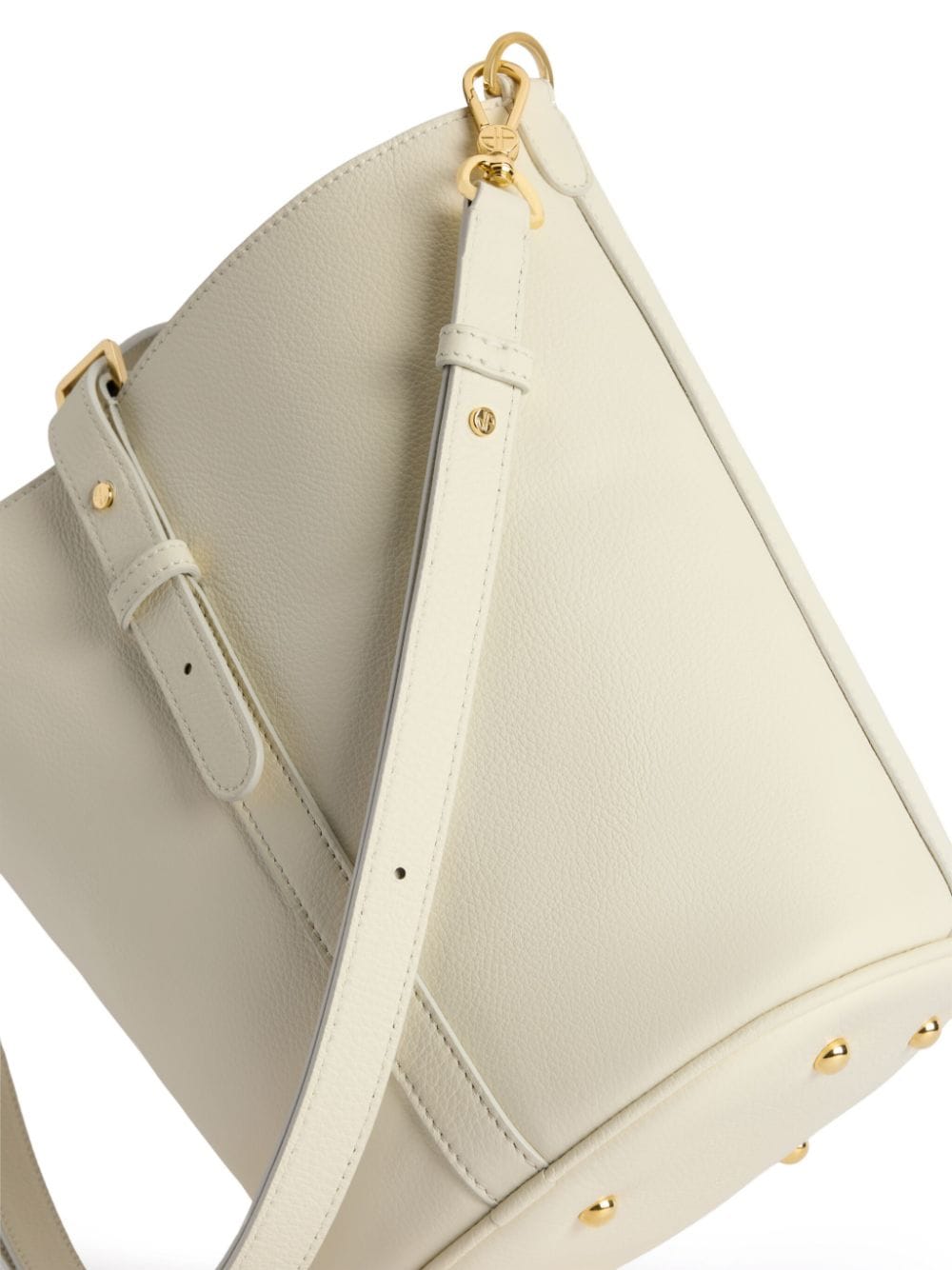 borsa a secchiello. logo frontale trapuntato, tracolla removibile, manico regolabile, borchie su fondocomposizione: 100% pelle