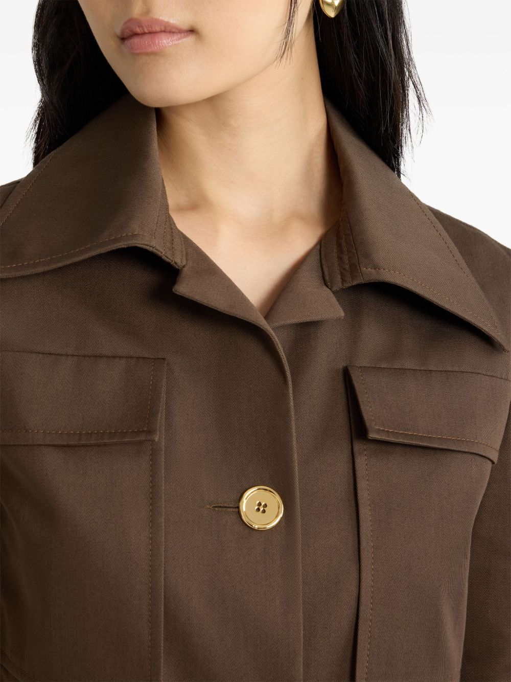 crop jacket, open v-neck, gold button closure, front pockets with flaps, short sleeves with grosgrain trim, unlinedComposition: 100% cottonWashing instructions: dry clean