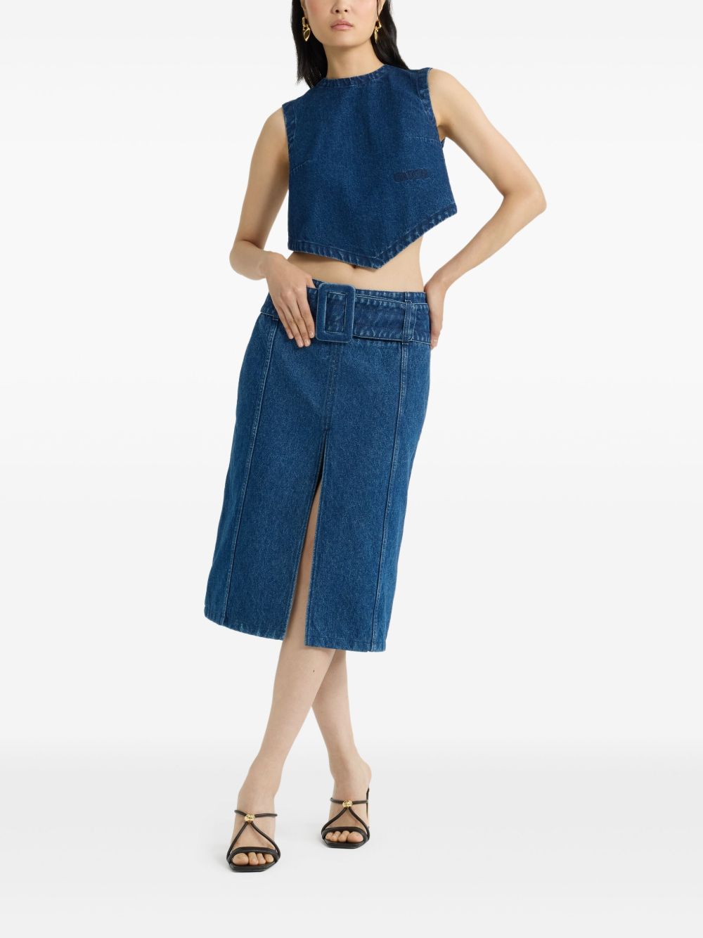 pencil skirt, removable belt, belt loops, denim, back zip closure, front slitComposition: 100% cottonWashing instructions: machine wash