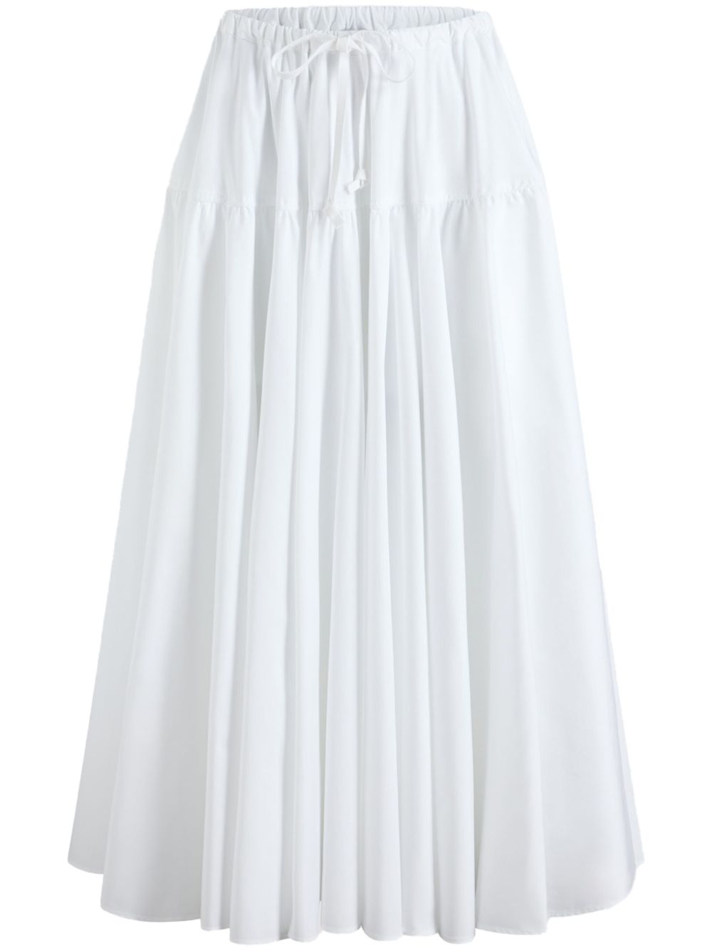 midi skirt, elasticated waist, internal drawstring, side pockets, flared designComposition: 100% cottonWashing instructions: machine wash