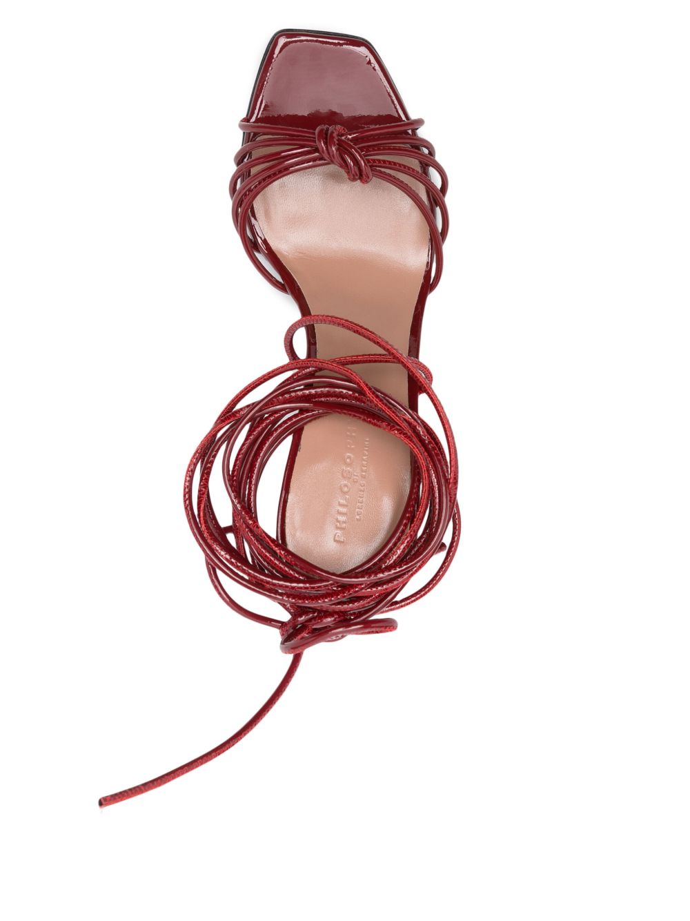 sandal, patent leather, drawstring design, central knot, 10 cm heel