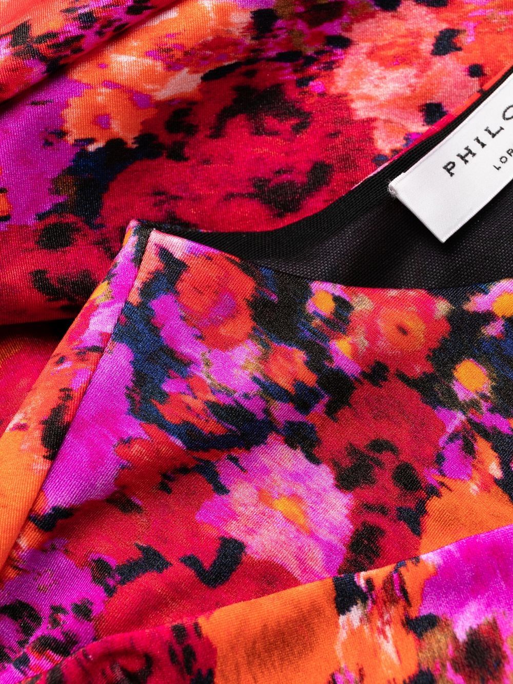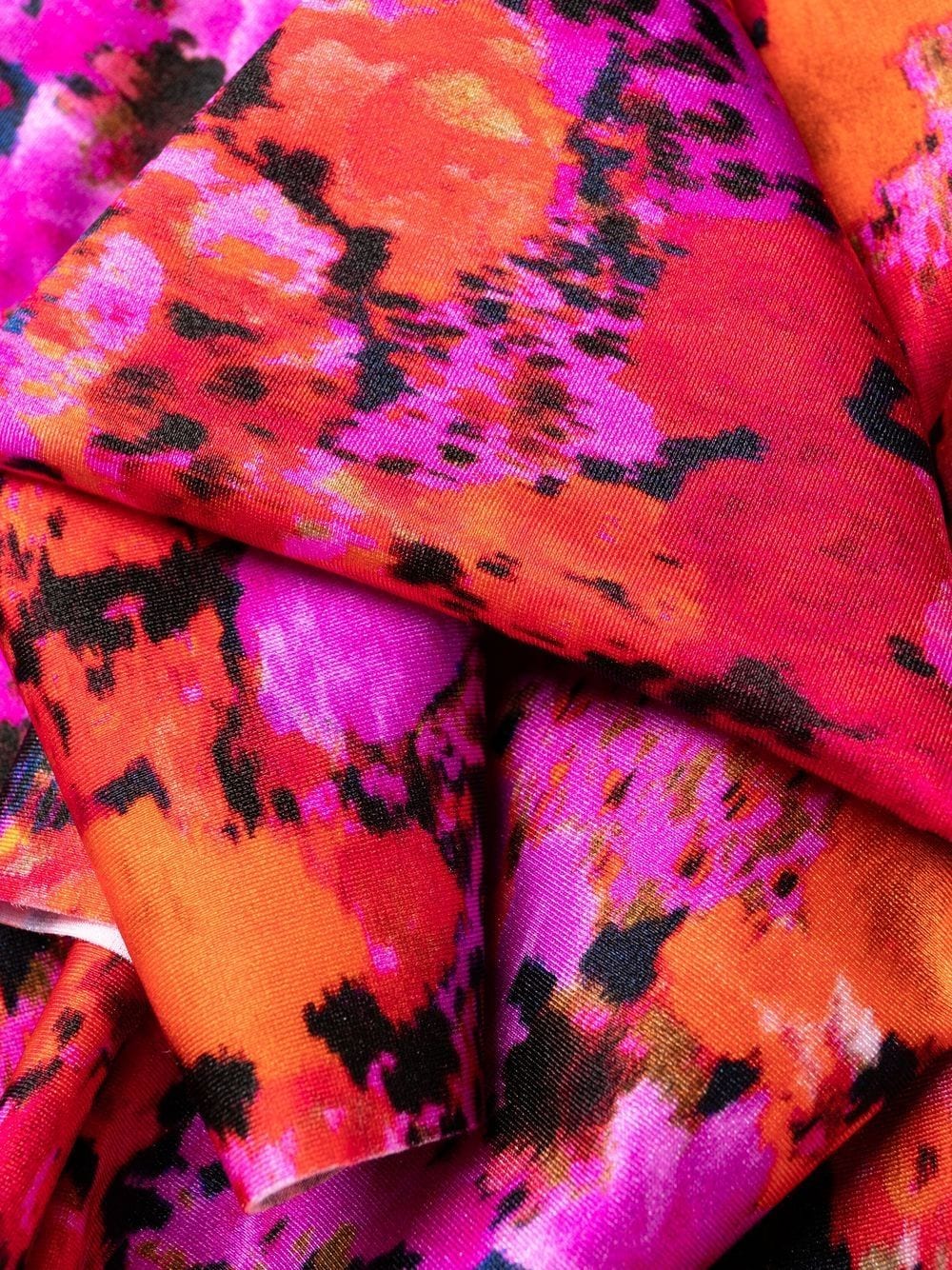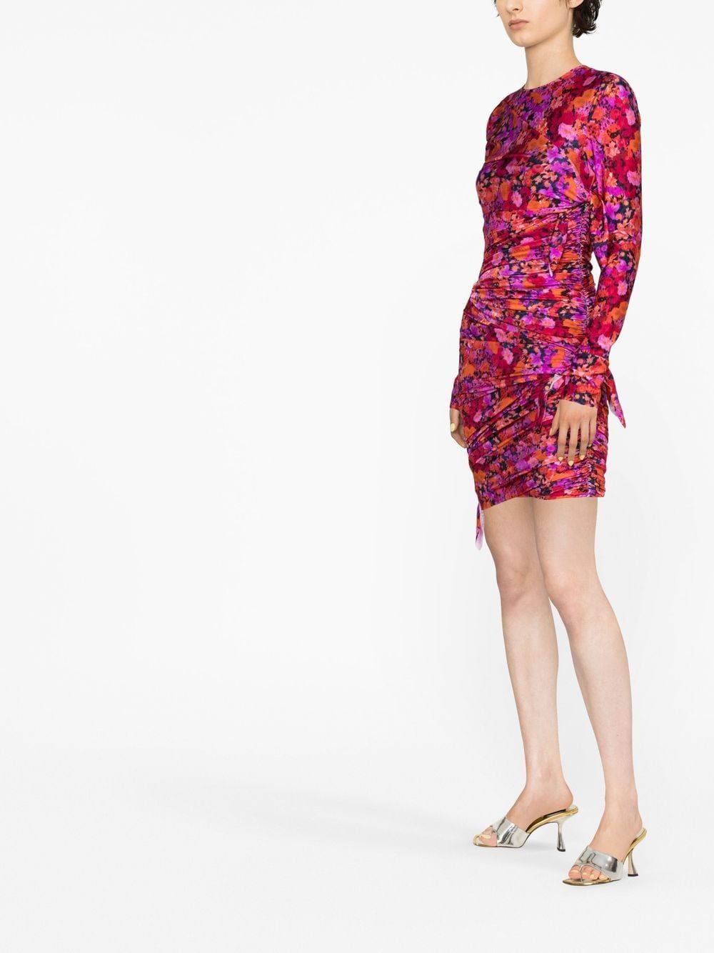 short dress, jersey, floral print, round neck, long sleeves, side knots, draped, side zip, lined Composition: 85% polyamide 15% elastane Washing instructions: hand wash or dry clean