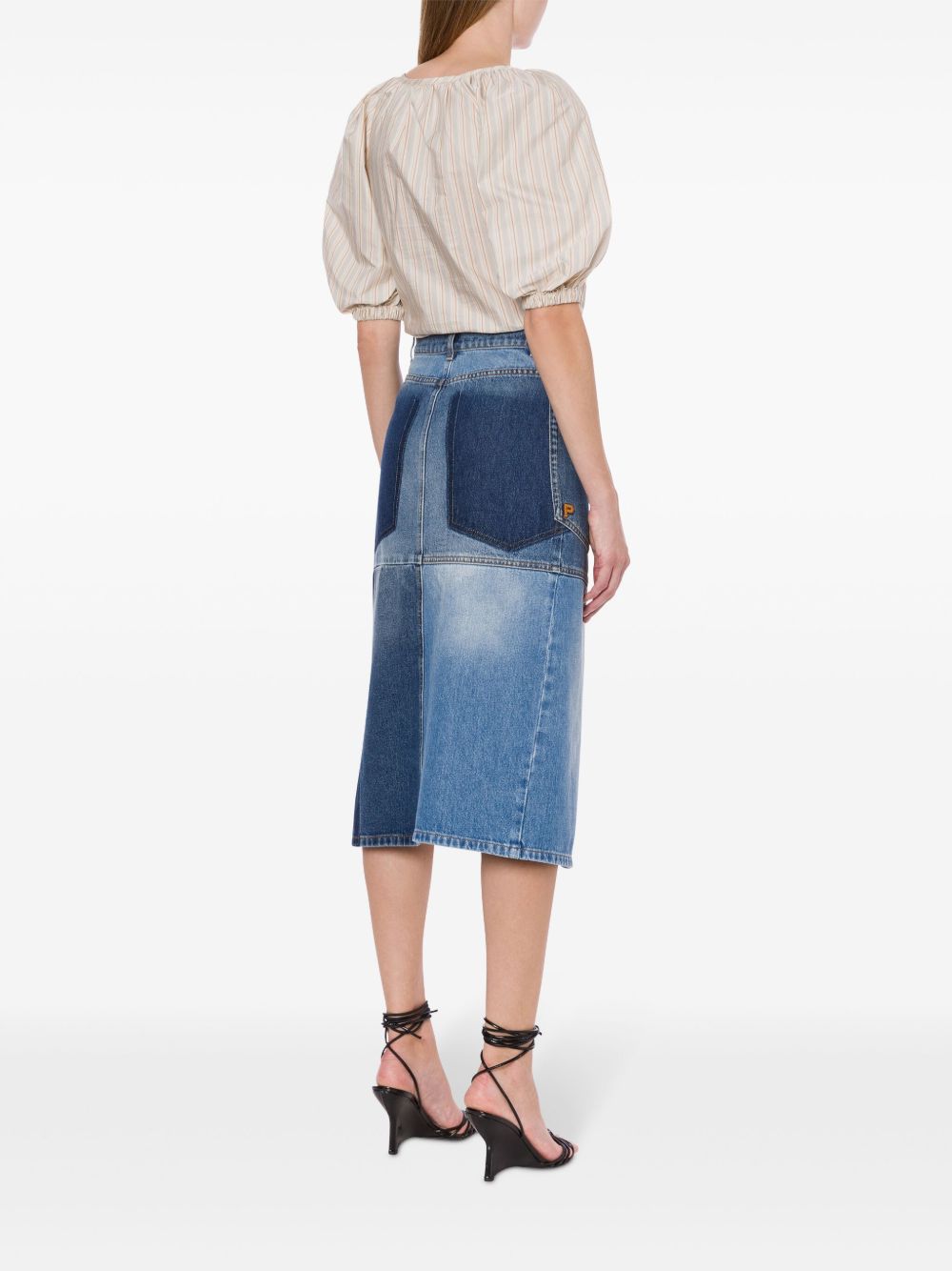 skirt, washed denim, midi wrap design, belt loops, button closure, large side pocket with embroidered logoComposition: 100% cotton Washing Instructions: Machine wash