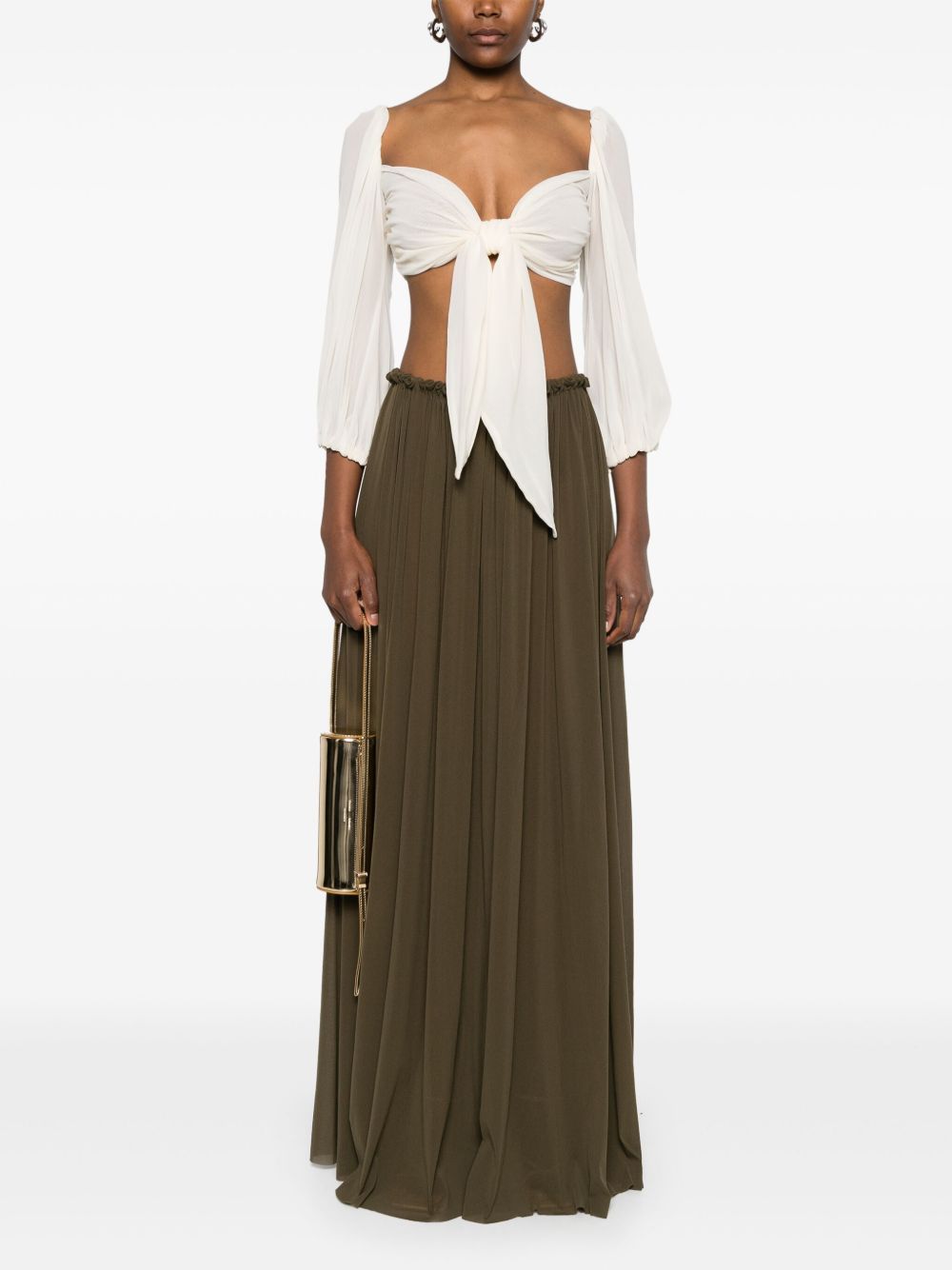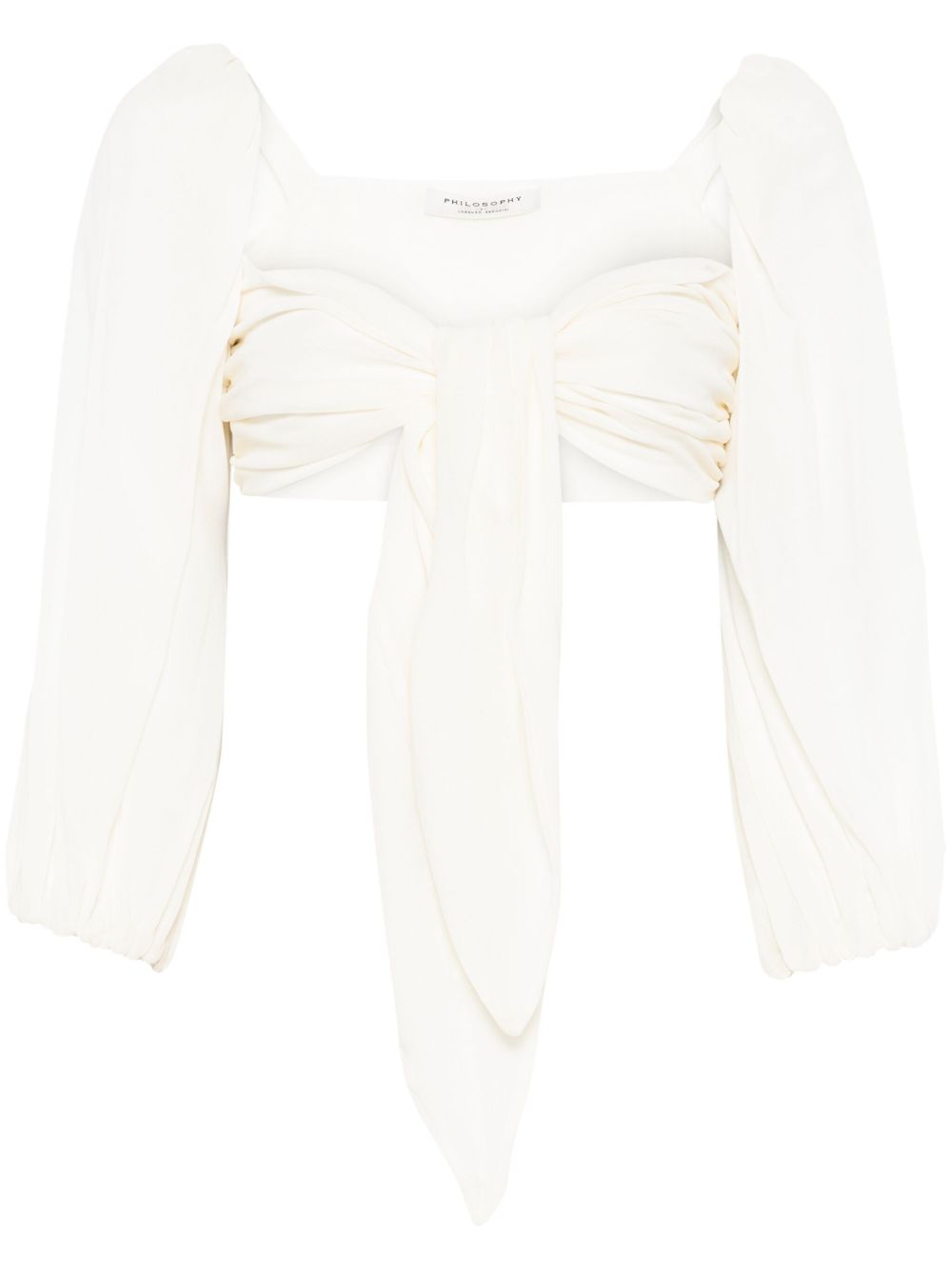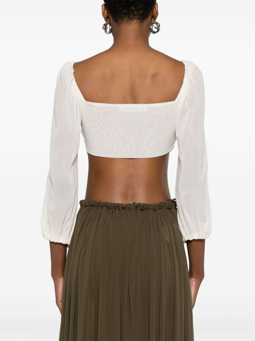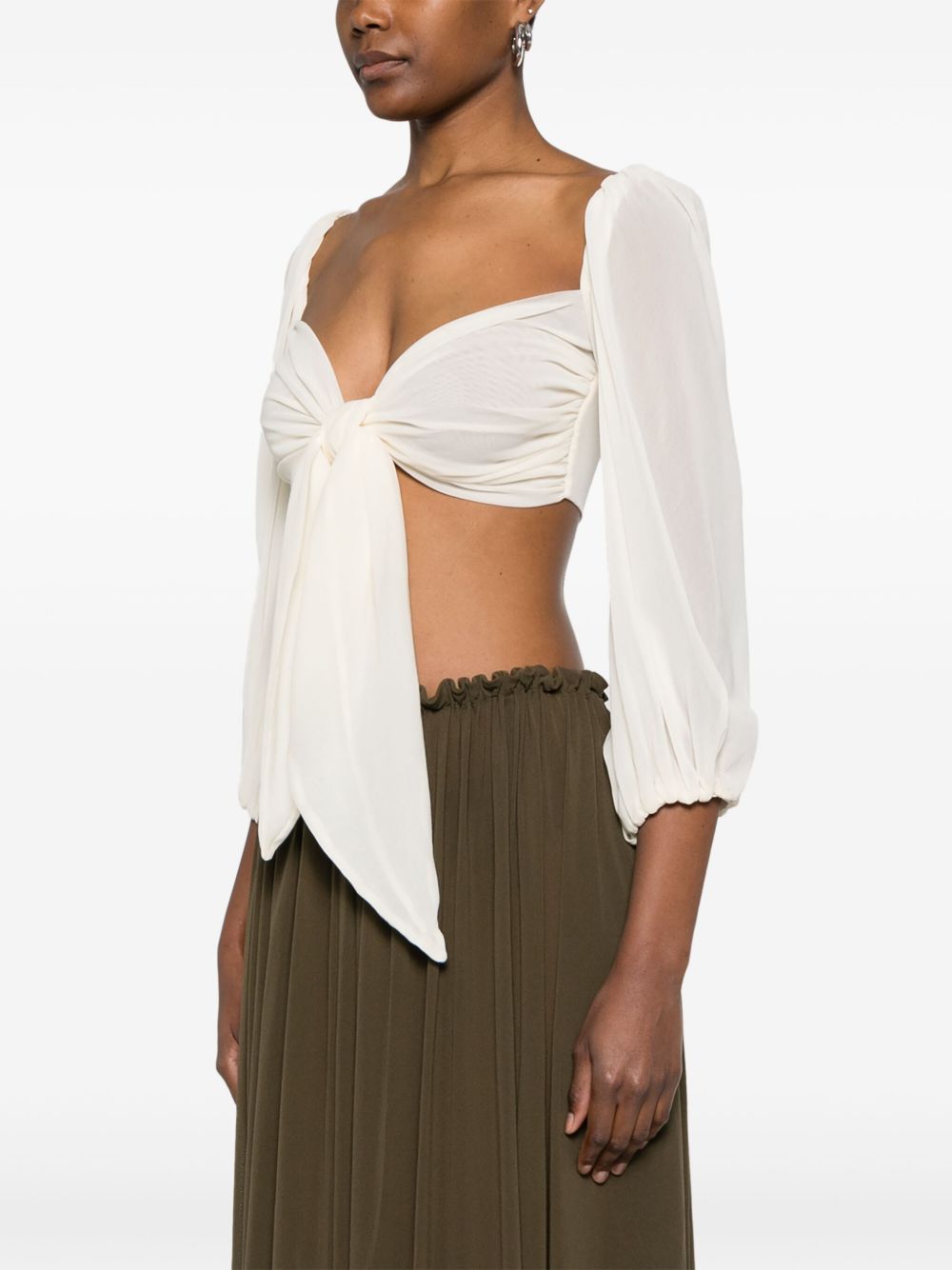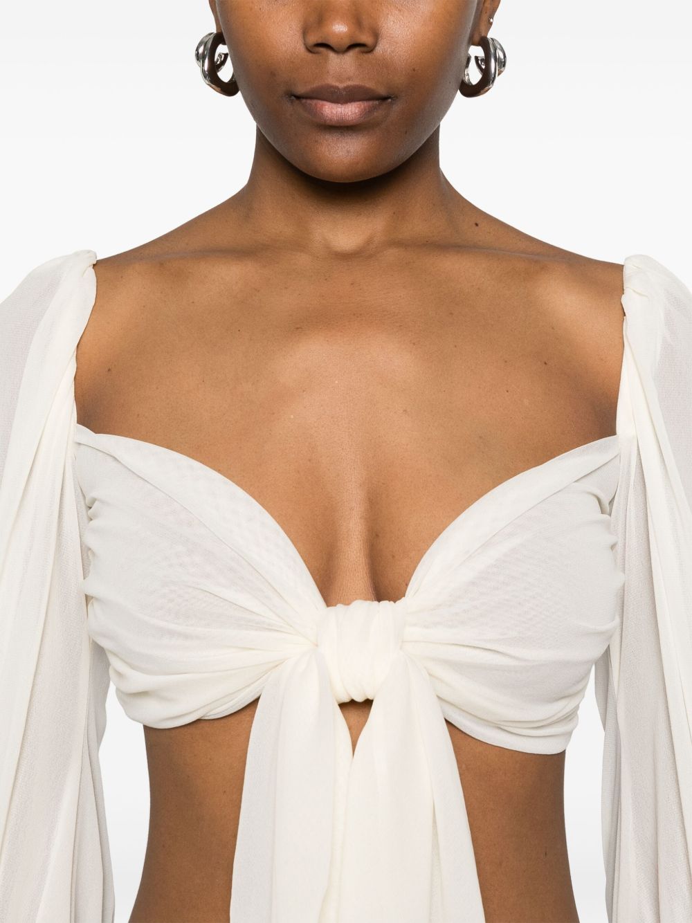 crop top, design with knot closure, long wide sleeves, elasticated cuffs, gathered shoulder, stretch tulleComposition: 100% polyamide Washing Instructions: Hand wash