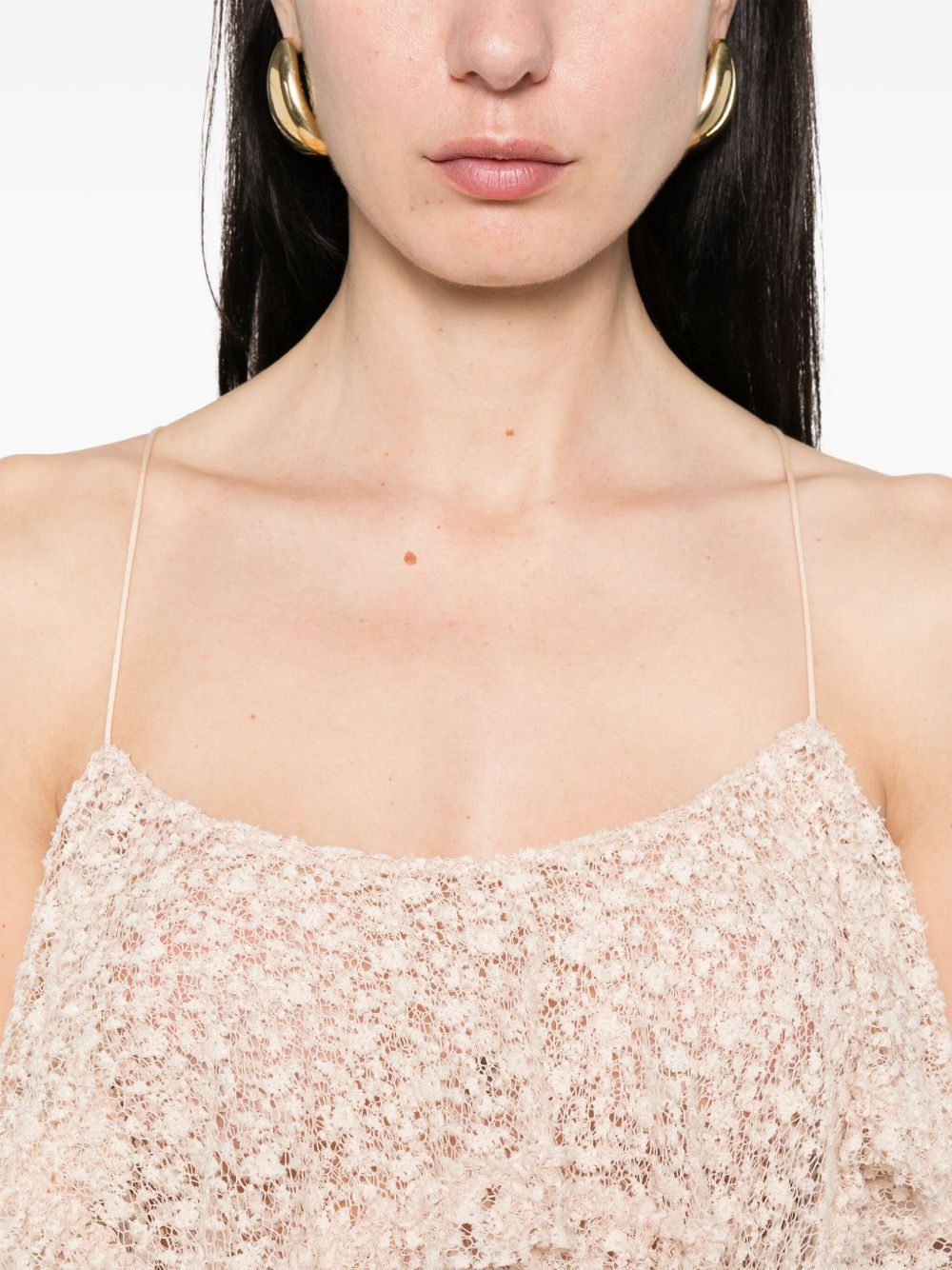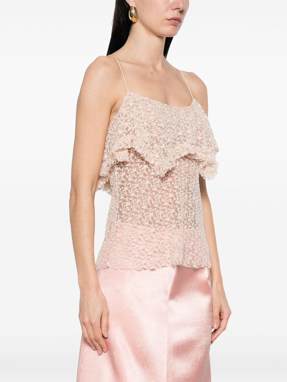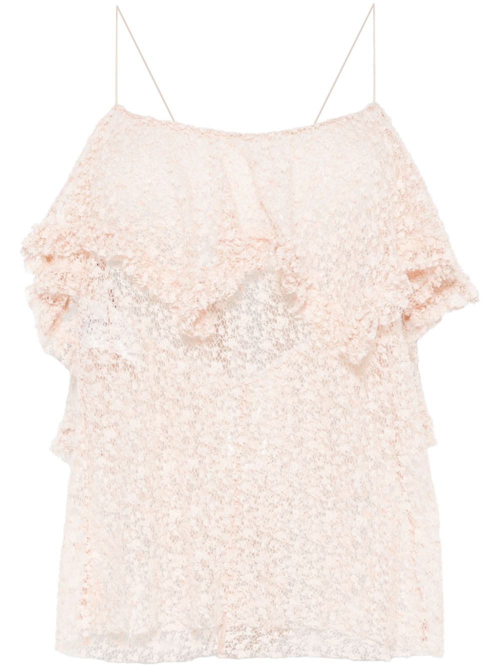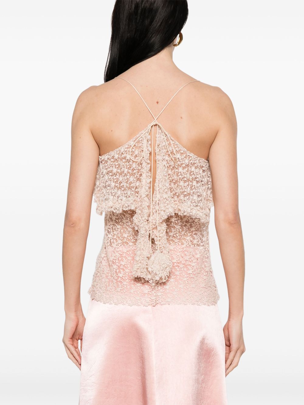 top, lace, semi-sheer, thin straps, asymmetric double layer hem, back knot closureComposition: 65% cotton 35% polyamideWashing instructions: dry clean