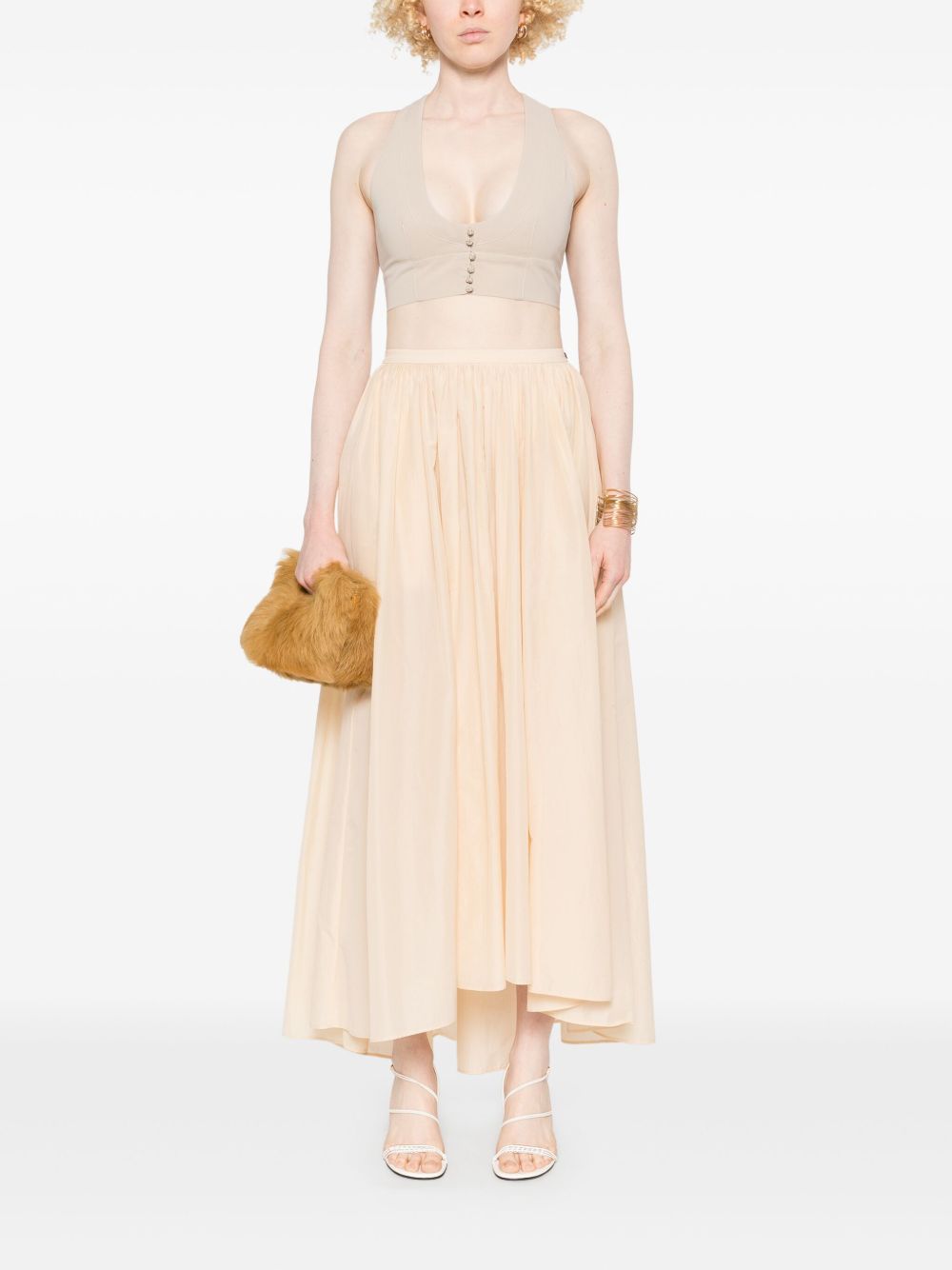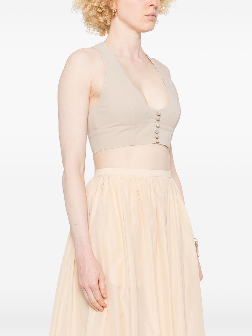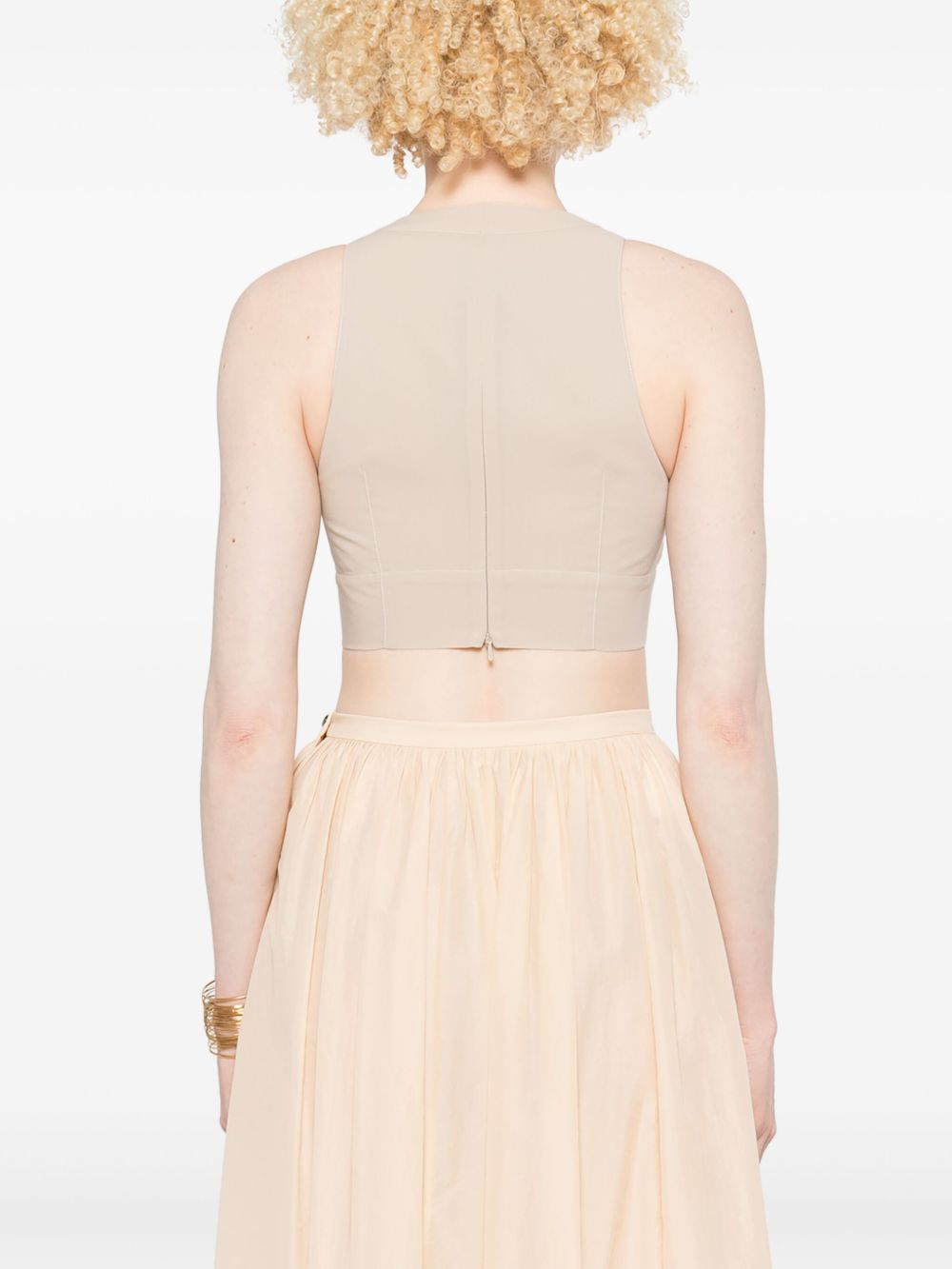 crop top, oval neckline, sleeveless, back zip fastening, faux button placket decoration with woven fabric buttons, linedComposition: 51% polyester 49% cottonWashing instructions: dry clean