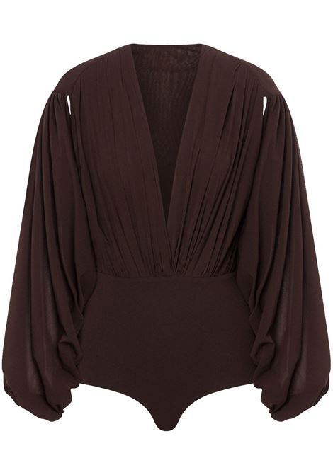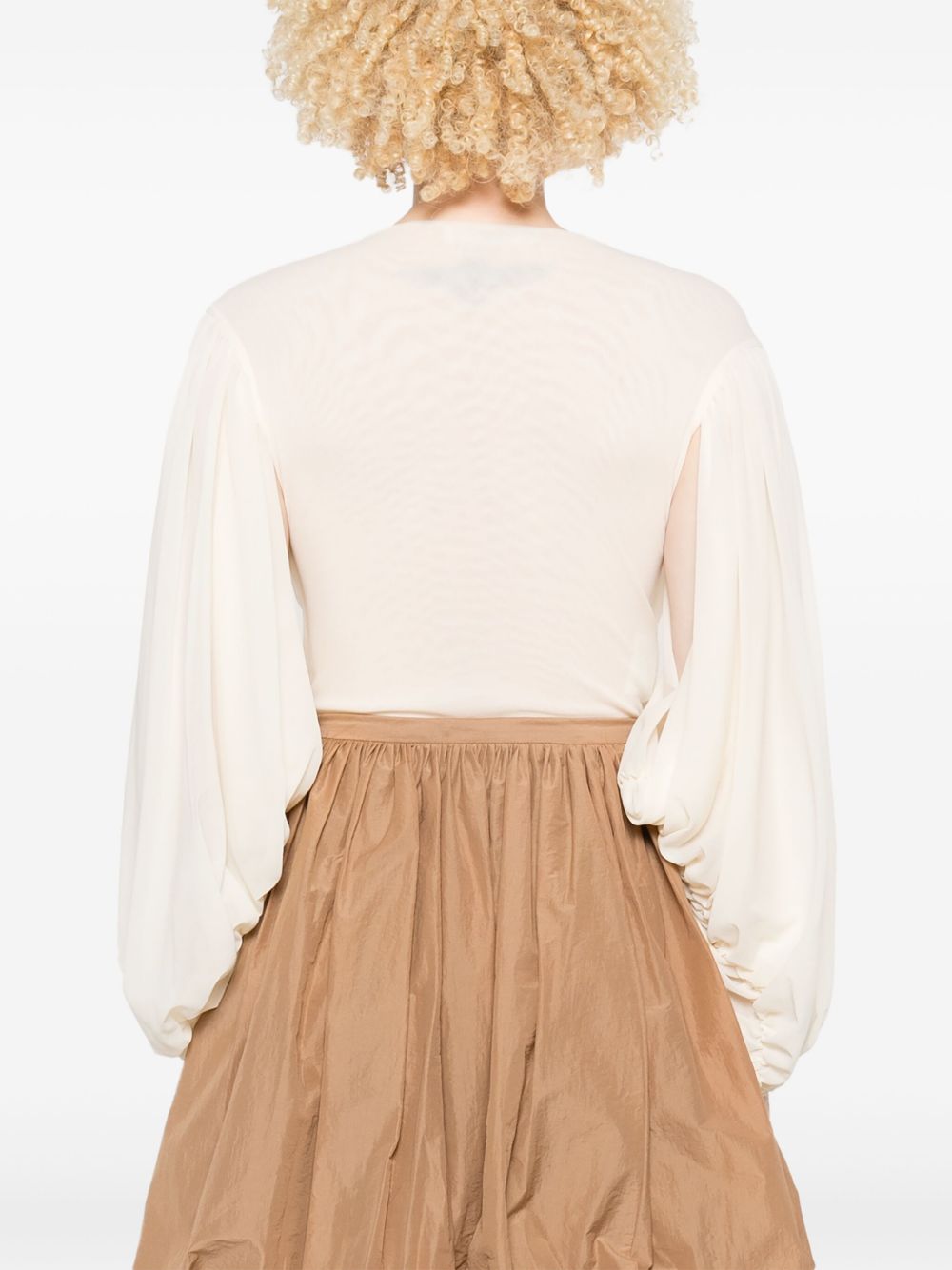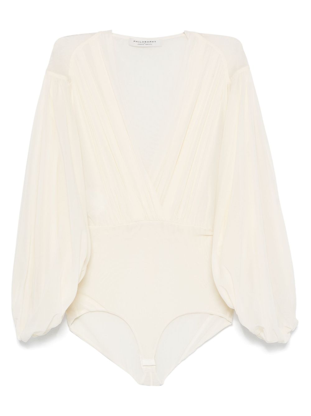 body, stretch tulle, v-neck, long and wide sleeve, draped, hook-and-eye closure at the bottomComposition: 100% polyamideWashing instructions: hand wash