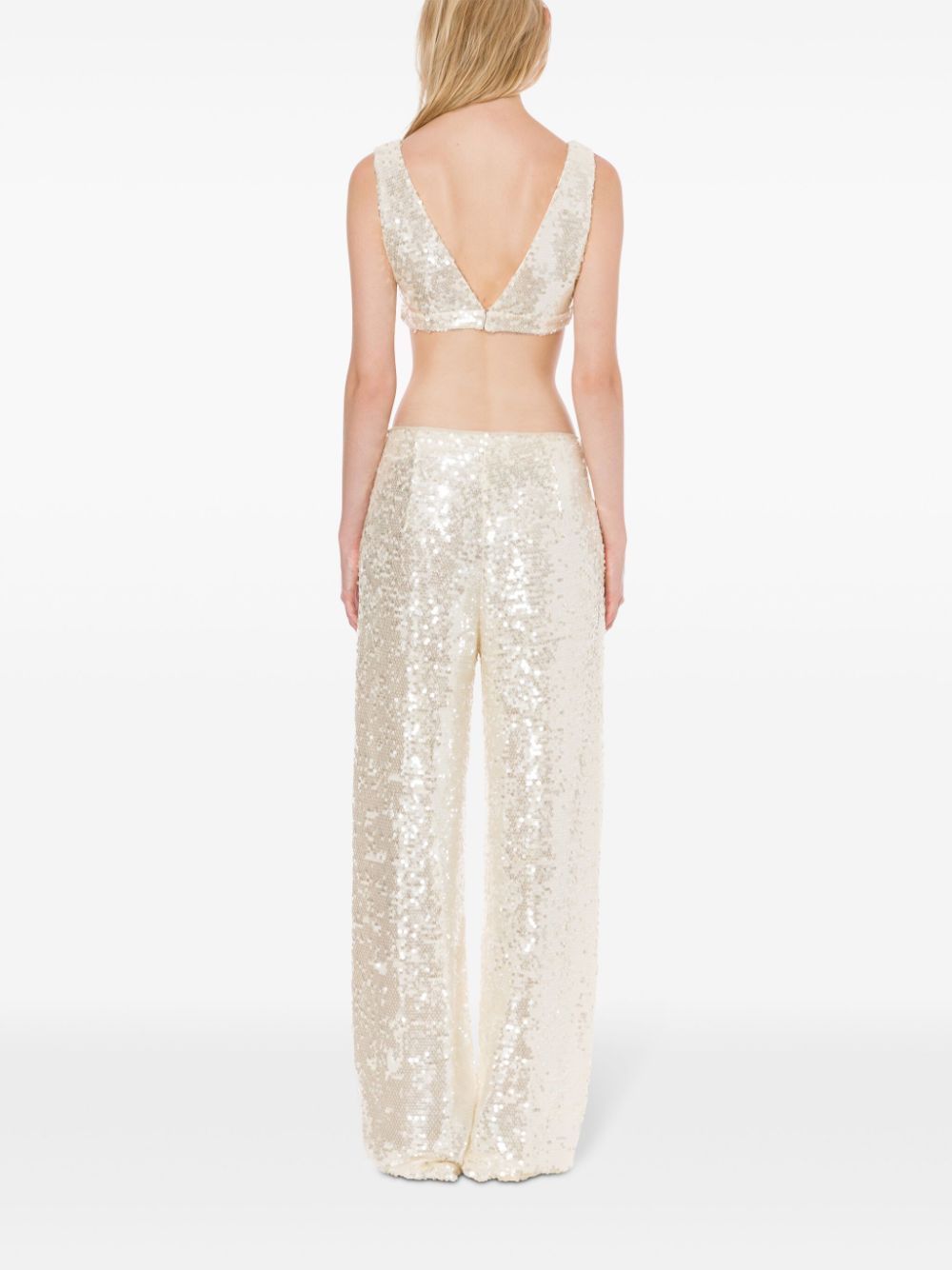 trousers, sequins, wide leg, lined, hook and zip closure, side pocketsComposition: 95% polyester, 5% elastane Washing instructions: dry clean
