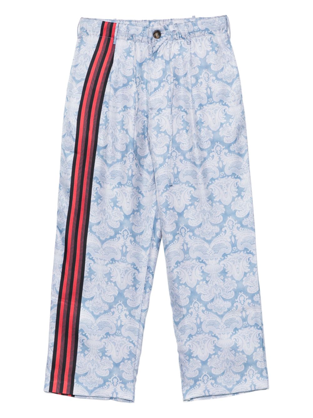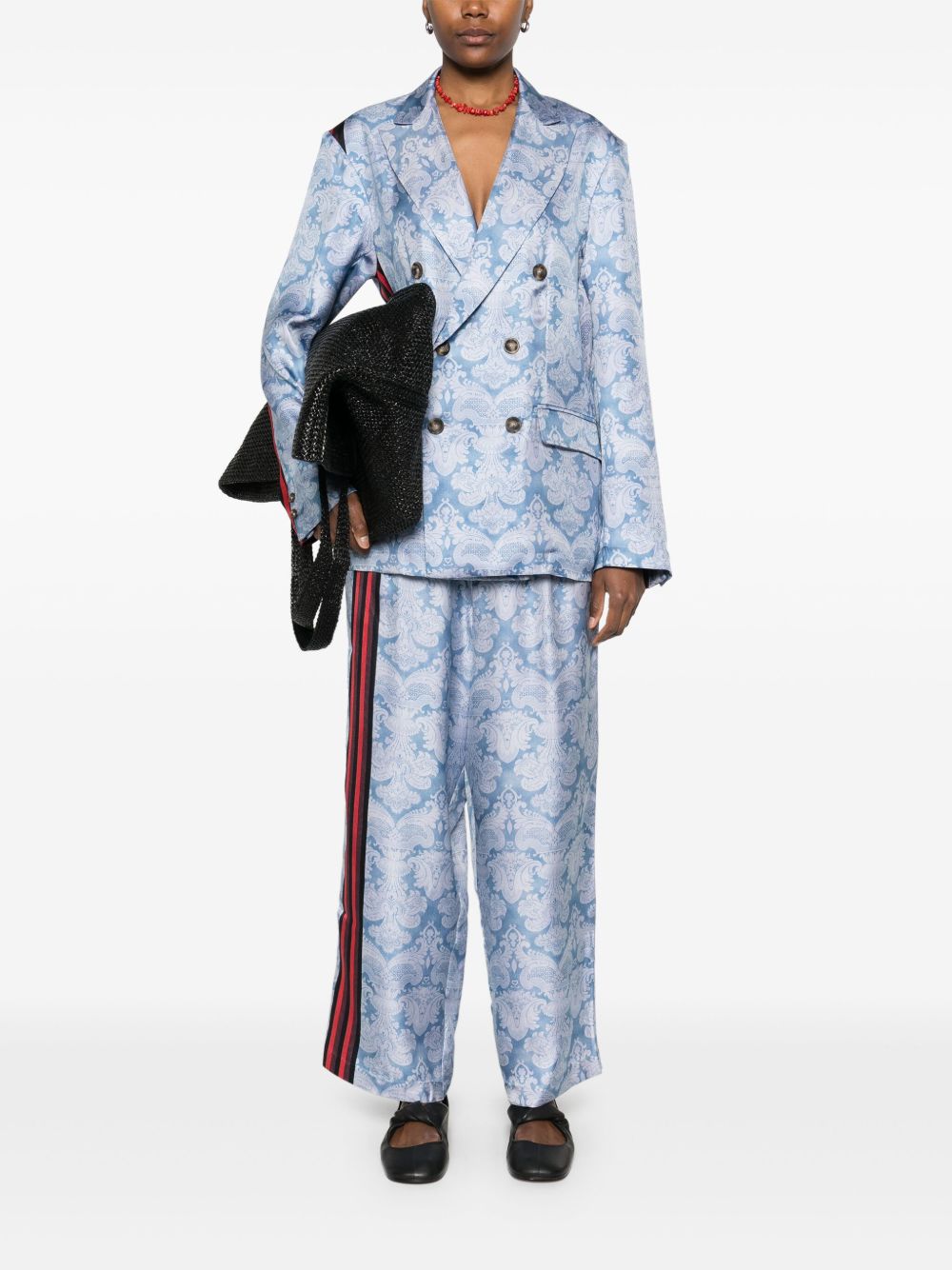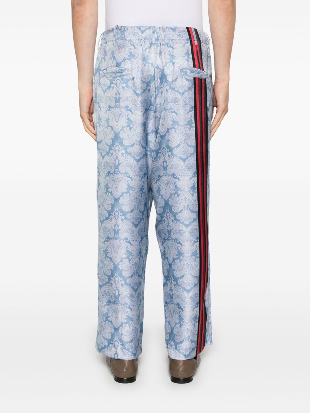trousers, elastic waist with drawstring, belt loops, zip and button closure, side pockets, back pockets, wide leg, brocade print with contrasting stripe on the legComposition: 100% silk Washing instructions: dry clean