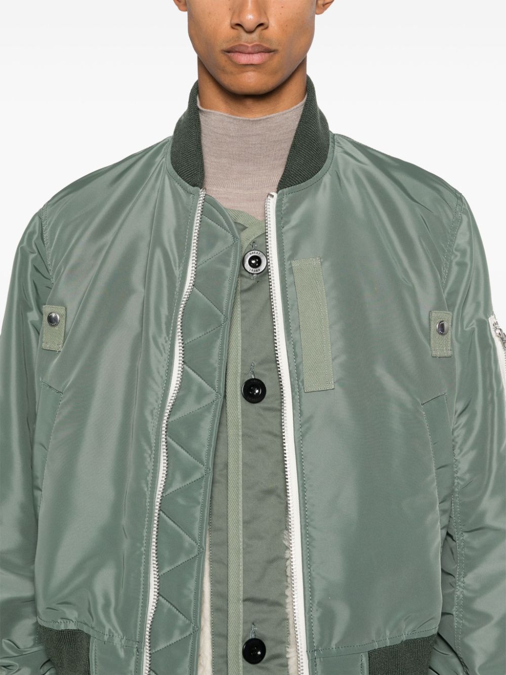 bomber, zip fastening, knitted trim, long sleeves, zip pocket on arm, side pockets with snap button, fixed internal vest in faux sheepskin with side pockets and button fastening, relaxed fit