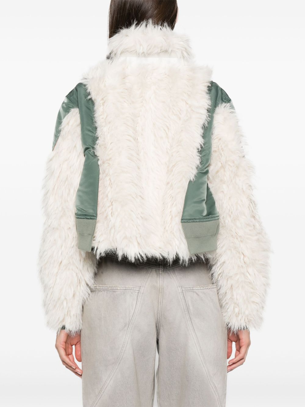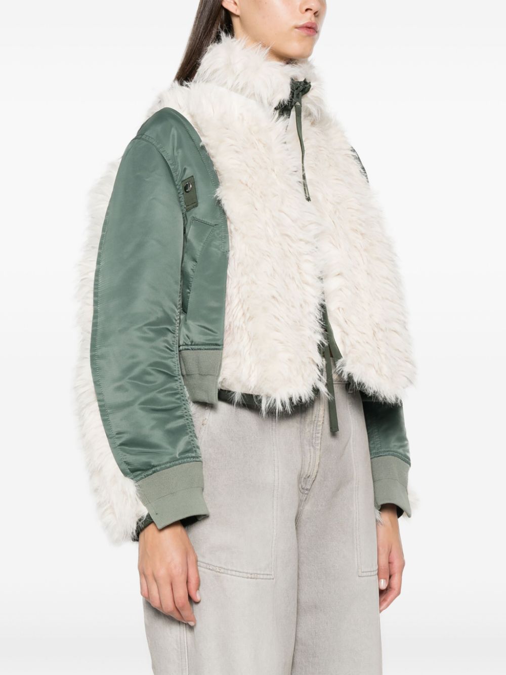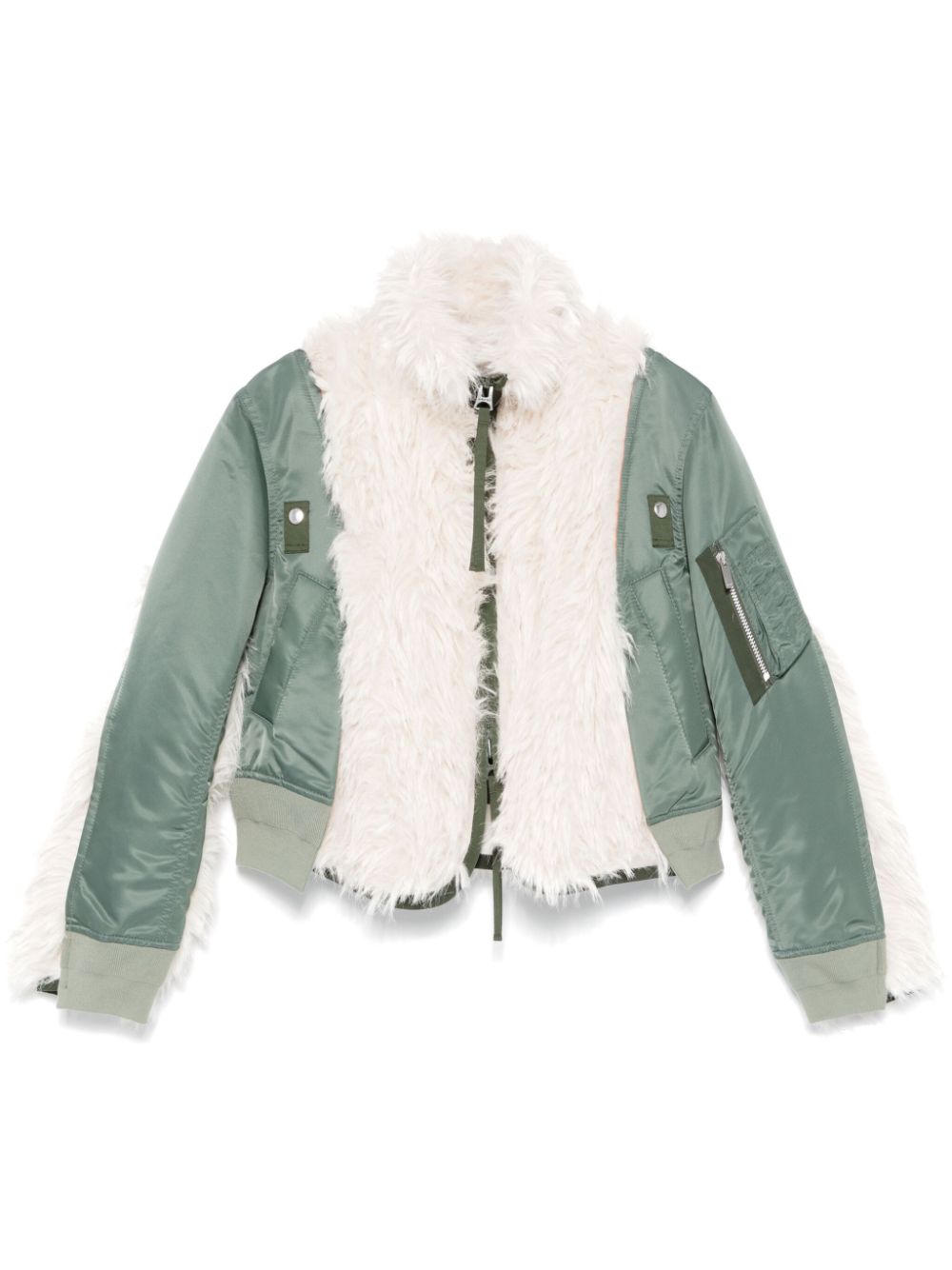 bomber jacket, crop zip closure, side pockets. long sleeve, zip pocket on arm, front and back slits, faux fur inserts, Composition: 100% polyester Washing instructions: dry clean