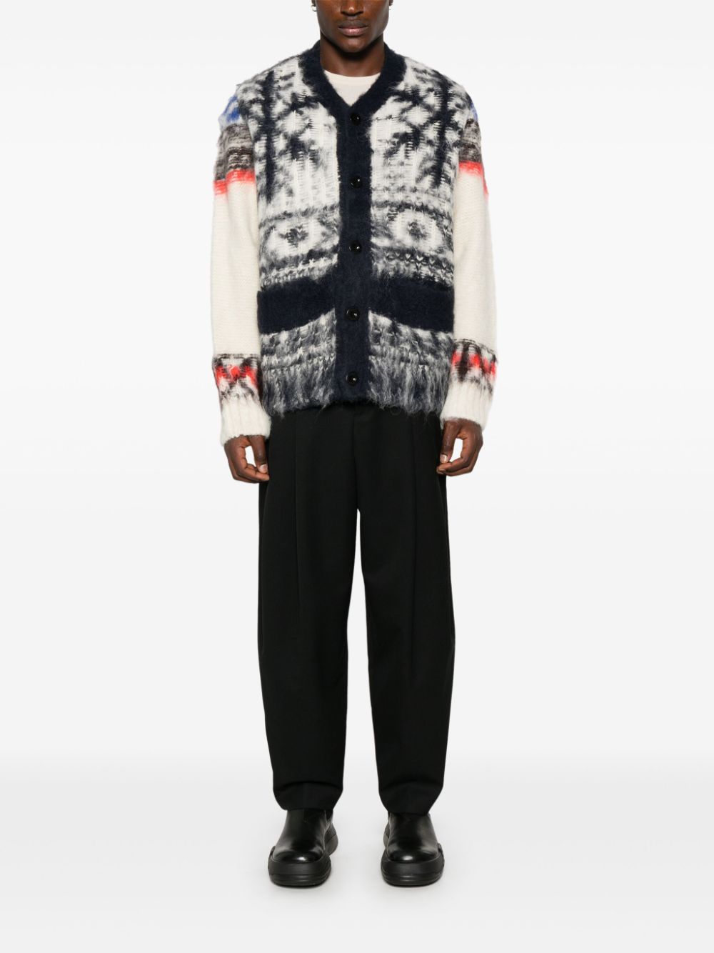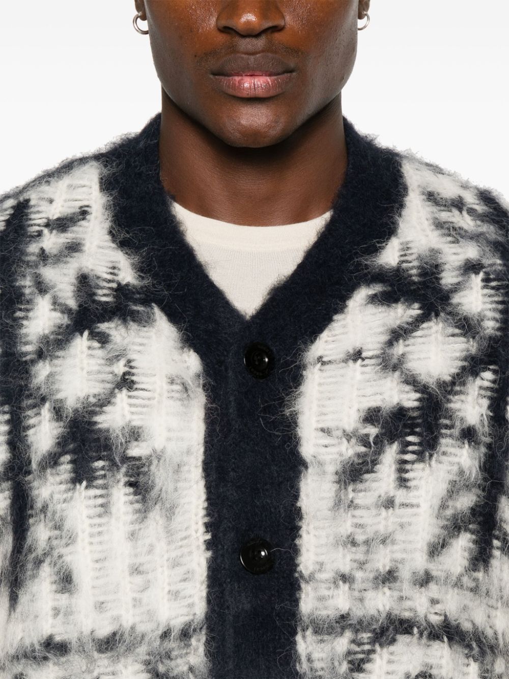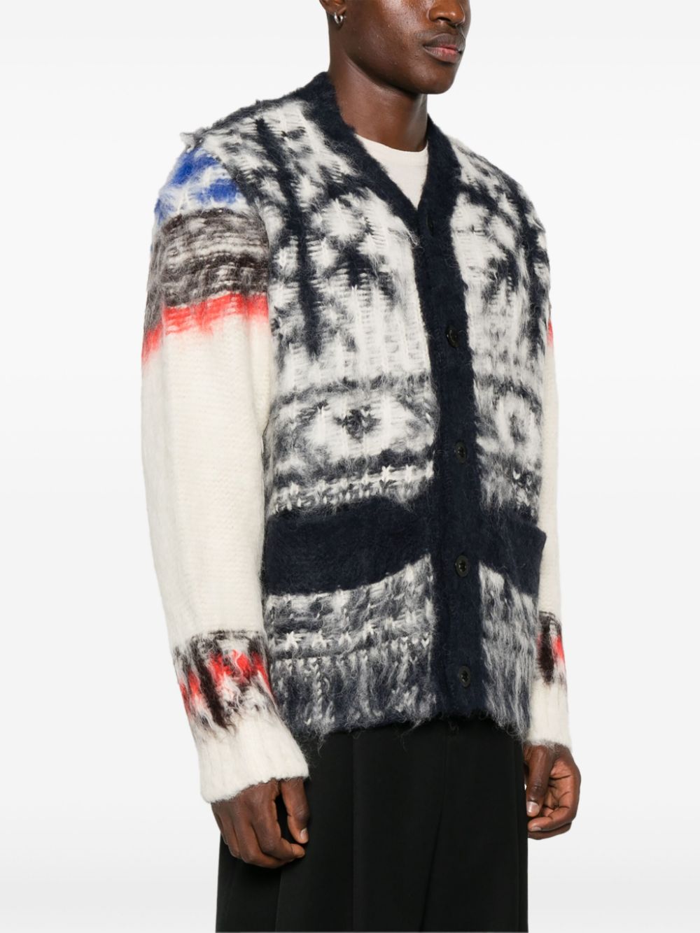 cardigan, v-neck, button closure, long sleeve, jacquard workmanshipComposition: 65% alpaca 35% woolWashing instructions: dry clean