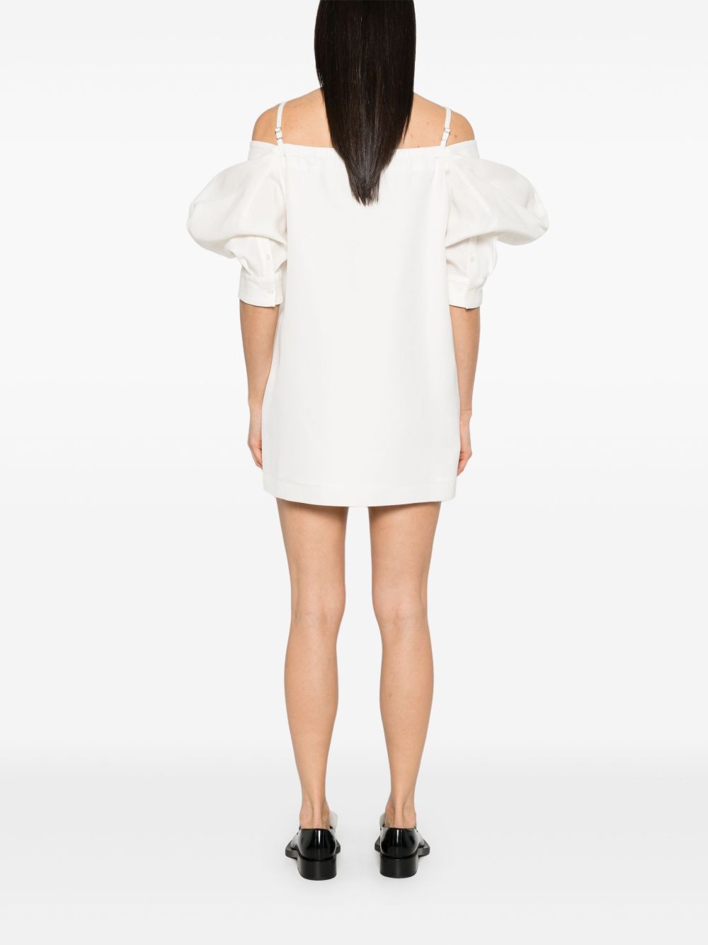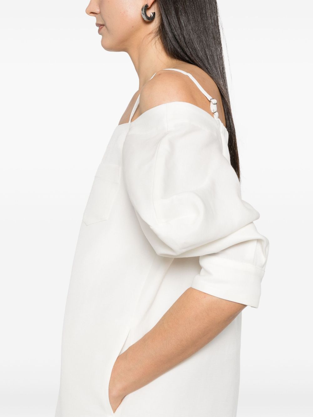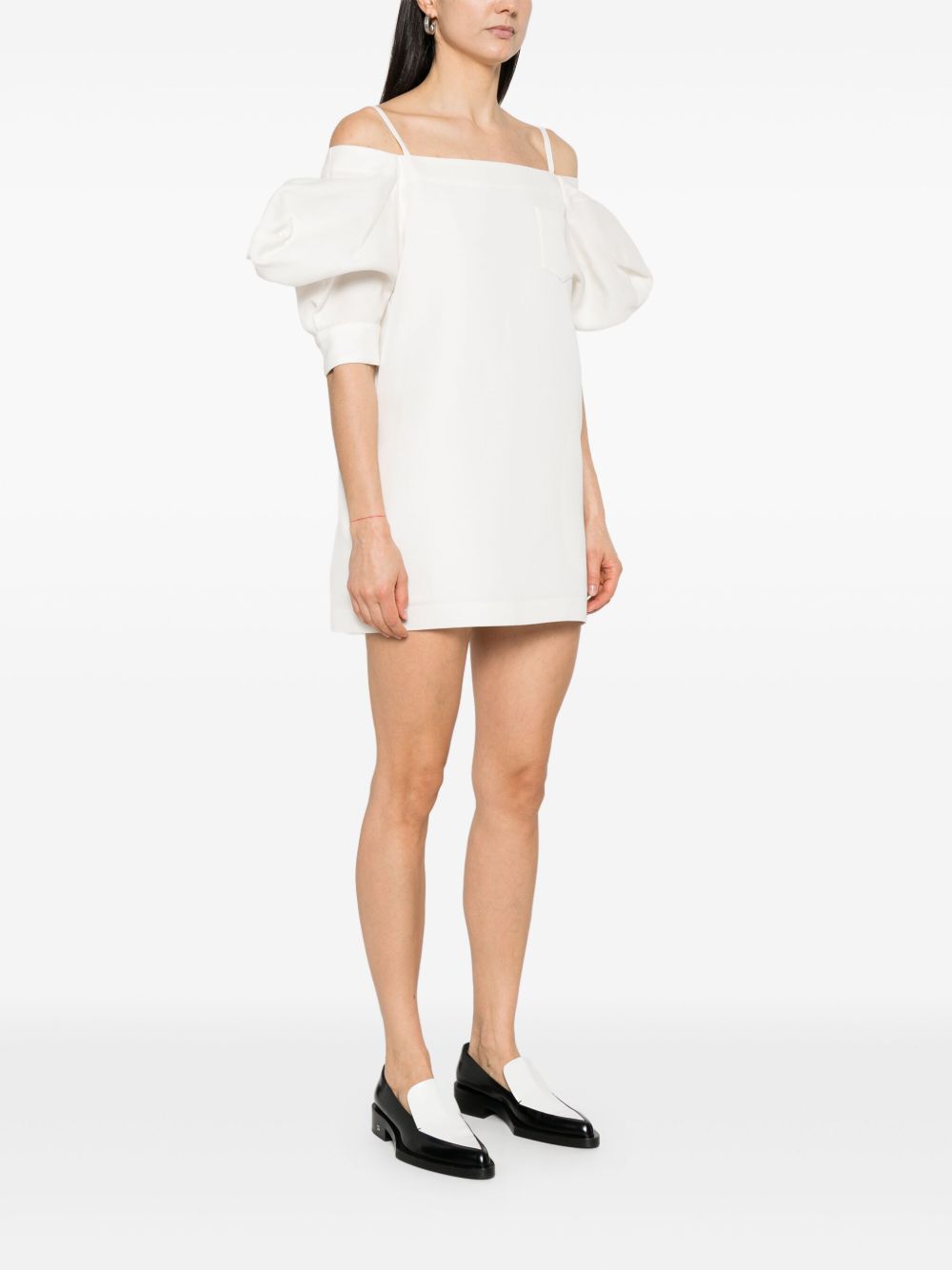 short dress, off the shoulder, adjustable straps, short puff sleeve, pocket, lined, comfortable designComposition: 54% silk 46% cottonWashing instructions: dry clean