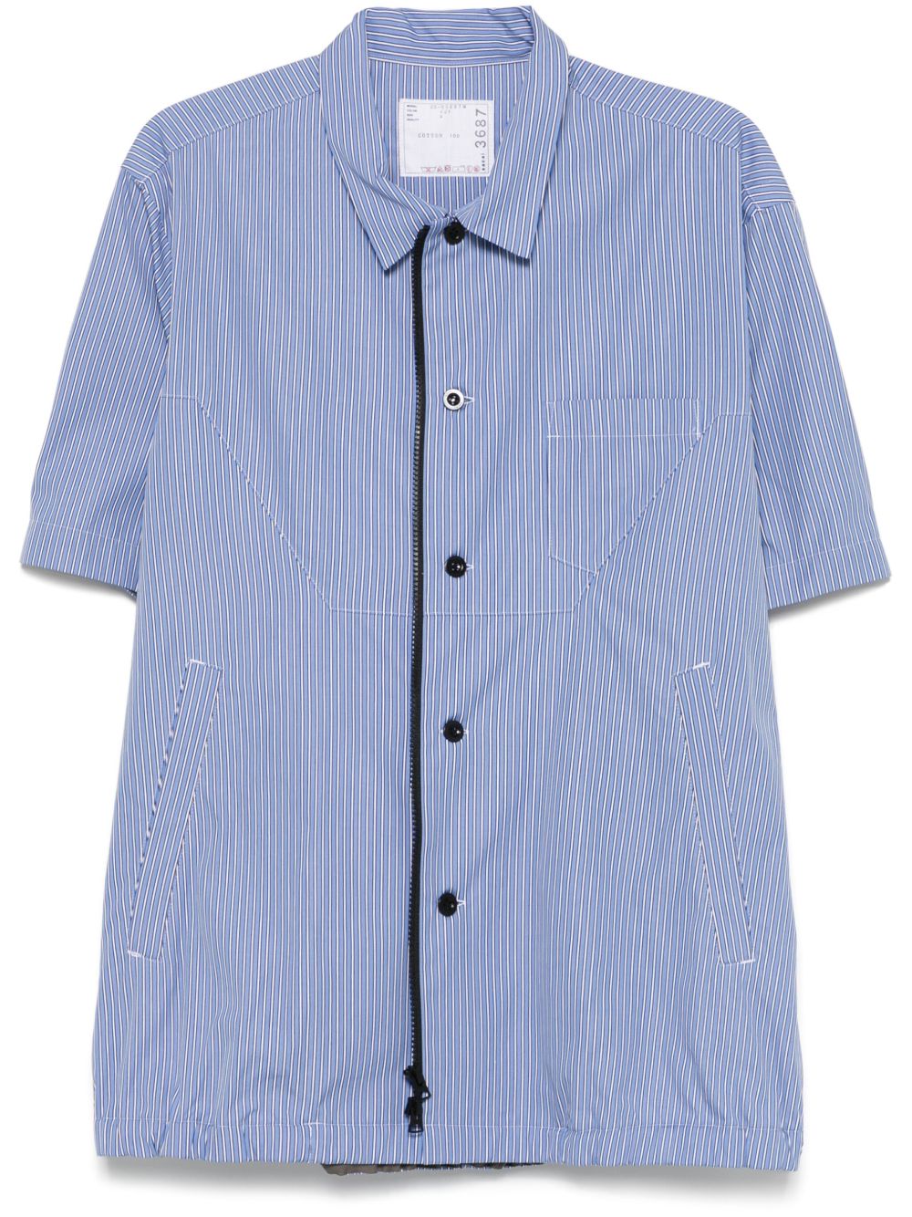 shirt, short sleeve, pointed collar, button or zip closure, , pocket, side pockets, relaxed fit, drawstring hem, striped fabricComposition: 100% cottonWashing instructions: dry clean