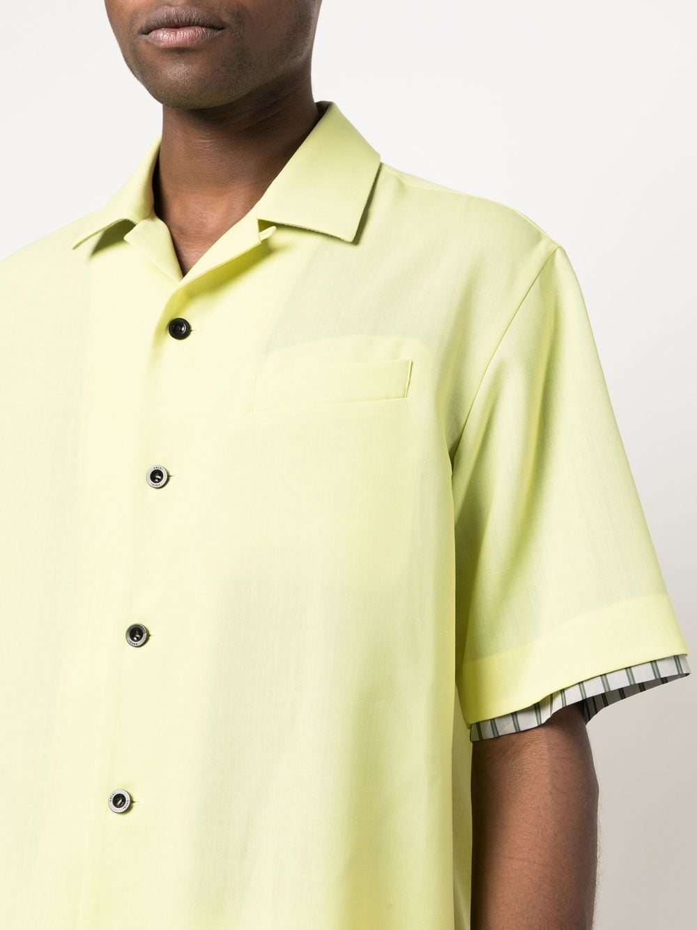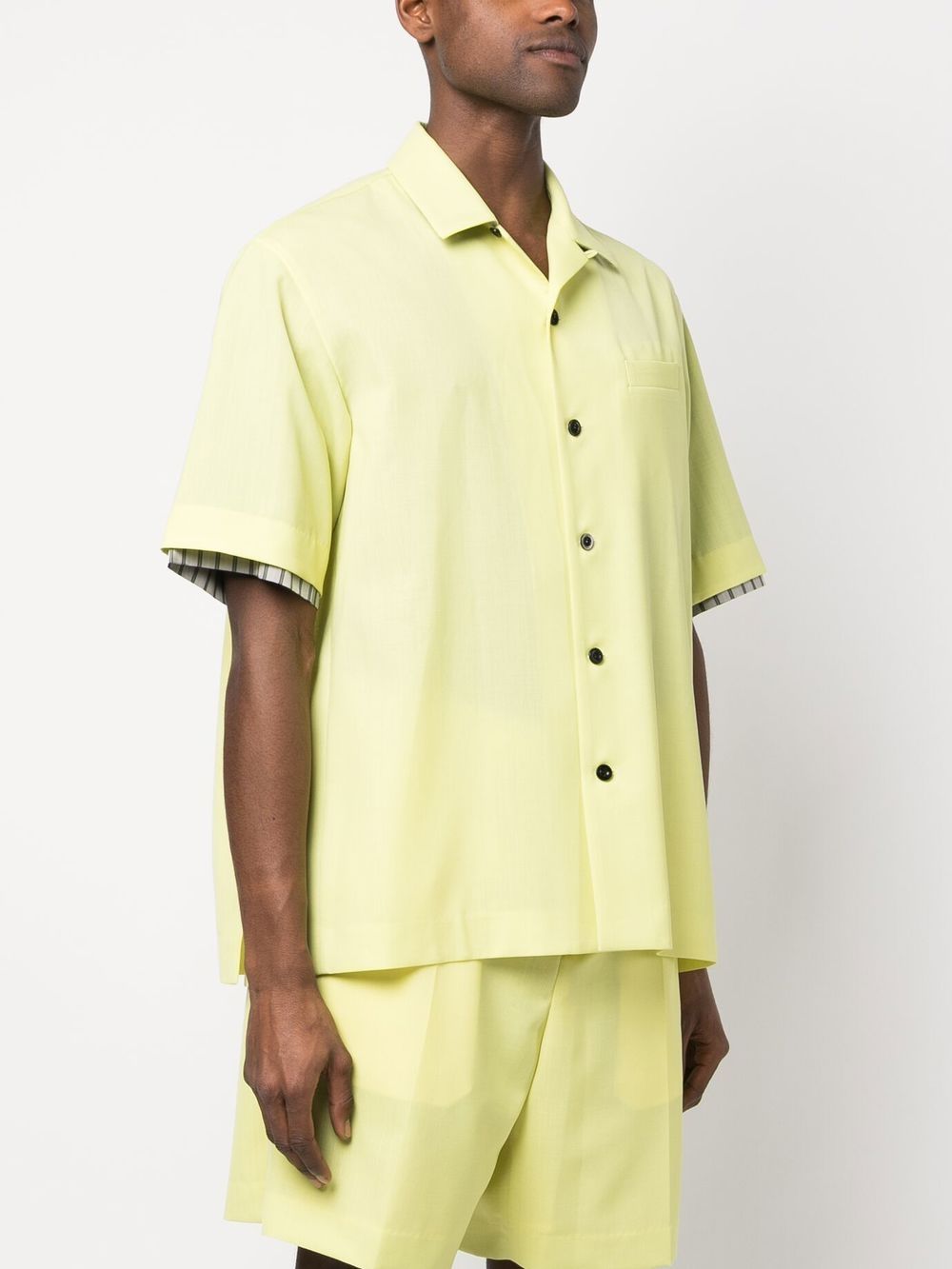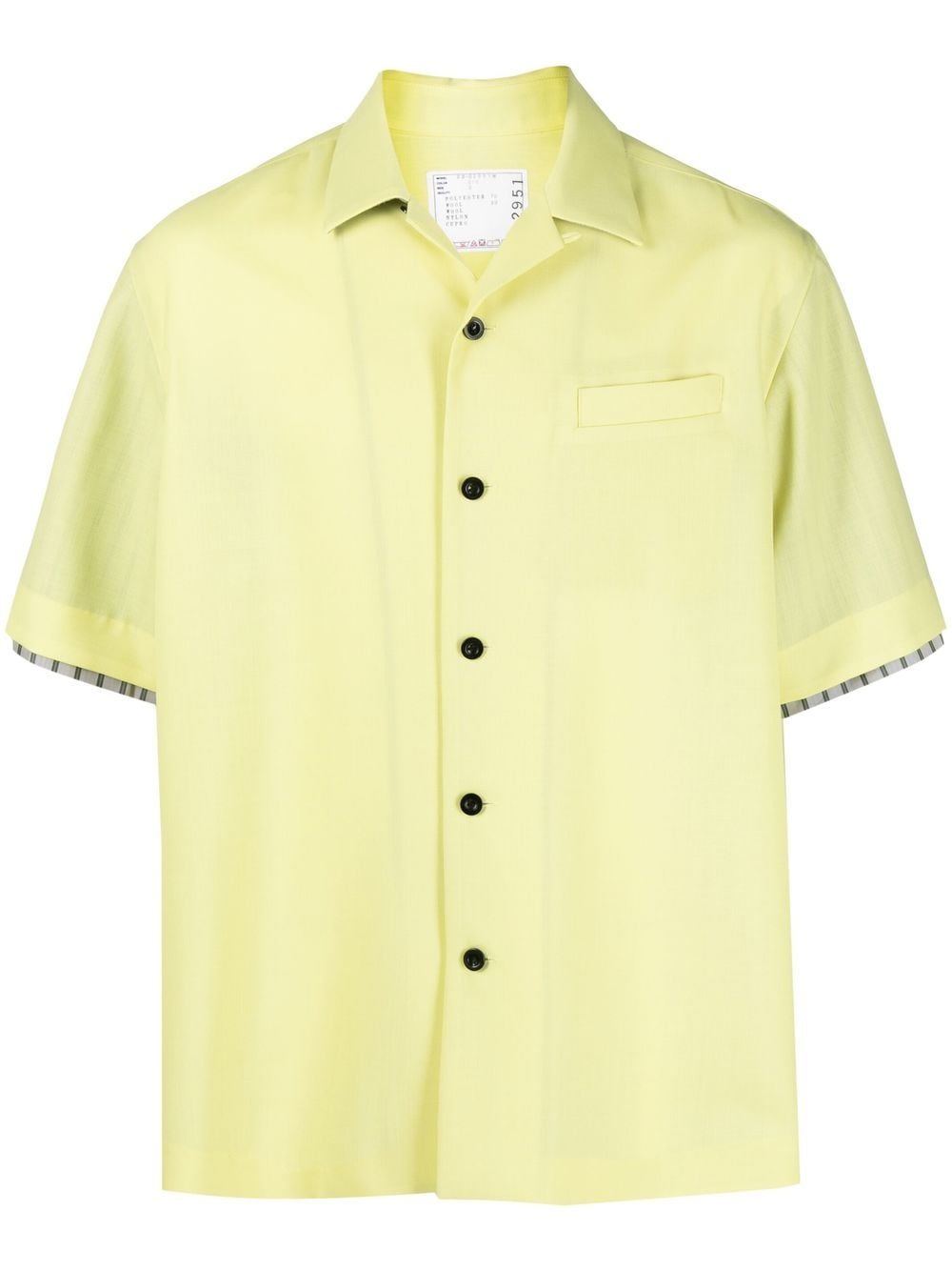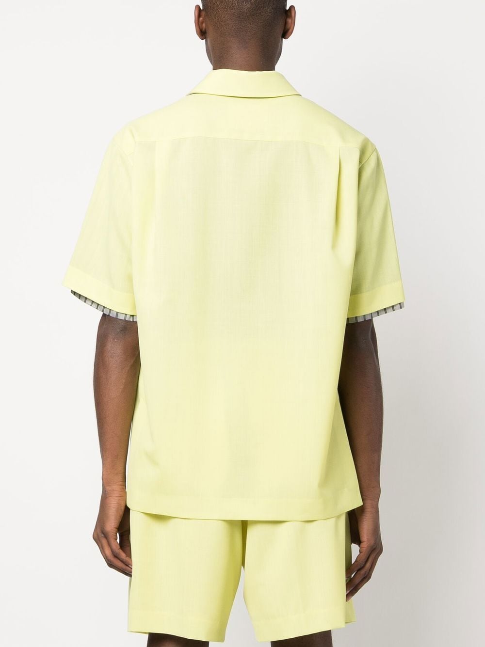 shirt, cool wool, collar, buttons, pocket, short sleeves with visible lining, loose fit,side slitsComposition: 70% polyester 30% woolWashing instructions: dry clean only