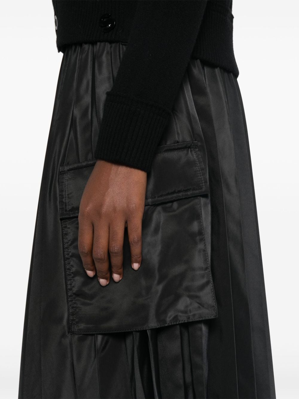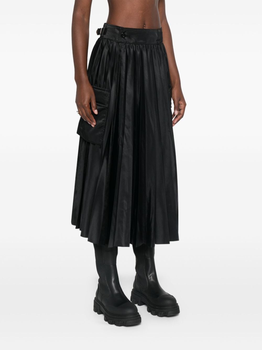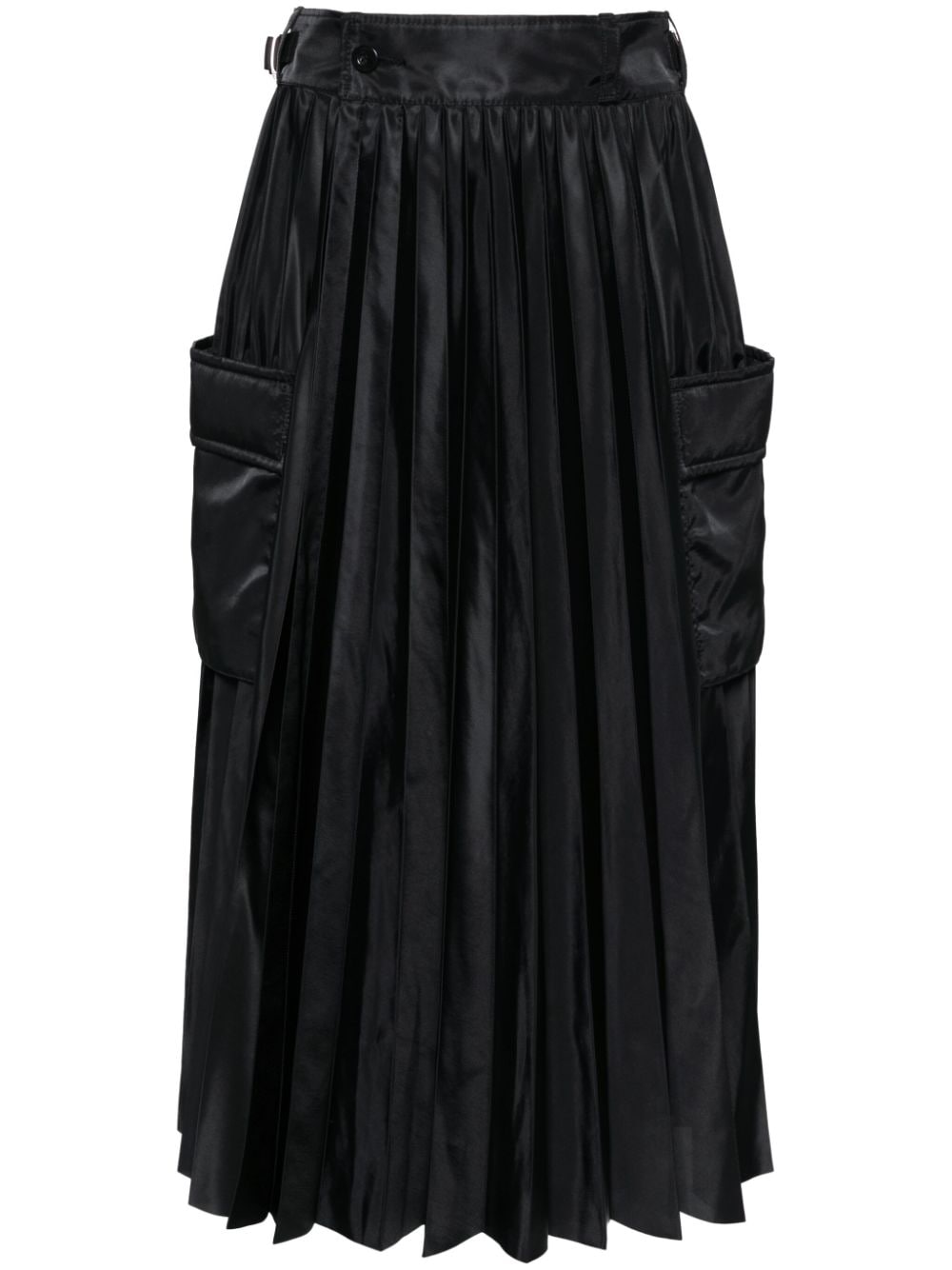 midi skirt, pleated, side pockets with flaps, belt loops, adjustable waist straps, wrap closure with buttonsComposition: 100% polyesterWashing instructions: dry clean