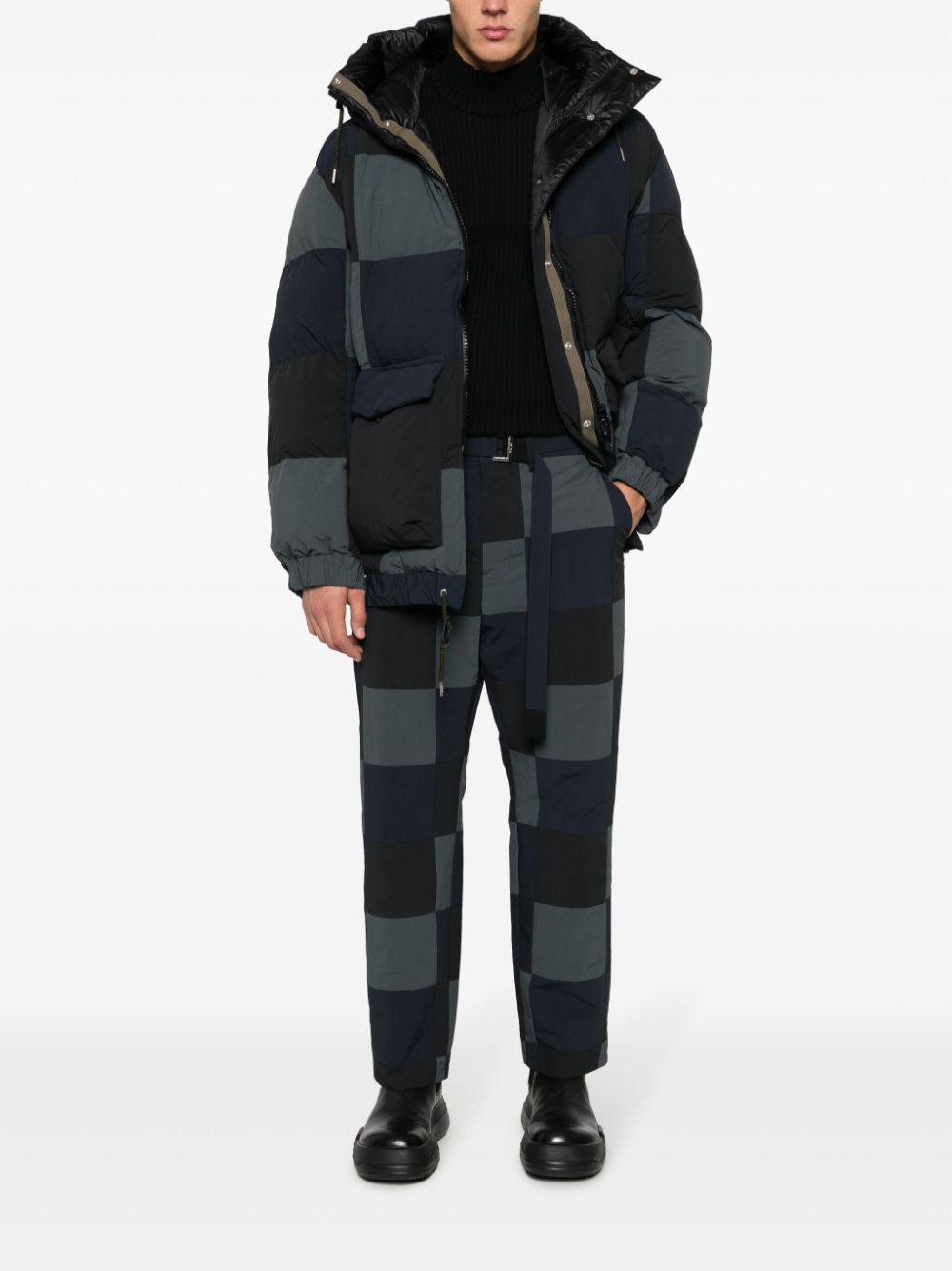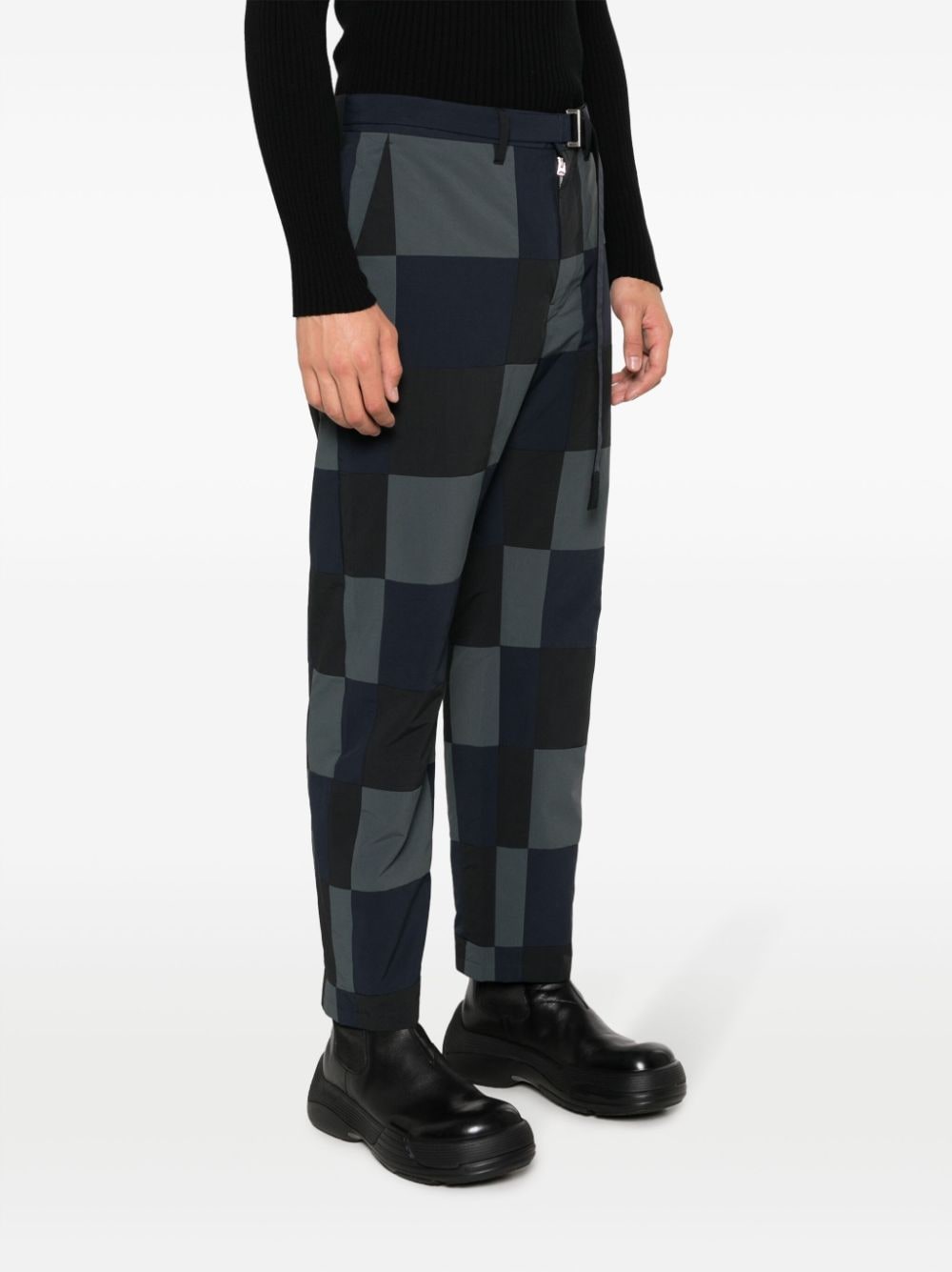 trousers, patchwork fabric, belt, belt loops, button and zip closure, crop model, multi pocketsComposition: 100% polyesterWashing instructions: dry clean