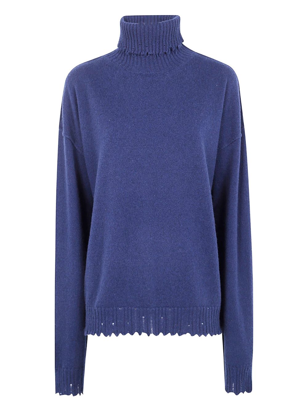 Sweater, turtleneck, long sleeves, loose fit, frayed edges