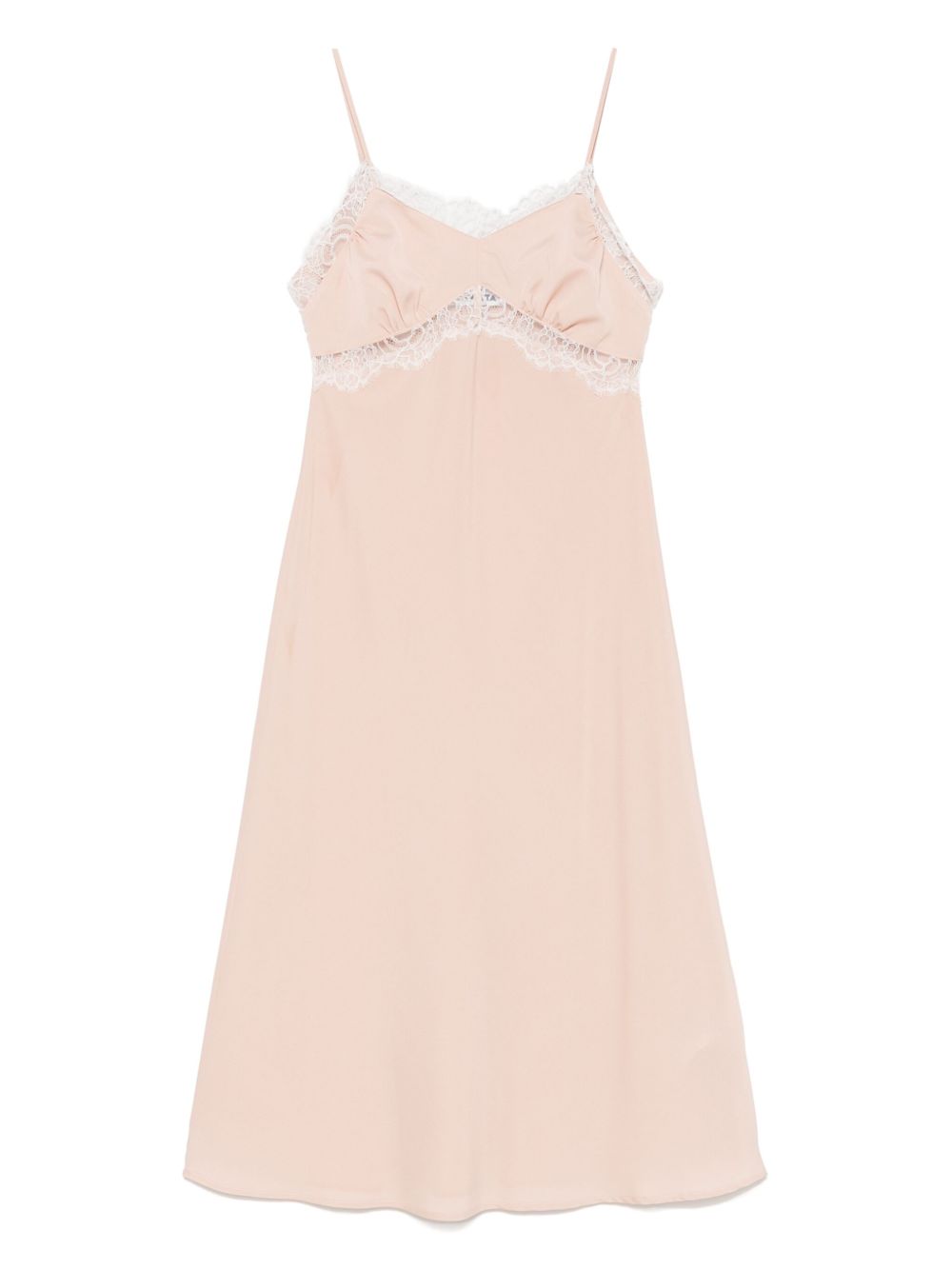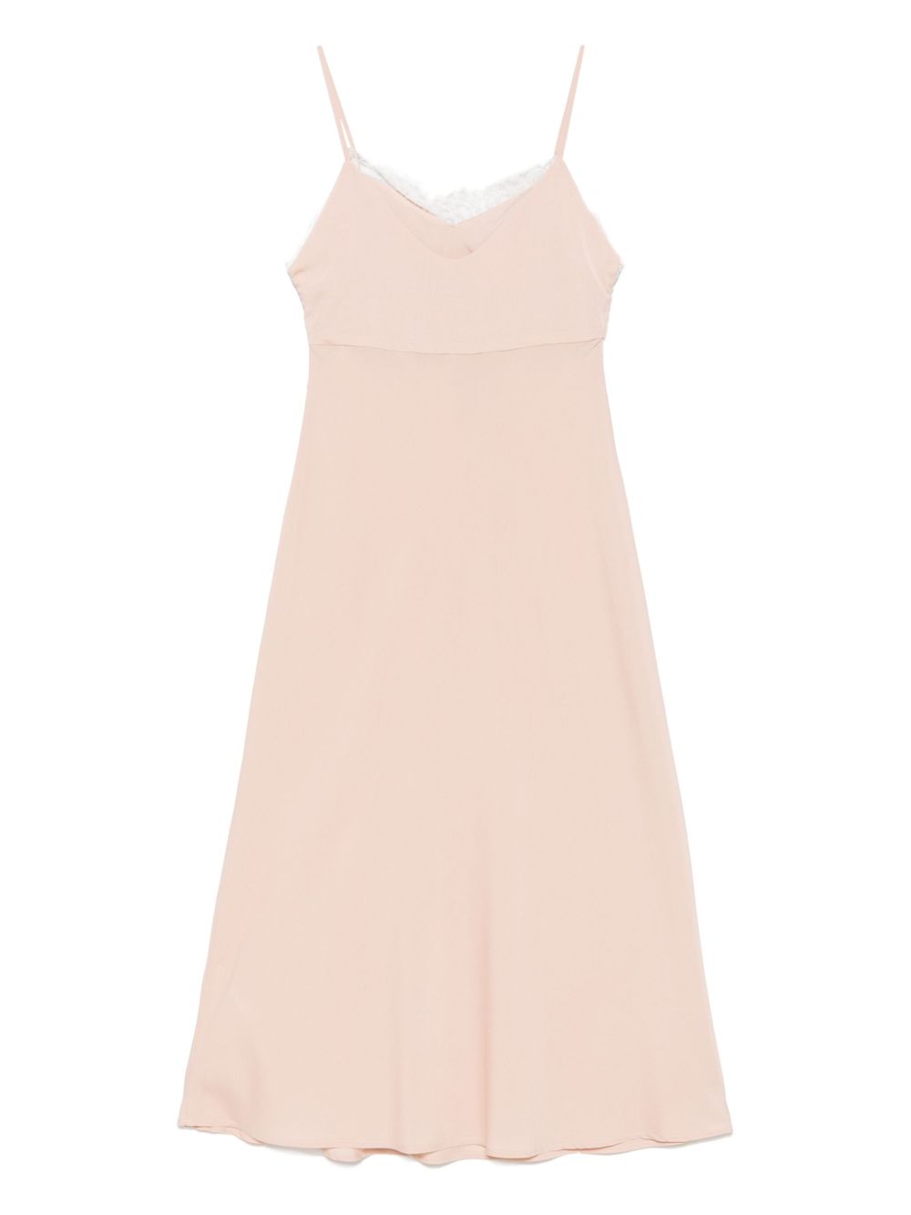 midi slip dress, thin straps, lace details with transparencies, flared bottomComposition: 100% polyesterWashing instructions: dry clean