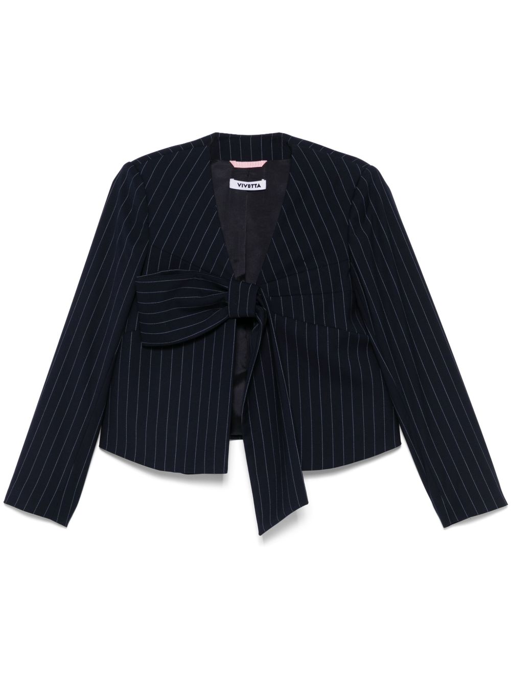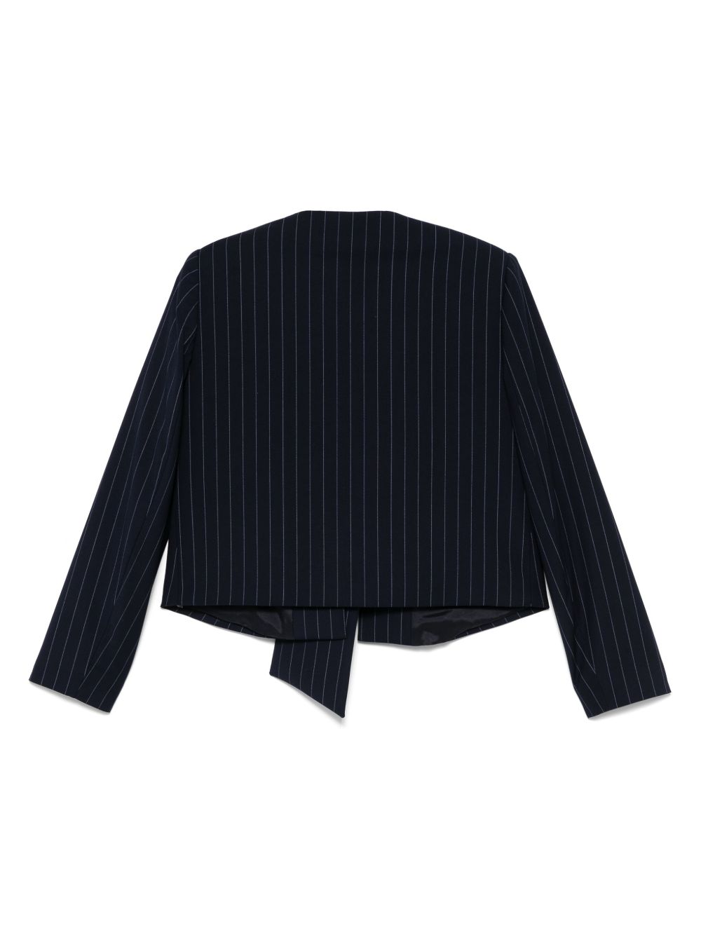 jacket, pinstriped fabric, collarless, v-neck, bow closure with snap button, long sleeves, crop design, linedComposition: 70% polyester 28% viscose 2% elastane Washing instructions: dry clean