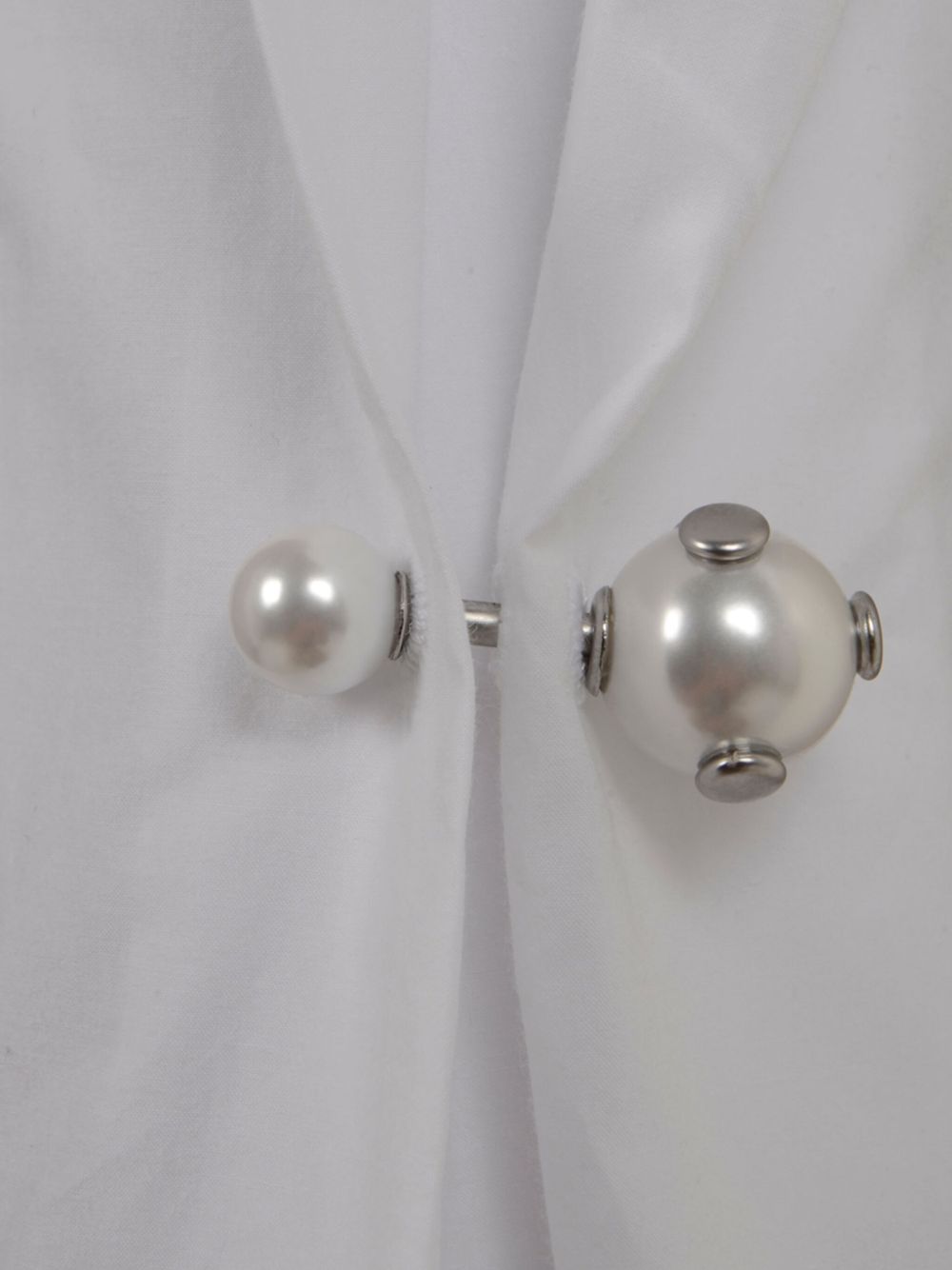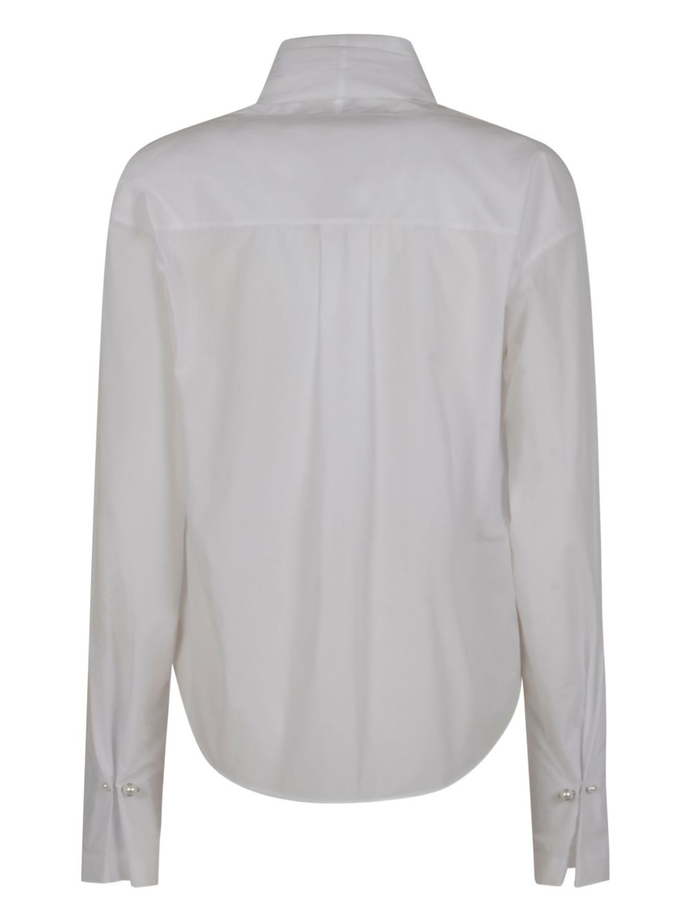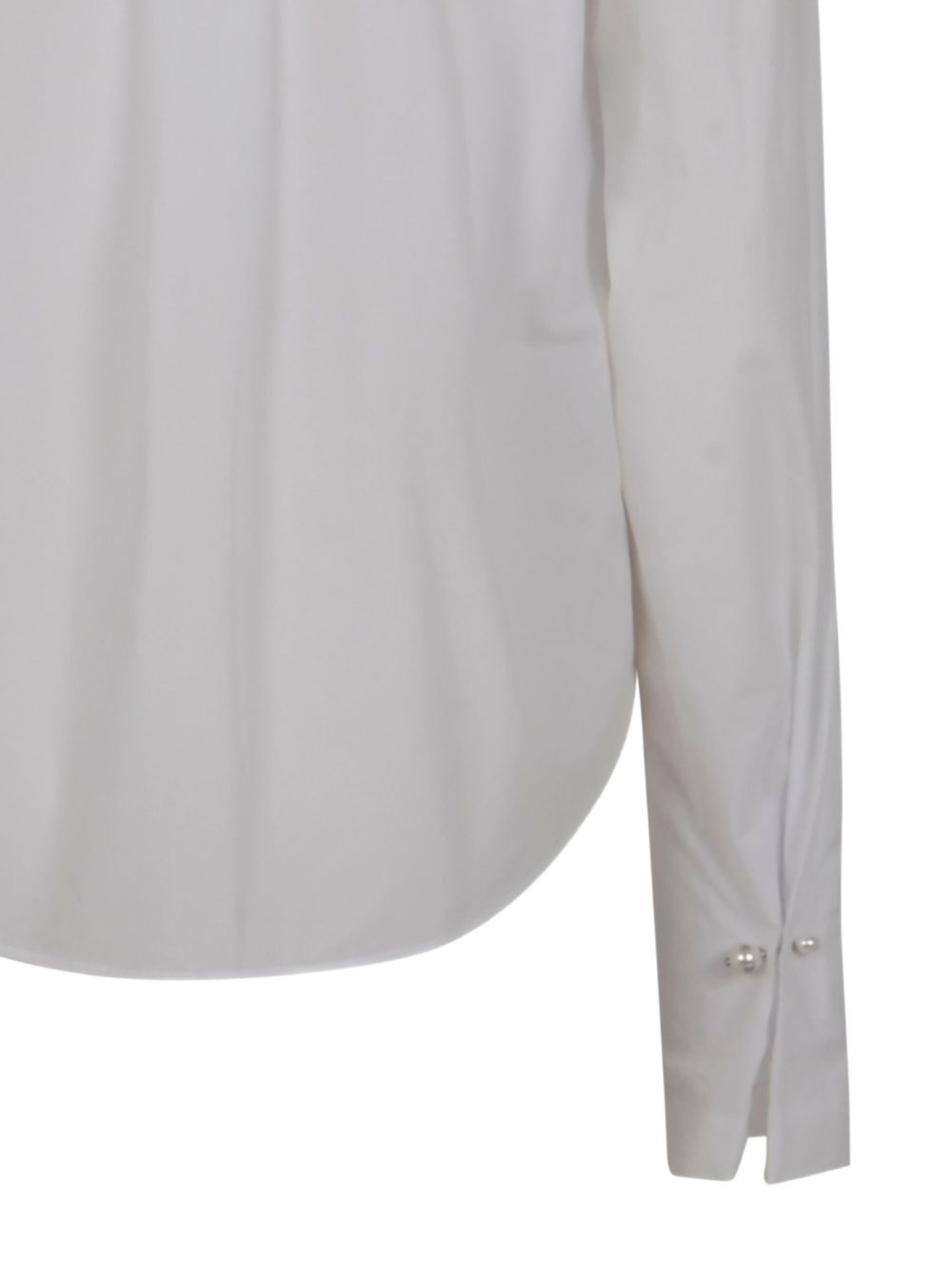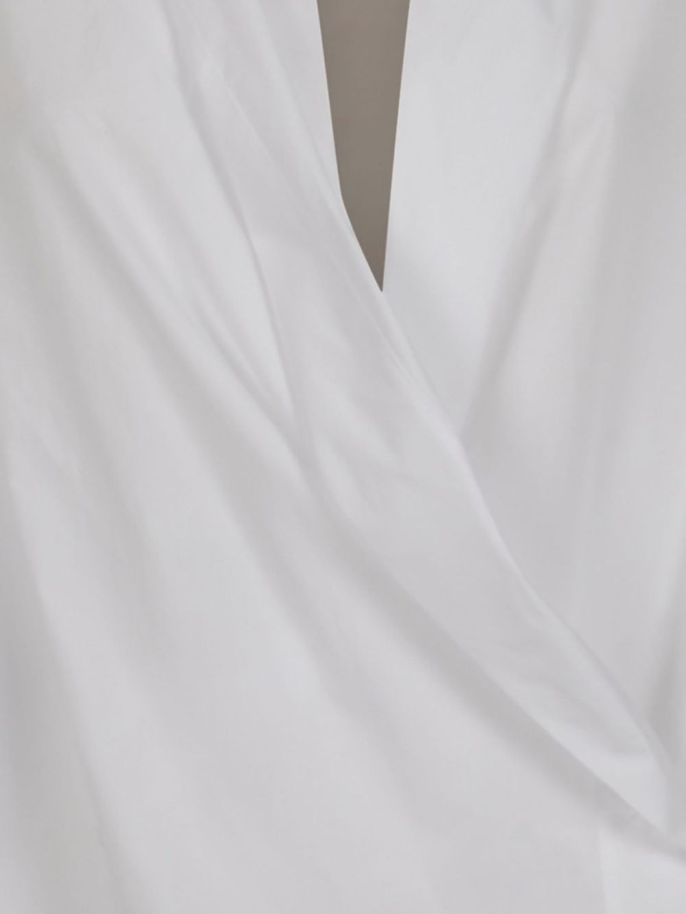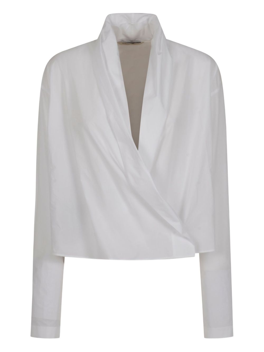camicia, popeline, scollo a v con drappeggio, chiusura laterale con un bottone, maniche lunghe, polsi con gemelli
