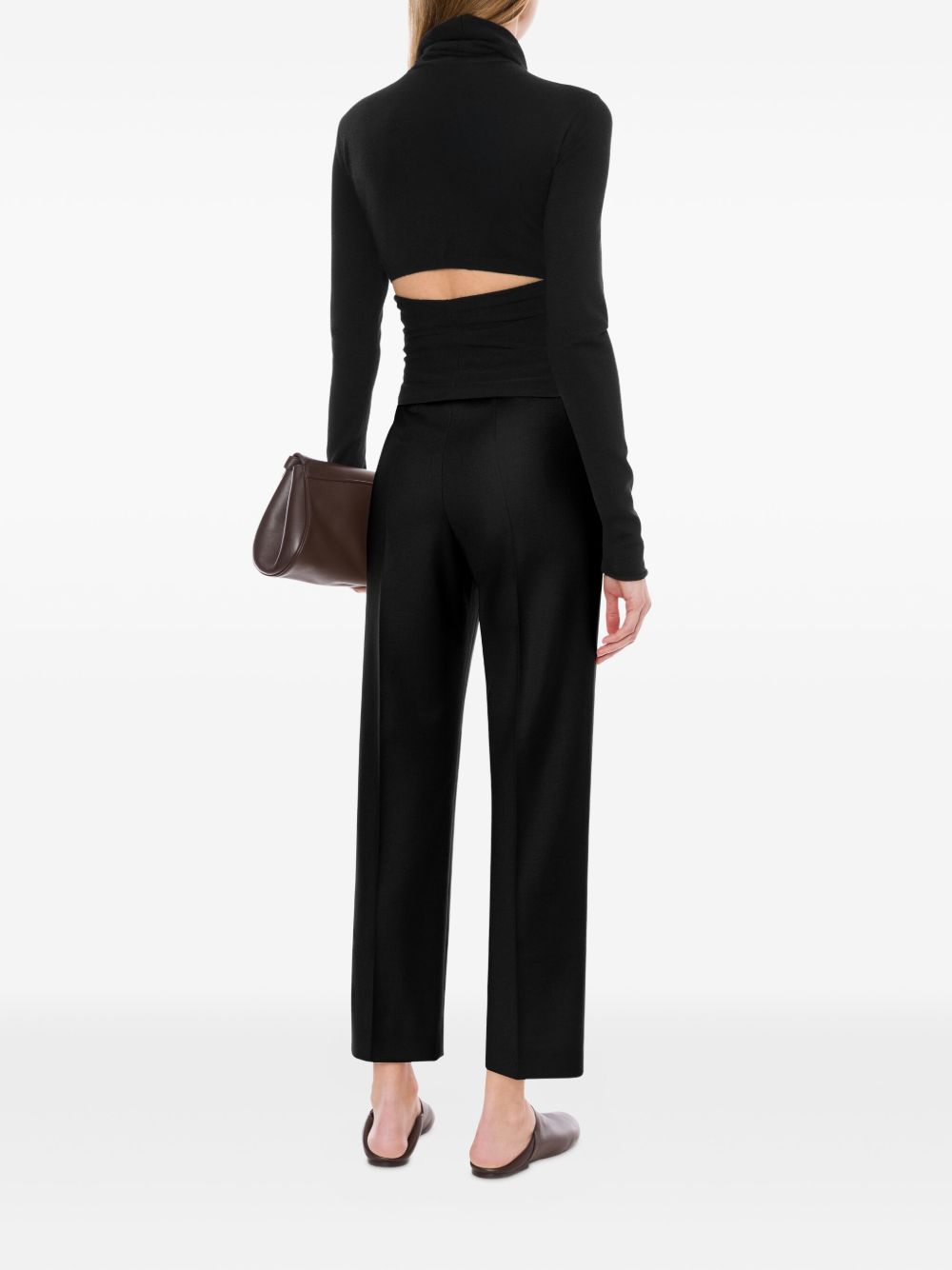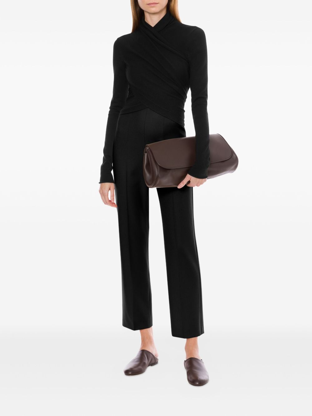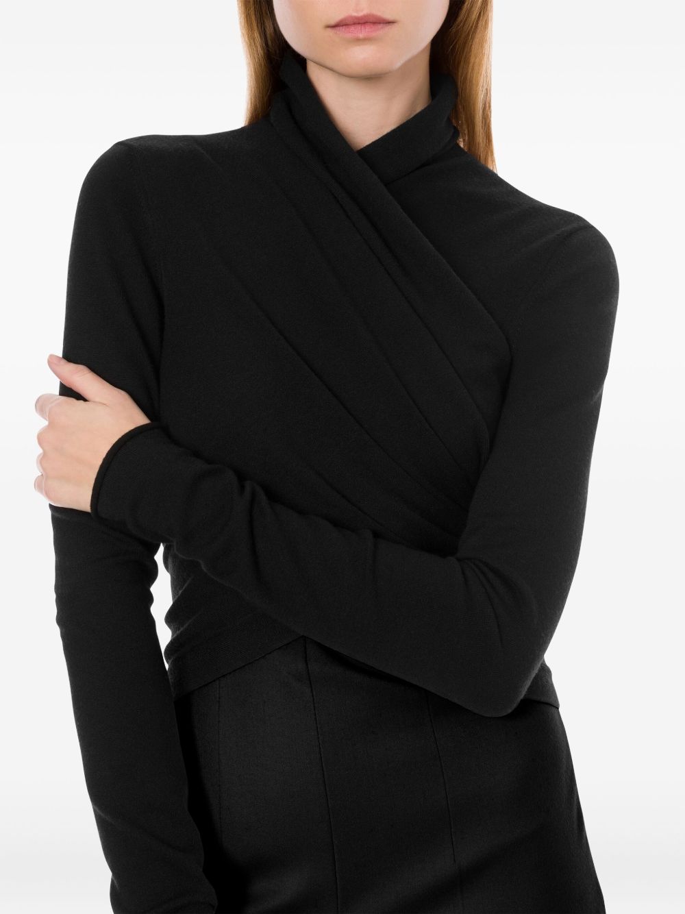 maglia, manica lunga, collo drappeggiato, scollo a v, design ad incrocio, scollo posteriore