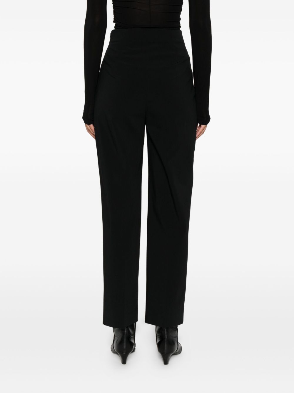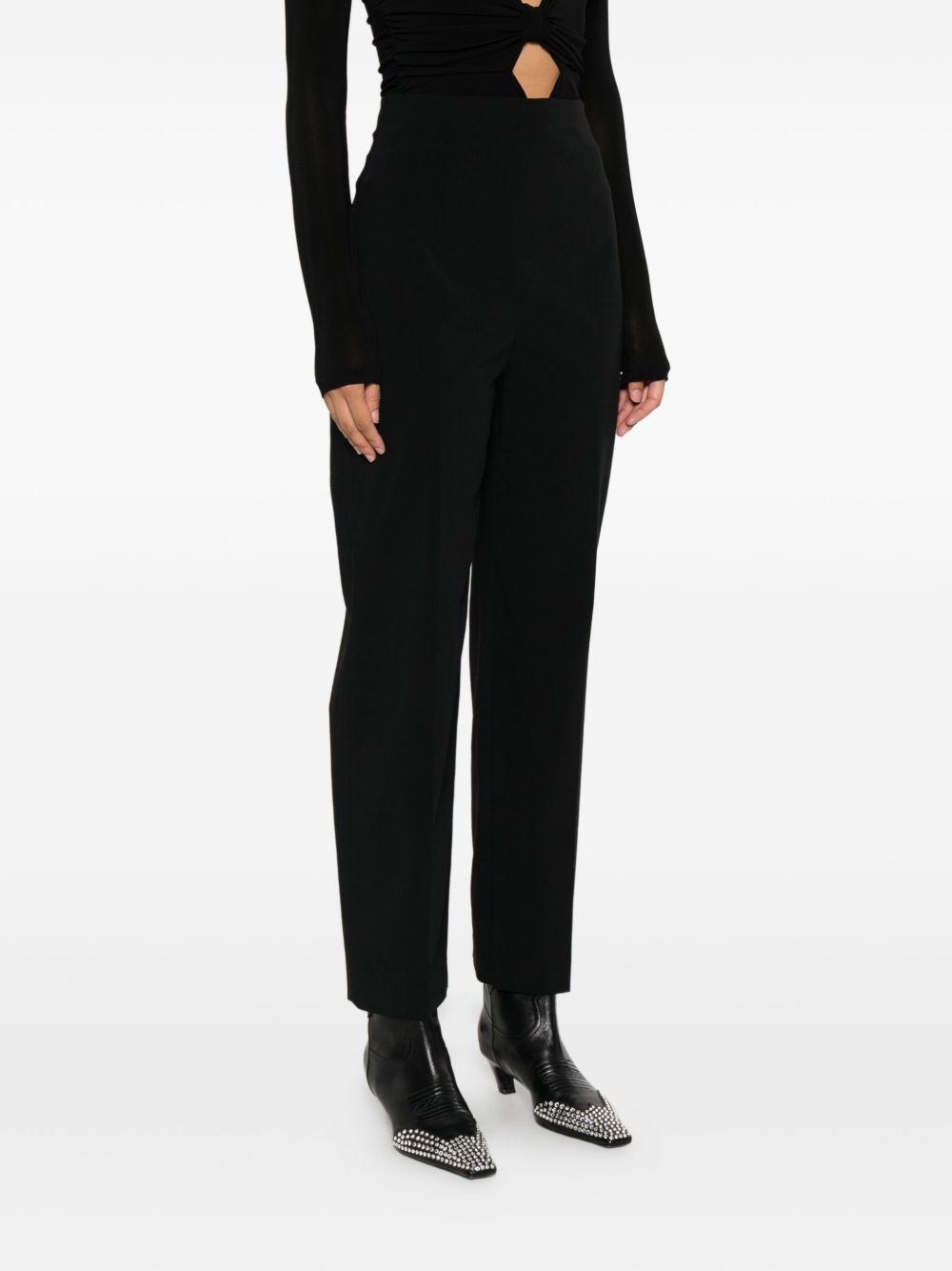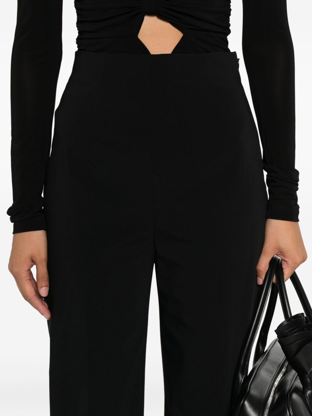 pantalone, tessuto stretch, vita alta, chiusura laterale con zip, gamba diritta