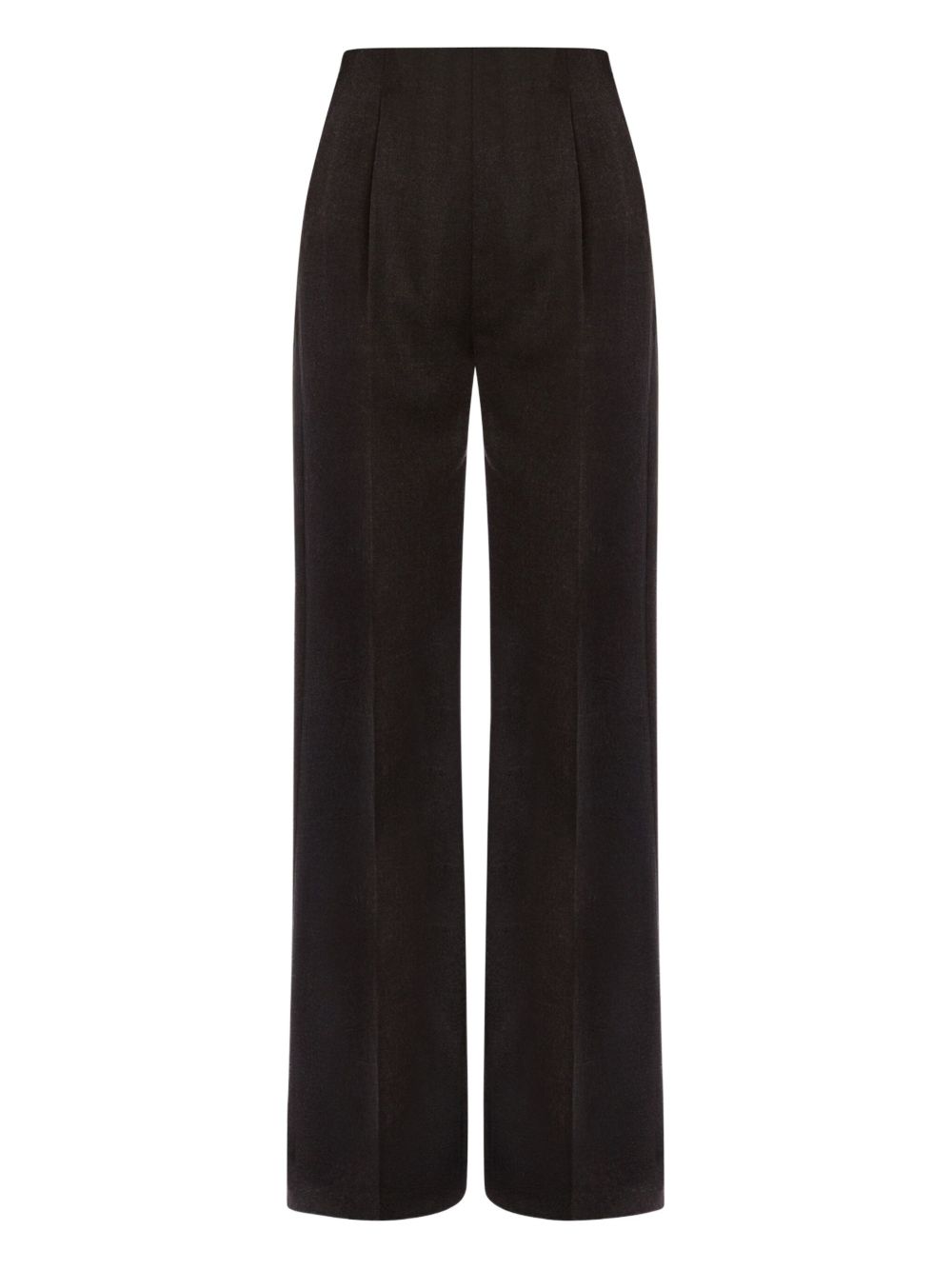 pantalone, flanella leggera, vita alta, pences, tasche laterali, tasca a filo posteriore,chiusura laterale con zip, gamba larga
