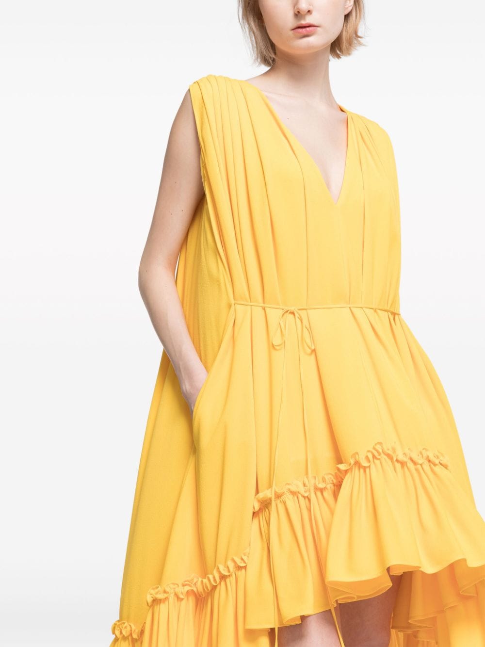 abito, senza maniche, spalline larghe con arriccio, vestibilità ampia, scollo a v, svasato, fondo con rouches, foderato, cinturino in vita in tessutoComposizione: 97% viscosa 3% elastane Istruzioni per il lavaggio: lavare a secco