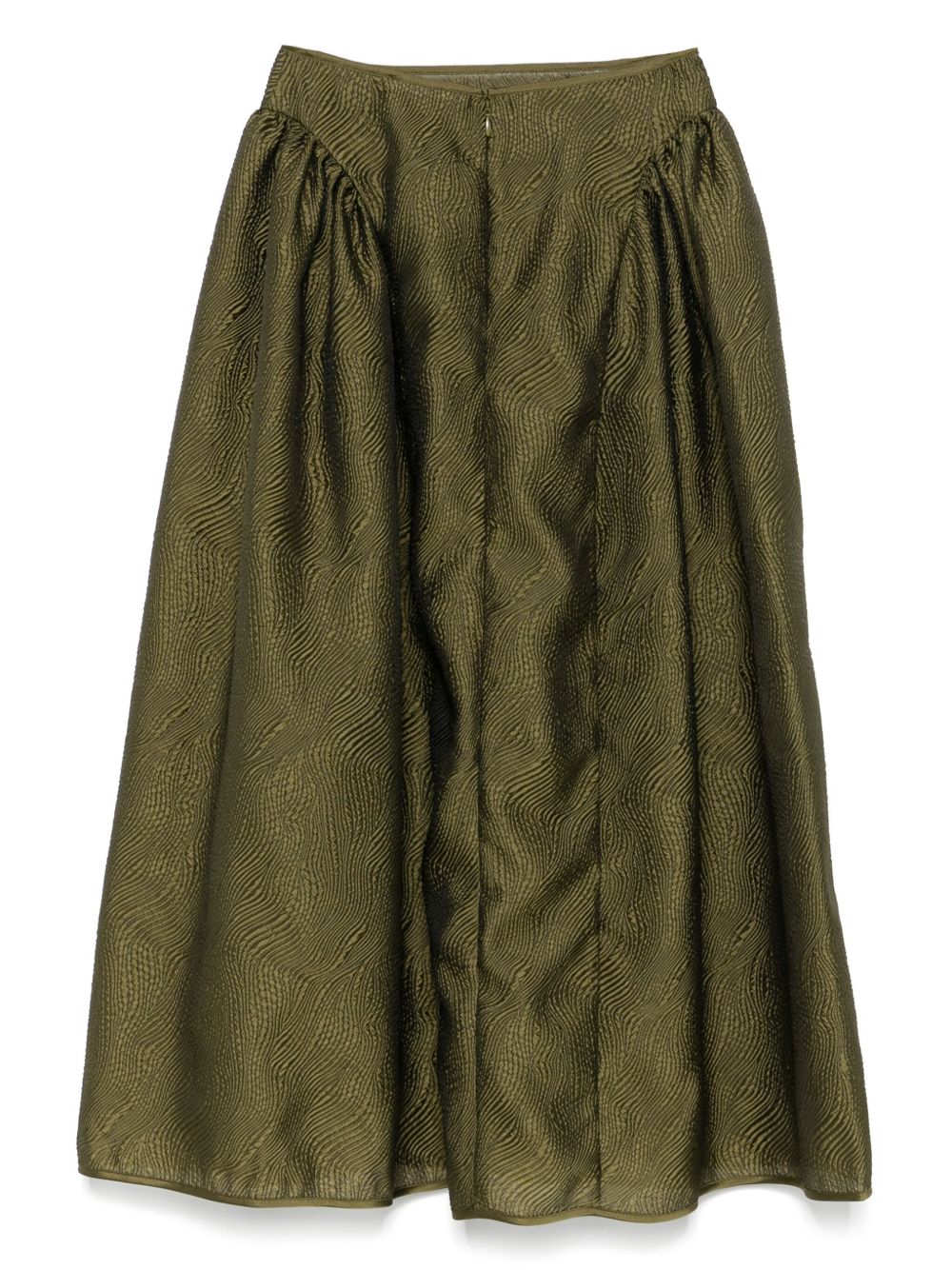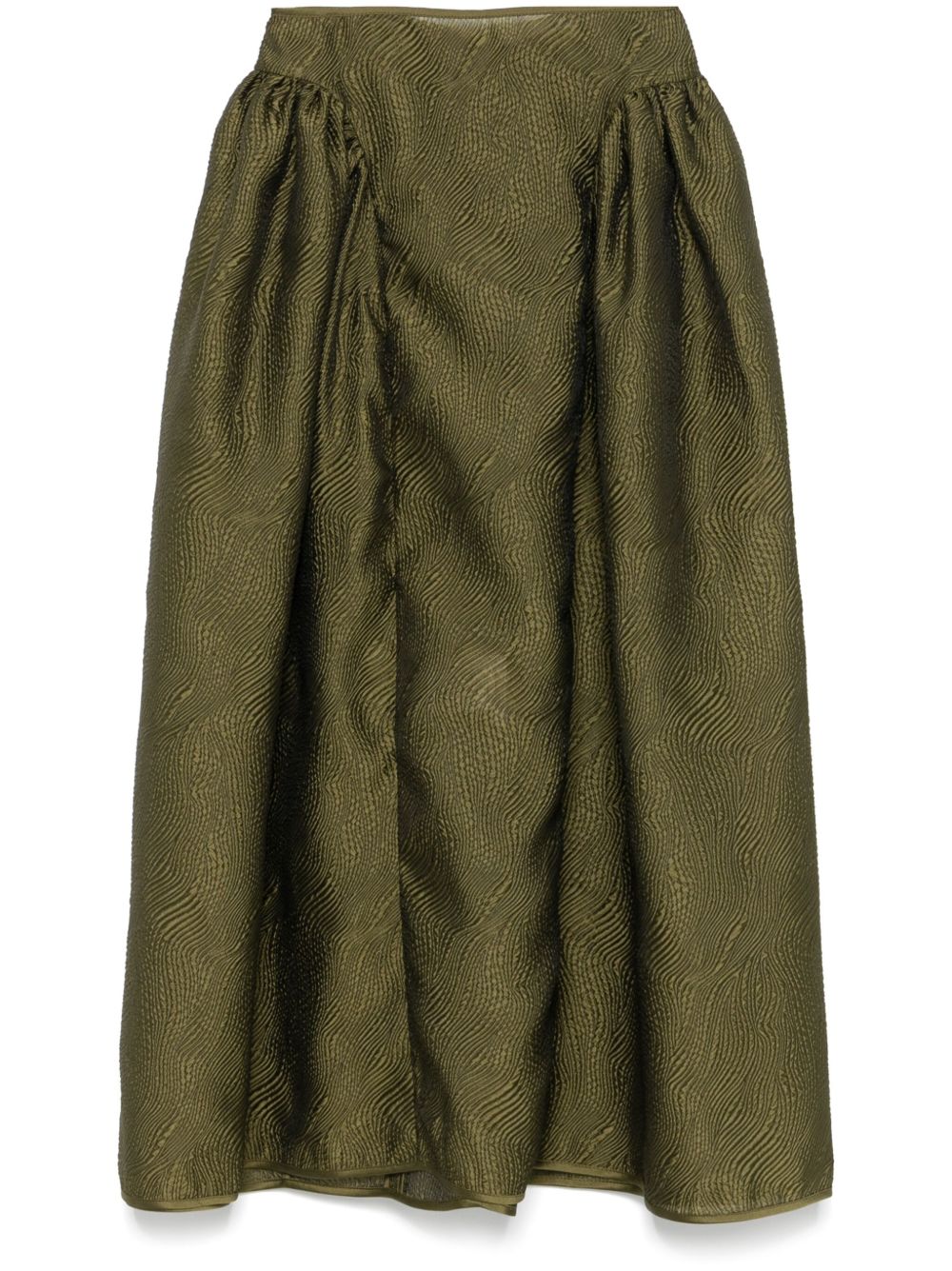 gonna midi, volume ampio, drappeggio sui lati, tessupo operato con motivo ondulato, chiusura posteriore con zip Composizione: 83% poliestere reciclato 17% poliammide Istruzione per il lavaggio: lavare a secco