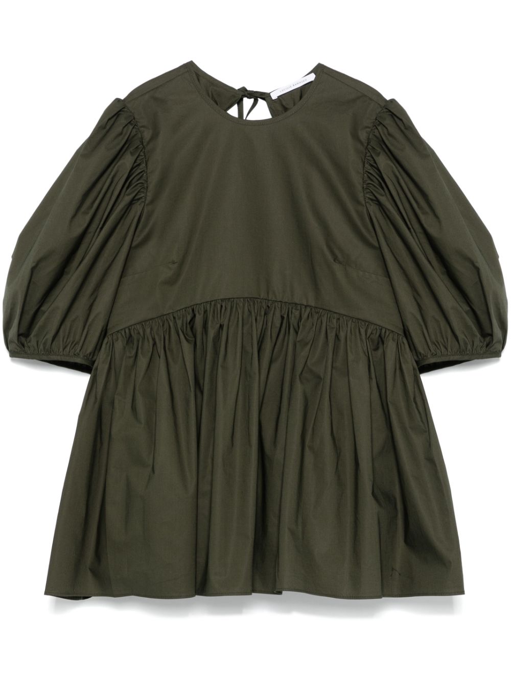 top, girocollo, manica corta a sbuffo, chiusura posteriore con lacci, oblo posteriore con coulisse e fiocchi, punto vita con arriccioComposizione: 100% cotone Istruzione per il lavaggio: lavare a 30°
